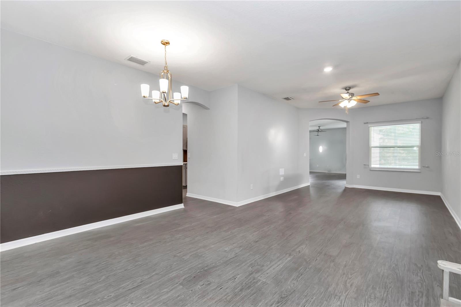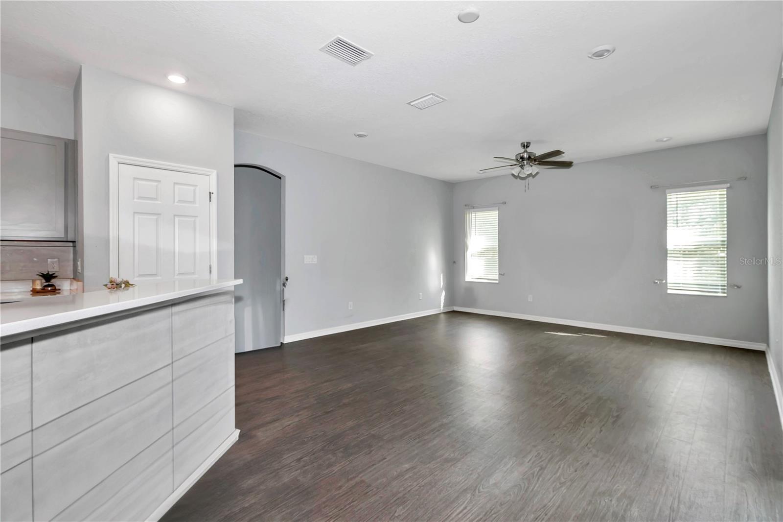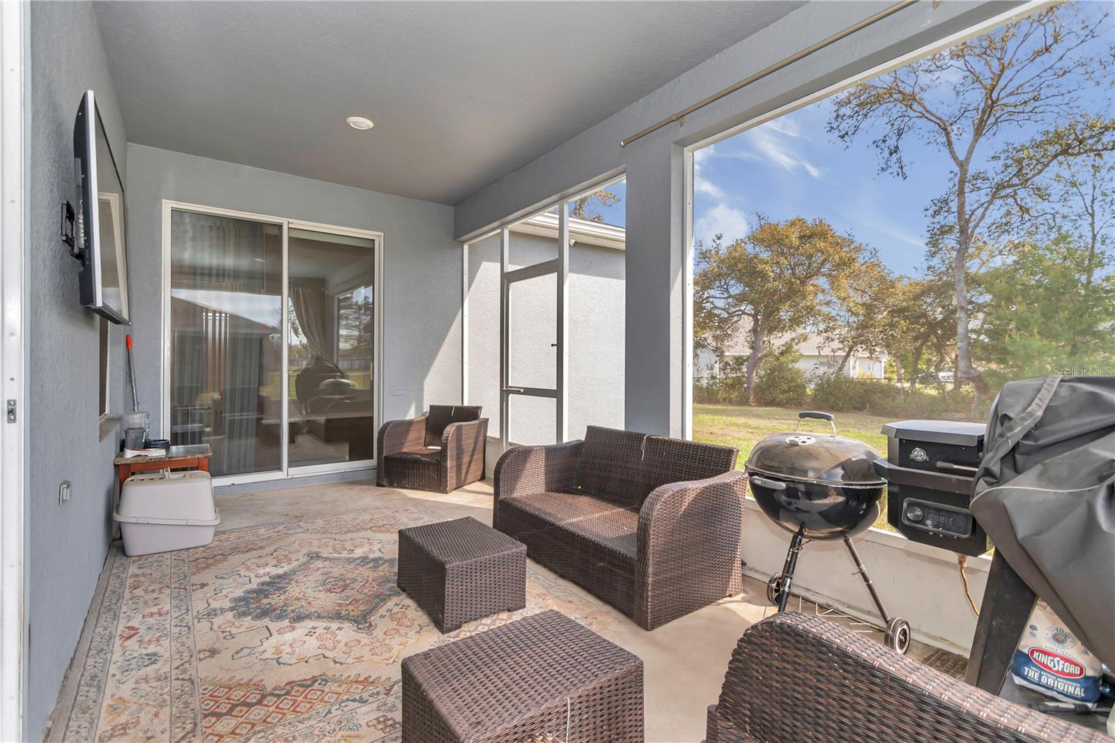 Welcome to Kingsland Country Estates at Whispering Pines in Ocala, where this beautifully crafted single-story block home, built in 2021, sits on a generous half-acre lot. Thoughtfully designed with both comfort and convenience in mind, this home comes fully equipped with a paid-in-full 24 kW Generac whole-house generator, ensuring peace of mind during any power outages. The well-appointed 3-way split floor plan offers five bedrooms and three bathrooms plus A spacious three-car garage provides ample storage. Upon entering, an expansive foyer filled with natural light leads to the formal living and dining areas, creating a welcoming atmosphere. The open-concept kitchen overlooks the family room and features 36” stone gray Shaker-style cabinetry, Silestone solid surface countertops, and stainless steel appliances. Wood-look luxury vinyl plank flooring extends throughout the main living areas, kitchen, baths, and laundry room, while the bedrooms have plush, stain-resistant carpeting. Enjoy year-round outdoor living on the screened-in patio, accessible from both the family room and owner’s suite, with beautiful views of the fully fenced backyard and the serene wooded lot beyond, keep it looking good with the Rain Bird irrigation system so your lawn vibrant year-round. The private owner’s suite boasts an elegant tray ceiling and an ensuite bathroom with a double-sink vanity, garden tub, decorative tiled shower, large walk-in closet, and water closet. This home is ideally located with easy access to shopping, dining, schools, medical facilities, and outdoor recreation, all with the benefit of low HOA dues. Additional inclusions with the sale are three mounted 70” flat-screen TVs, two mounted 55” flat-screen TVs, a never-used Pitt Boss smoker, and patio furniture. Don’t miss the opportunity to own this exceptional home in a tranquil setting!