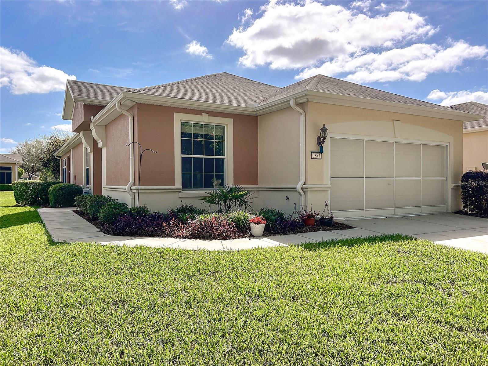 Discover carefree living in this beautifully maintained Alexander Villa, perfectly suited for those desiring convenience and comfort. With 2 spacious bedrooms, 2 full bathrooms, a versatile flex room, and an attached 2-car garage, this home effortlessly combines practicality and style. Enjoy an airy, open-concept layout enhanced by elegant tile flooring throughout the main living areas and bathrooms. The well-appointed kitchen features sleek Corian countertops, modern recessed lighting, and a charming café nook perfect for casual dining. Additionally, a formal dining space is available for gatherings and entertaining. Relax in the inviting living room, which includes a ceiling fan, a stylish credenza (newly added in 2021), and sliding glass doors opening seamlessly onto the enclosed lanai. The primary bedroom offers comfort with a ceiling fan, generous walk-in closet, and an en-suite bath featuring an updated shower (new glass doors in 2020) and solid surface vanity. Guests will appreciate the second bathroom's bathtub and matching vanity countertops. The flexible den, adorned with attractive glass French doors, can easily serve as an office, reading room, or additional guest space. The dedicated laundry area adds convenience with a utility sink and a substantial folding countertop. Step out to the enclosed lanai, beautifully appointed with floor-to-ceiling sliding windows, transom accents, and durable tile flooring—ideal for year-round enjoyment. Additional enhancements include a new Franklin furnace installed in 2019 and a premium Culligan water system. Welcome home to effortless elegance and low-maintenance living.