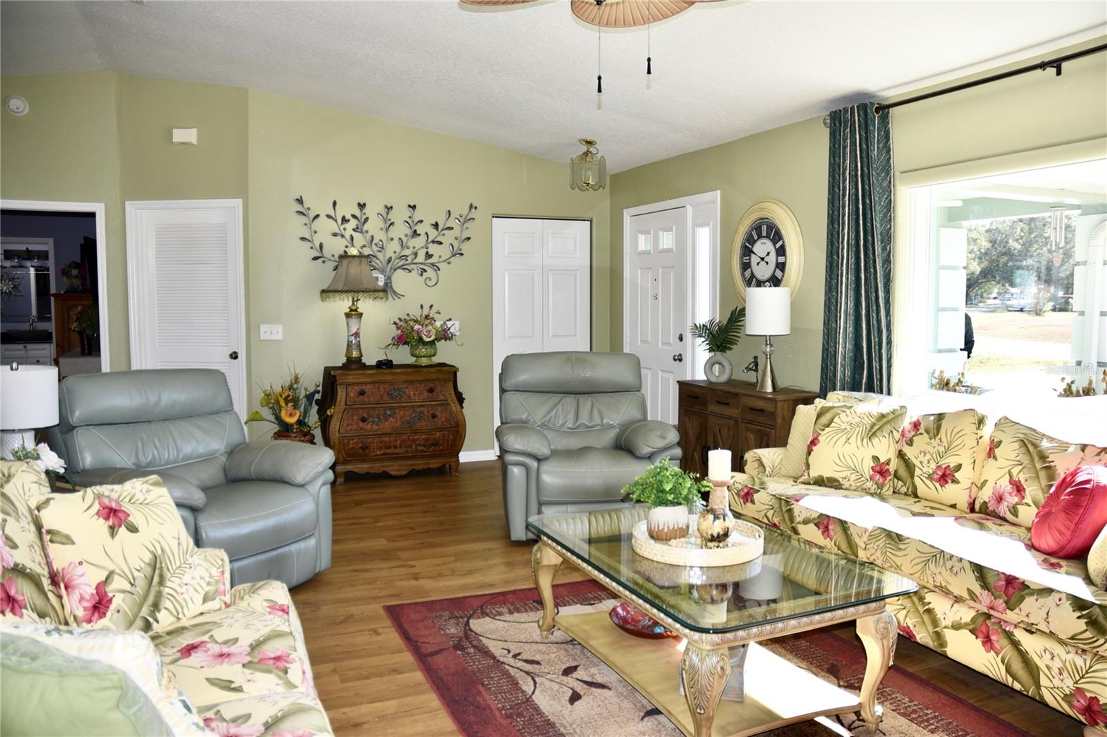 You won't want to miss this Well-Kept, Freshly-Painted Exterior, Thoughtfully Updated, 3-bedroom, 2-Full bath Home, Featuring New Luxury Vinyl Flooring, All New Thermal Pane Windows, Upgraded Lighting, & Florida Room that brings the Indoors, Out! ... On a Beautifully Landscaped, Oversized Lot. Set in the Desirable Cherrywood Estates, a Friendly and Active 55+ Community, with Mature Trees and a Welcoming layout, the Home backs up to a Natural Preserve, Providing a Relaxing and Private Oasis. This Home is the Perfect blend of Upgrades, Outdoor Appeal, and Vibrant Community Living. The Cardinal II floorplan, boasts solid wood cabinets, granite countertops, an optional kitchen island, and pantry with convenient pull-out storage. Appliances include Refrigerator, Range, Washer, and Dryer - all included. The Home also features a LENNOX Air Conditioning System, a top-rated, efficient brand, installed in 2025 with a Transferable 10-year Warranty. Additional Upgrades include ceiling fans, Granite counter in Primary Suite with Tile shower, Custom Walk-in Closet, Extensive Garage Storage, as well as Gutters & a Rain Barrel! The HOA fee includes Internet, Cable, and Trash pickup, and the Community is conveniently located close to Shopping, Restaurants, and Local Amenities. Residents Enjoy a Community Pool, Clubhouse, Tennis and Pickleball courts, Shuffleboard, Workout room, Exercise classes, Clubs, Bocce ball, Pool Table(s), and a Variety of Social events, including Mahjong groups, and Line dancing, Making this Community both Convenient and Engaging for its residents.