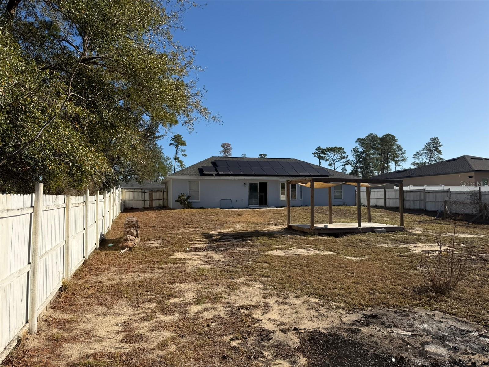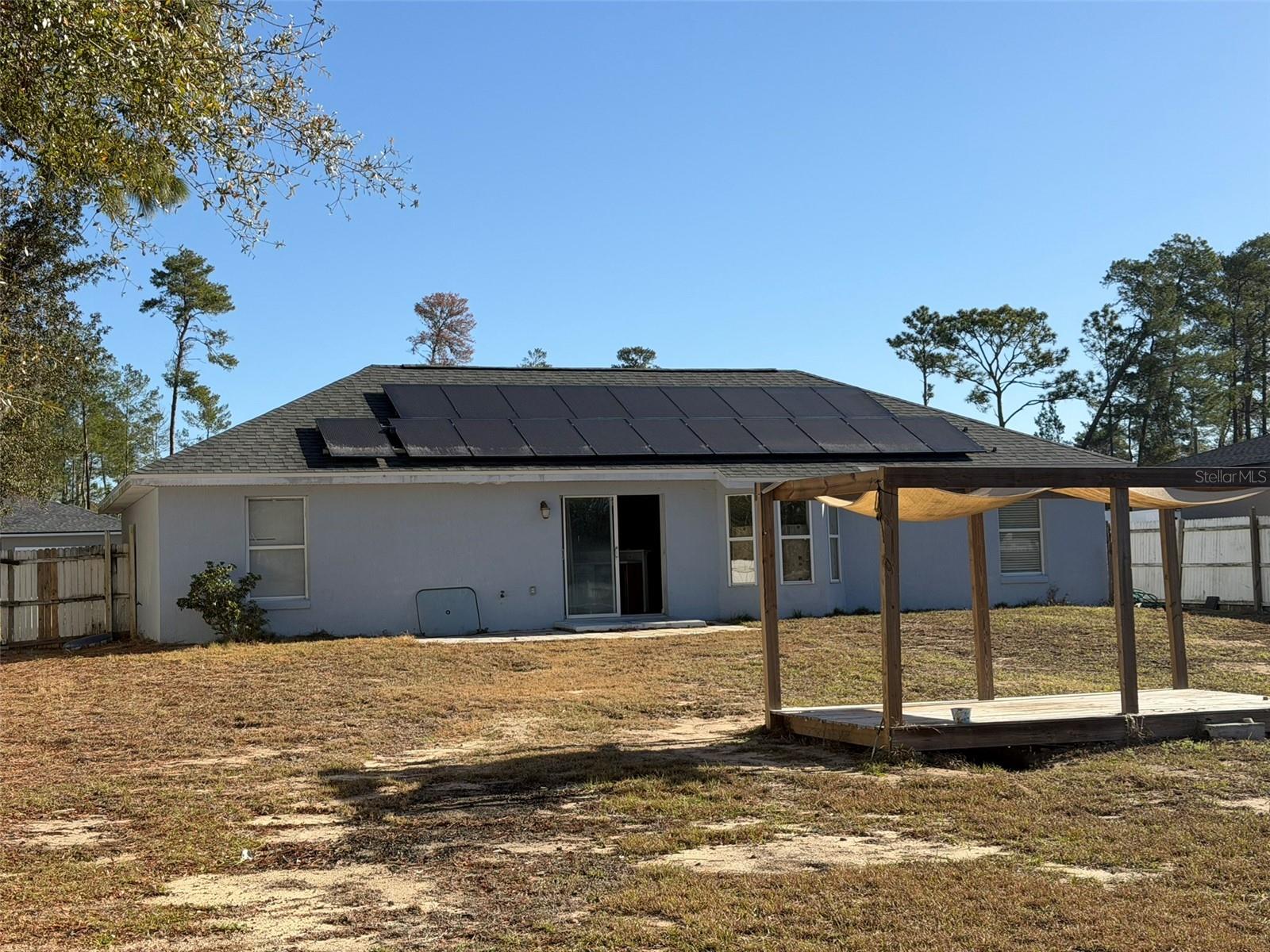 Well maintained 3 bedroom, 2 bathroom concrete block home built in 2007 located in the established community of Marion Oaks in Ocala. This home offers approximately 1,355 square feet of living space and sits on an oversized 0.36 acre lot, larger than many standard homesites in the neighborhood. Recent updates include a brand new roof with fiberglass shingles, a HVAC system replaced approximately two years ago, and a newly installed roof-mounted photovoltaic solar system featuring 26 panels. The solar system may provide energy efficiency benefits and reduced utility costs. Spacious backyard features a newly installed gazebo and ample room for outdoor enjoyment. Conveniently located near parks, trails, shopping, and area amenities including the Marion Oaks Community Center and the Cross Florida Greenway. offering trails for walking, biking, and outdoor recreation. Convenient access to shopping, dining, schools, and major roadways. This property presents an opportunity for owner occupants seeking a well maintained home in Marion County.