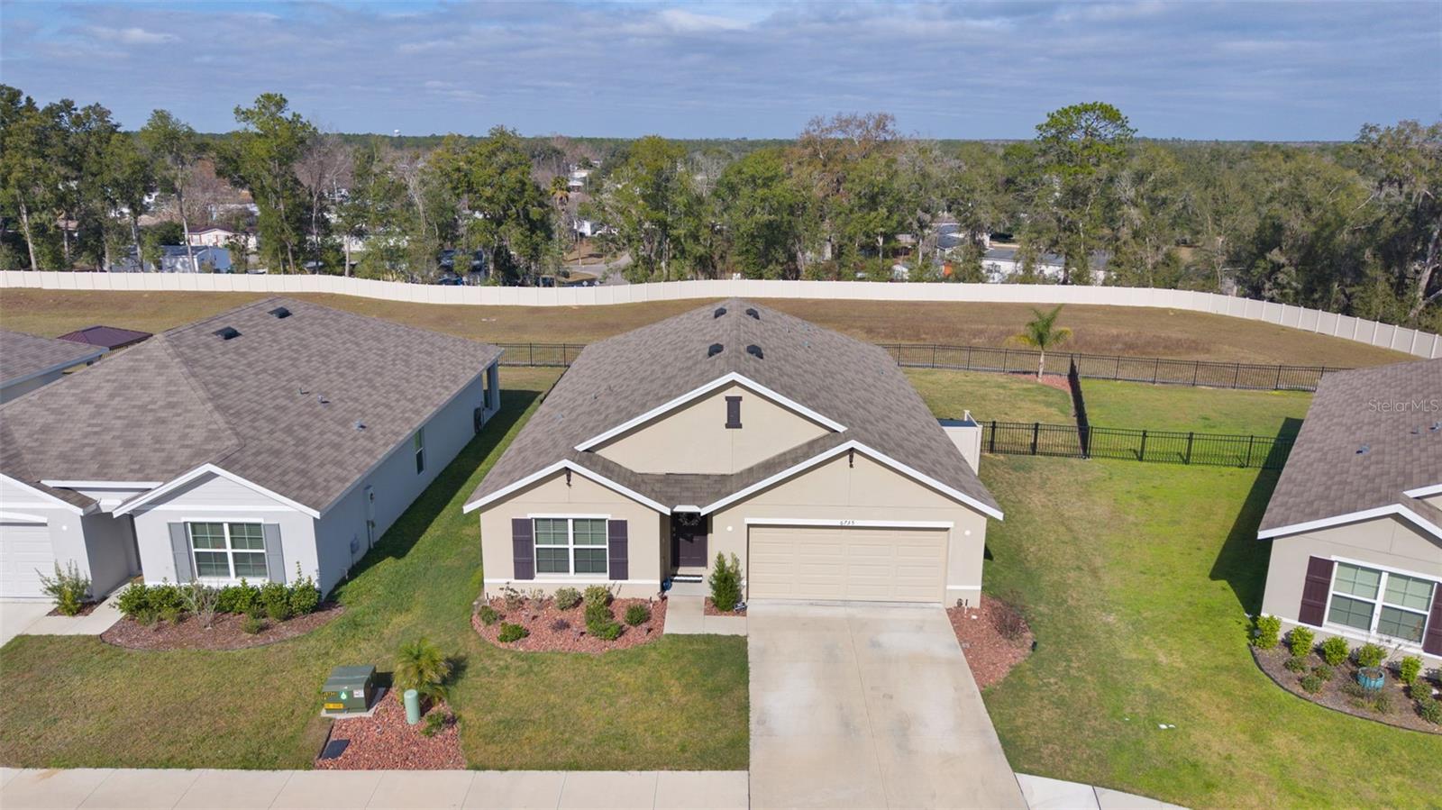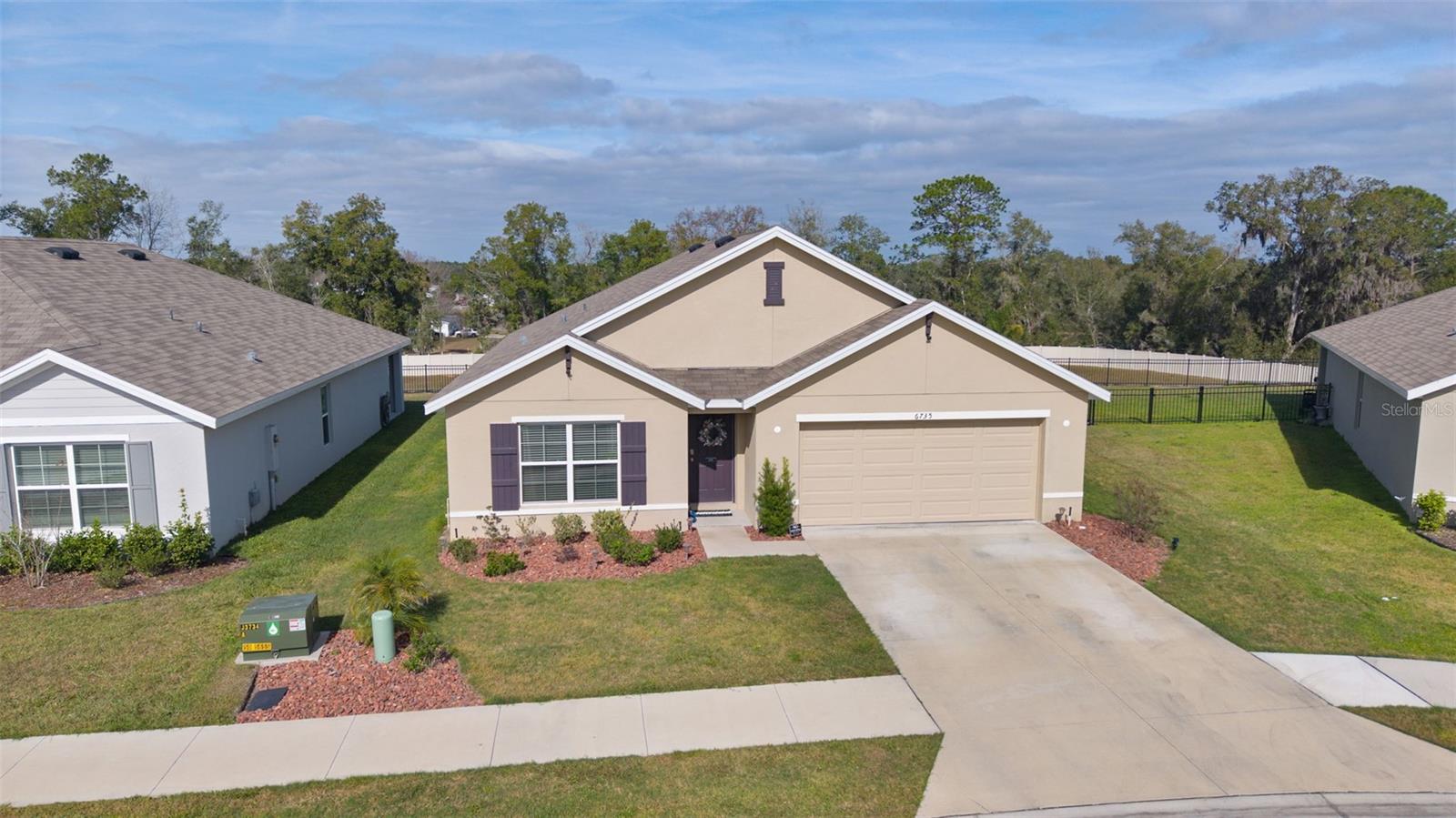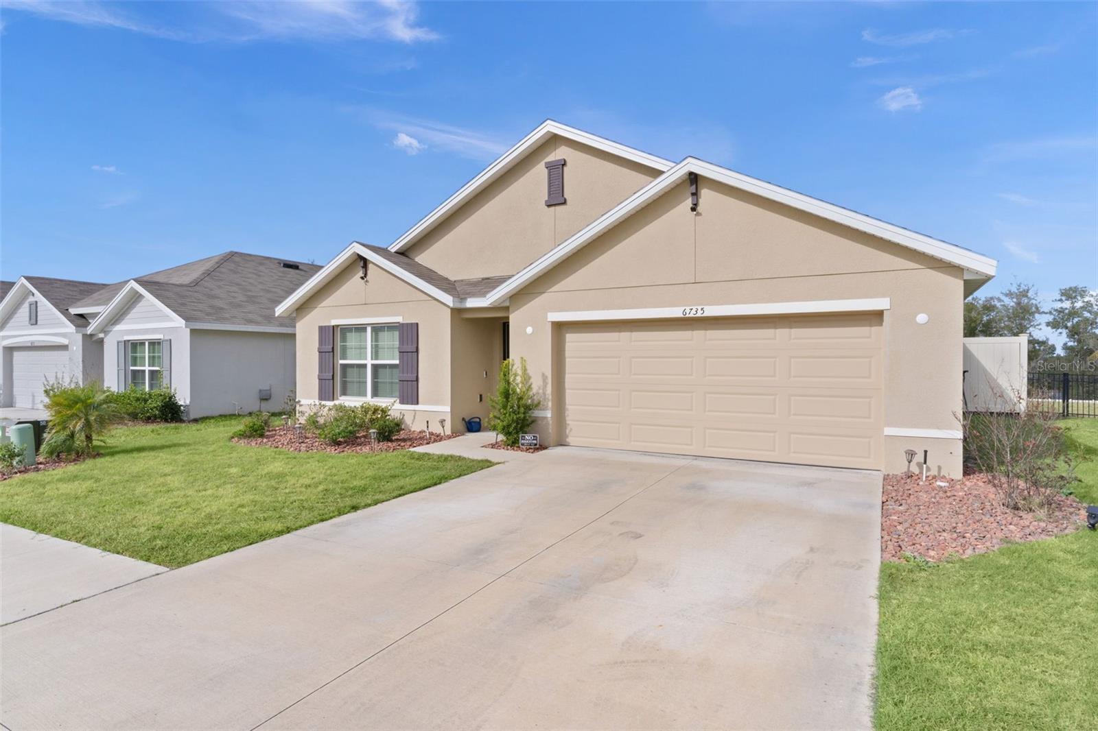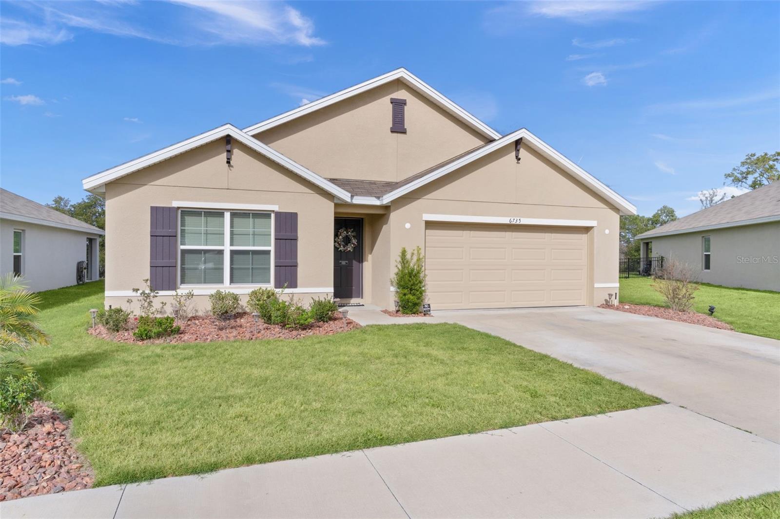 Check out this modern, move-in-ready home located in the highly sought-after Southeast Division of the Deer Path Community. Built in 2023, this 4-bedroom 2-bath Cali Model home has it all. As you approach this home, take note of the manicured lawn with rocked landscape. This home features a spacious open floor plan with tiled flooring in main living area. The kitchen features white cabinetry with granite counters, stainless appliances, and a large, functional kitchen island offering ample prep space and additional seating—perfect for everyday living and entertaining. The primary bedroom features a walk-in closet and an ensuite bath with dual sinks and a walk-in shower. Three additional bedrooms provide plenty of space for a growing family, visiting guests, or a home office. The laundry room features cabinets above the appliances for additional storage. Enjoy outdoor living with a covered lanai and extended paver patio with a fenced yard which backs up to a retention pond. Another great feature of this home is the smart home technology that operates the A/C, garage door, front door lock, lights and more! All controlled on a free app on your phone. The home surge protection system protects appliances and electronics from power surges and spikes