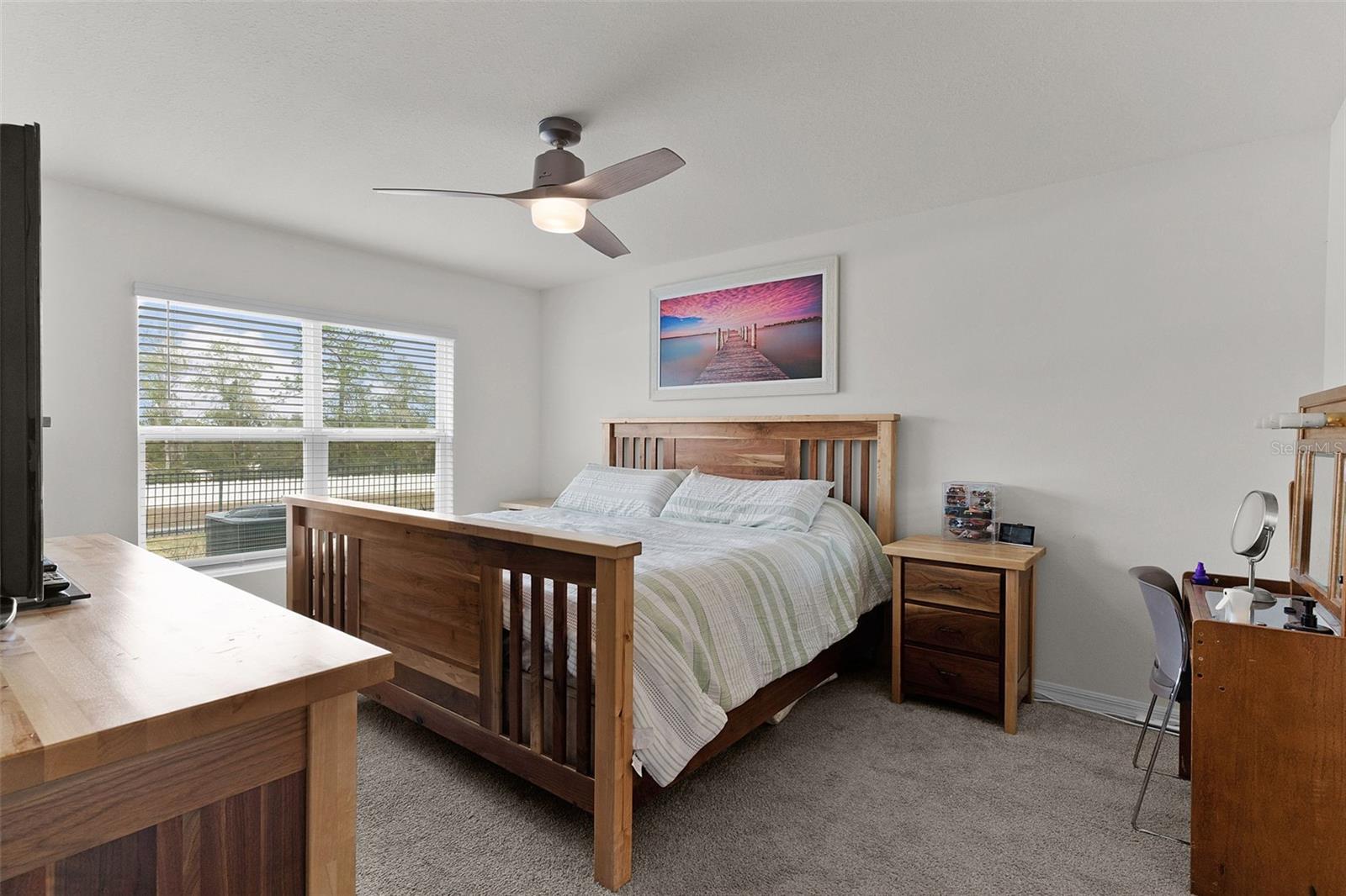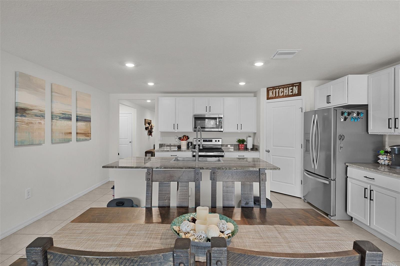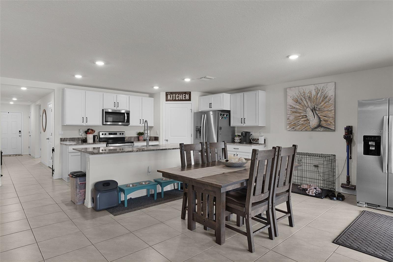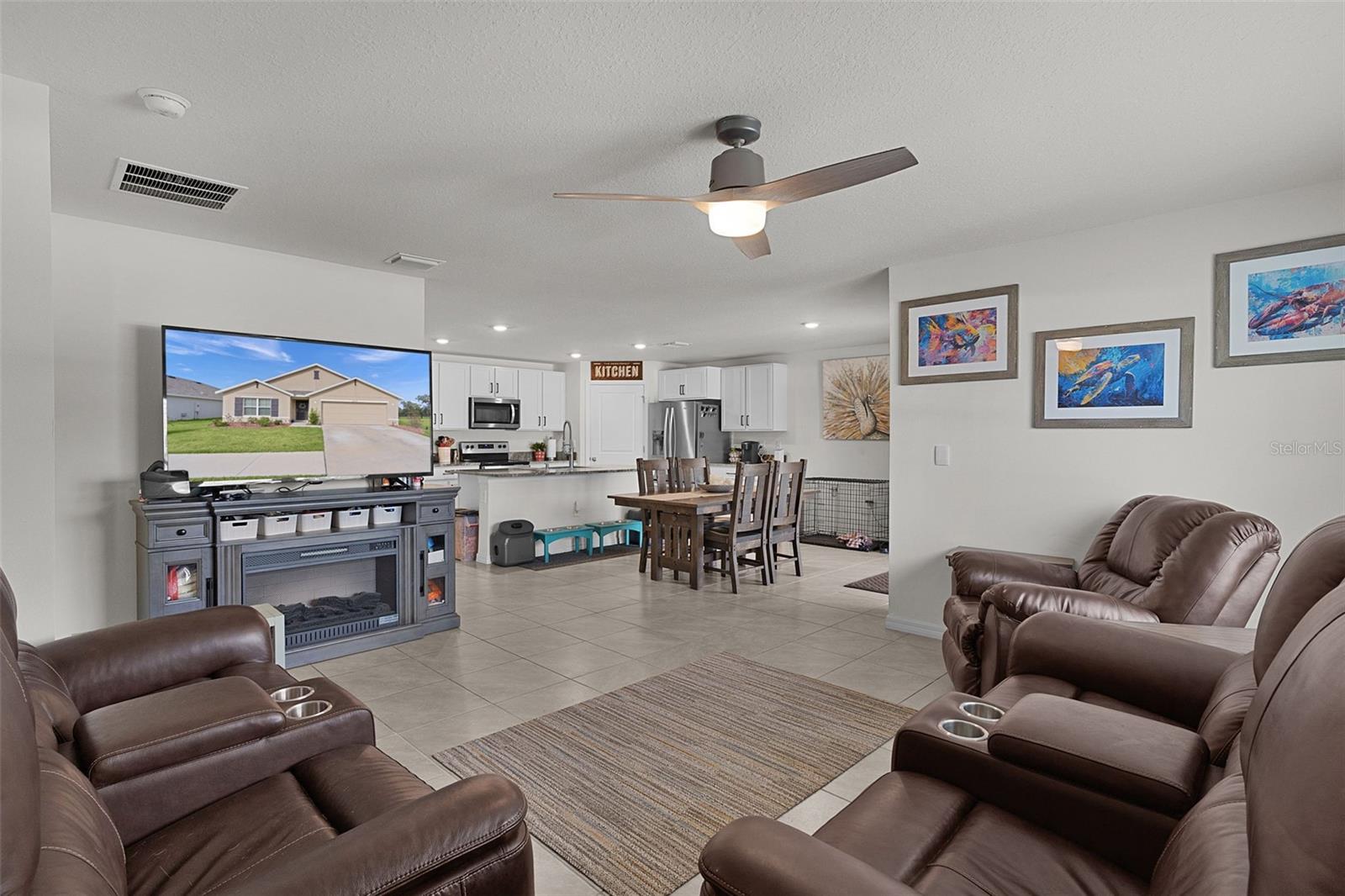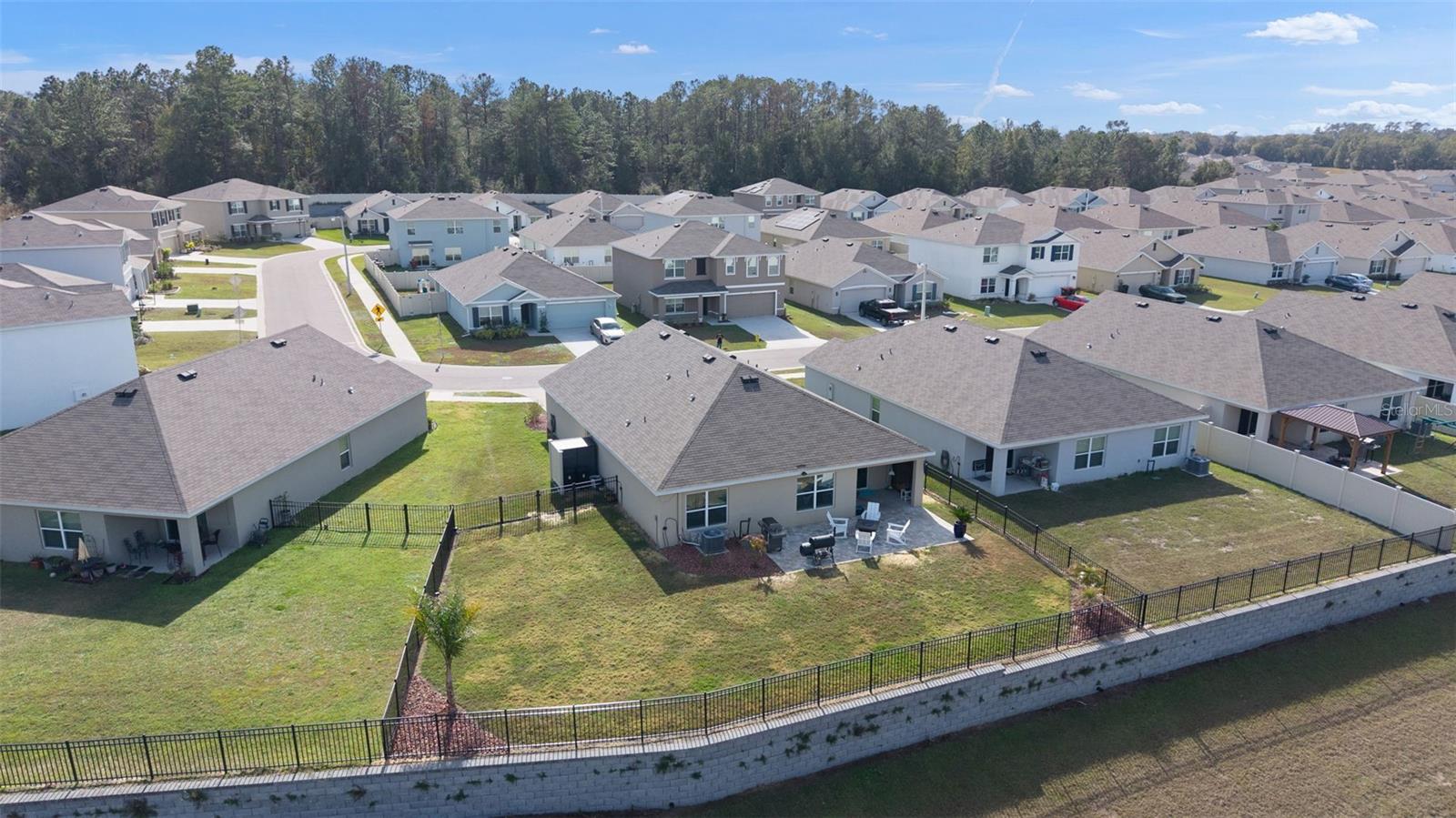 Check out this modern, move-in-ready home located in the highly sought-after Southeast Division of the Deer Path Community. Built in 2023, this 4-bedroom 2-bath Cali Model home has it all. As you approach this home, take note of the manicured lawn with rocked landscape. This home features a spacious open floor plan with tiled flooring in main living area. The kitchen features white cabinetry with granite counters, stainless appliances, and a large, functional kitchen island offering ample prep space and additional seating—perfect for everyday living and entertaining. The primary bedroom features a walk-in closet and an ensuite bath with dual sinks and a walk-in shower. Three additional bedrooms provide plenty of space for a growing family, visiting guests, or a home office. The laundry room features cabinets above the appliances for additional storage. Enjoy outdoor living with a covered lanai and extended paver patio with a fenced yard which backs up to a retention pond. Another great feature of this home is the smart home technology that operates the A/C, garage door, front door lock, lights and more! All controlled on a free app on your phone. The home surge protection system protects appliances and electronics from power surges and spikes