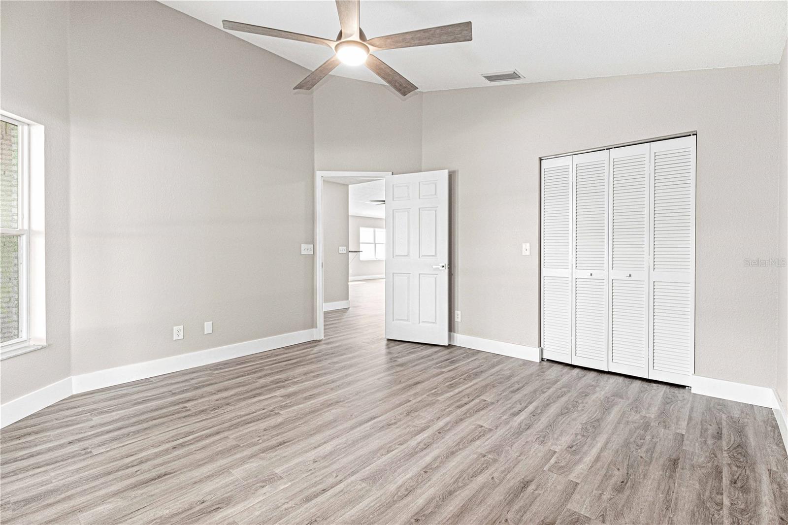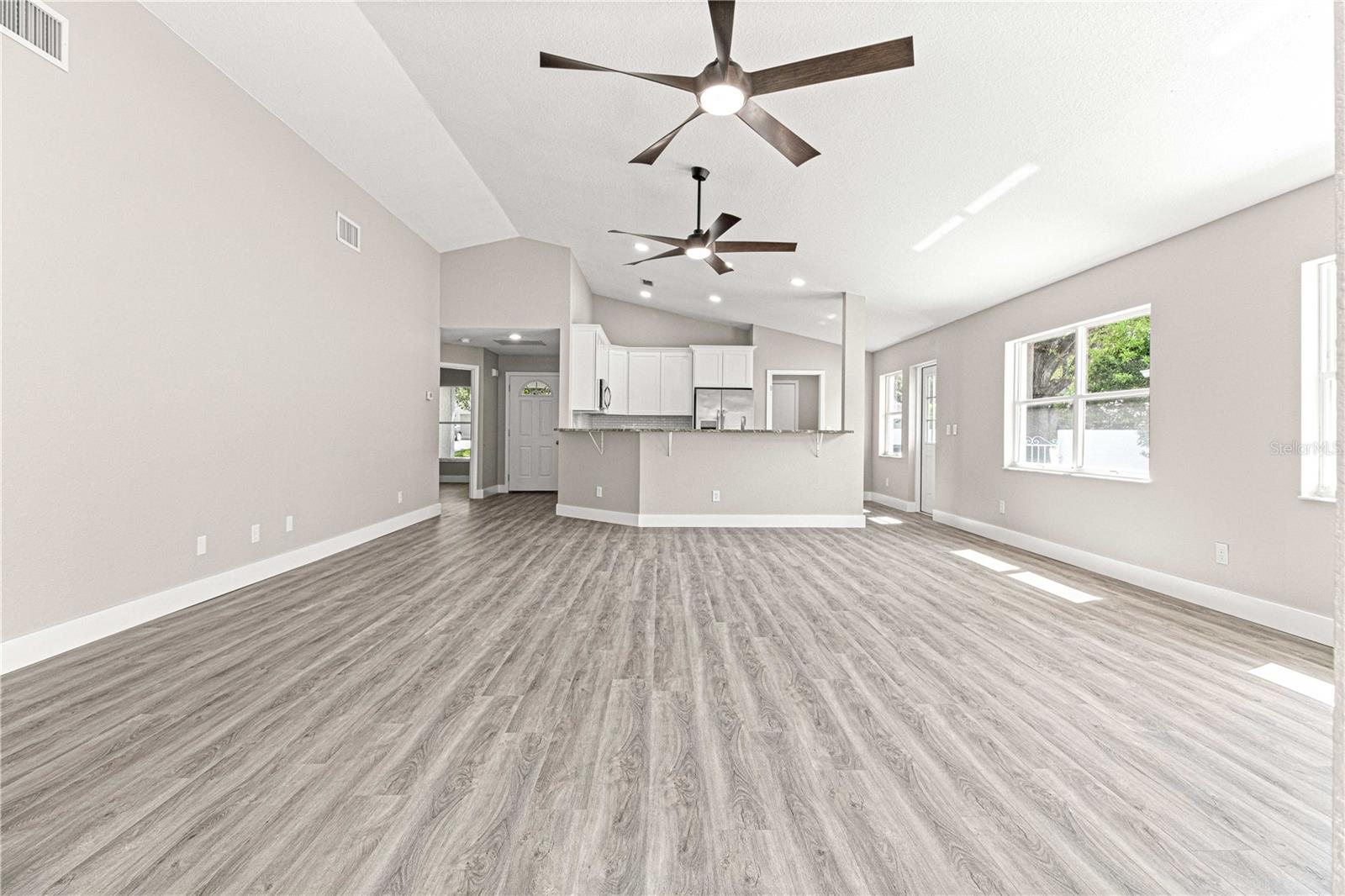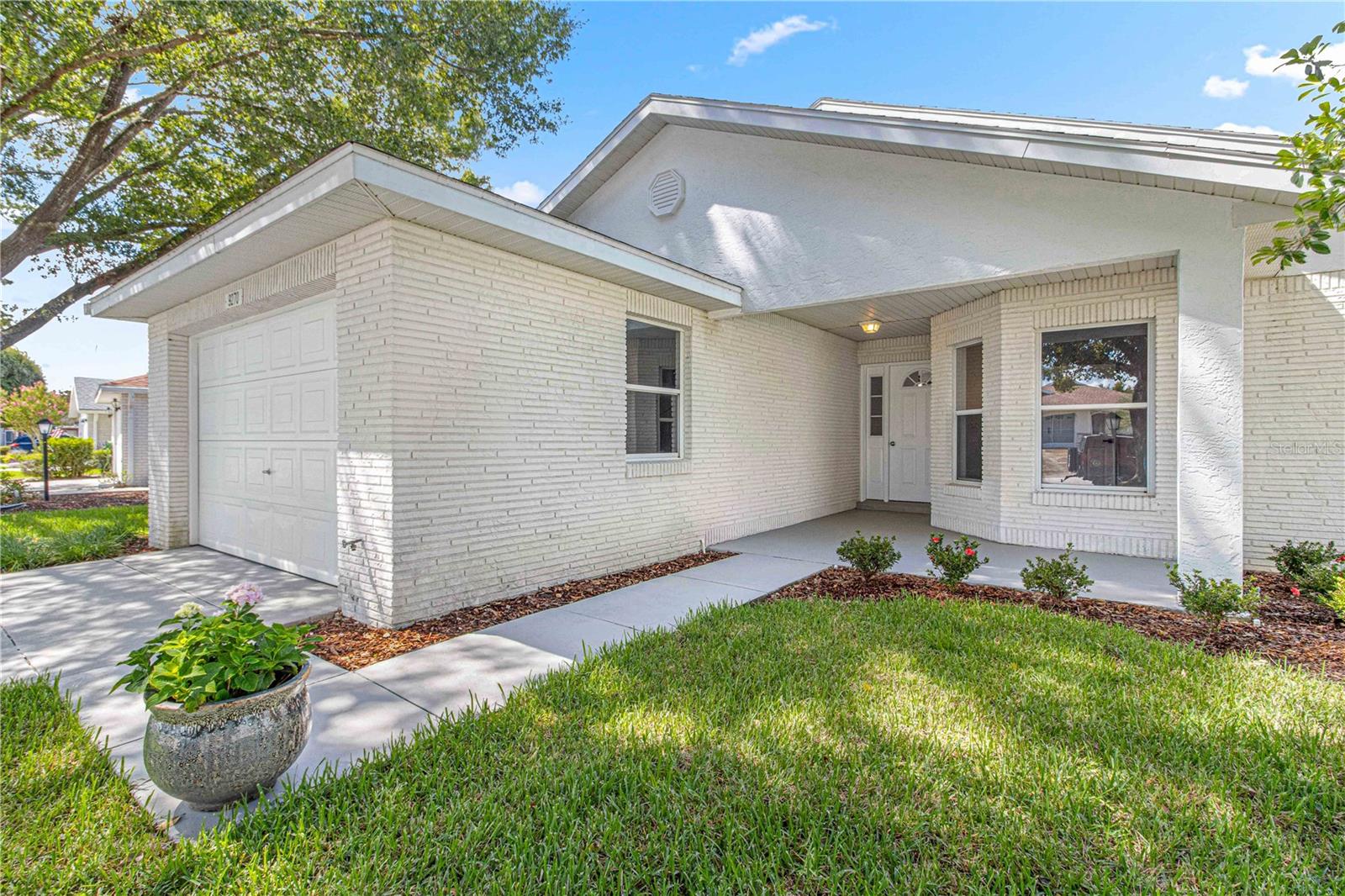 Completely remodeled and move-in ready, this beautifully updated 2 bedroom, 2 bath home is situated in Williamsburg within the highly desirable 55+ community of On Top of the World in Ocala. Step inside to volume ceilings and vinyl plank flooring that create a bright, open feel throughout the main living areas. The brand new kitchen is thoughtfully designed with 42 inch upper cabinets, soft close cabinetry and drawers, granite countertops, tile backsplash, breakfast bar seating, and brand new stainless steel appliances. The primary suite features a walk-in closet, additional linen closet, dual sinks with marble countertops, a tiled step-in shower with glass doors, and a sleek anti-fog mirror for a modern touch. The guest bathroom is fully updated with granite countertops, soft close cabinetry, and a tiled step-in shower with glass doors. The guest bedroom offers a large built-in closet, and an additional hallway linen closet provides even more storage. Enjoy outdoor living with a courtyard, screened lanai, and 1 car garage. Modern ceiling fans are installed throughout, and the HVAC was replaced in 2022 for added peace of mind. Residents enjoy resort-style amenities including pools, golf courses, recreation centers, fitness facilities, walking trails, and a full calendar of social activities. Thoughtfully renovated and truly move-in ready, this home offers both style and lifestyle.Due to recent weather conditions, the current landscaping may not reflect the photos. This is weather related and not due to lack of maintenance.