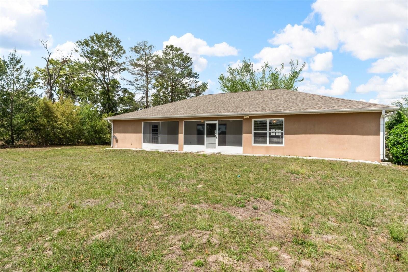 One or more photo(s) has been virtually staged. Welcome to this well-maintained 3-bedroom, 2-bath home with a dedicated office space, situated on a spacious 0.53-acre lot in the established Kingsland Country Estates community. Offering 2,135 sq ft of living space, this single-story home features a functional split-bedroom layout with cathedral and tray ceilings, creating an open and airy feel throughout. Major updates include a 2024 roof and 2024 AC system, providing peace of mind and long-term value. The kitchen is equipped with a range, microwave, dishwasher, and refrigerator, and flows seamlessly into the main living areas, making it ideal for both everyday living and entertaining. The generously sized primary suite offers a comfortable layout and walk-in closet, while the additional bedrooms provide flexibility for guests, a home office, or hobbies. Step outside to a screened-in back porch, perfect for relaxing or hosting gatherings and enjoying Florida living year-round. Additional highlights include a 2-car attached garage, irrigation system, security system, rain gutters, and a paved driveway with ample parking. Conveniently located just minutes from shopping, dining, and everyday essentials along SR 200, with easy access to Publix, restaurants, medical facilities, and the World Equestrian Center. Enjoy the balance of a quiet residential setting while still being close to everything Ocala has to offer. This move-in ready home is a great opportunity for buyers seeking space, comfort, and value in a peaceful Ocala community.