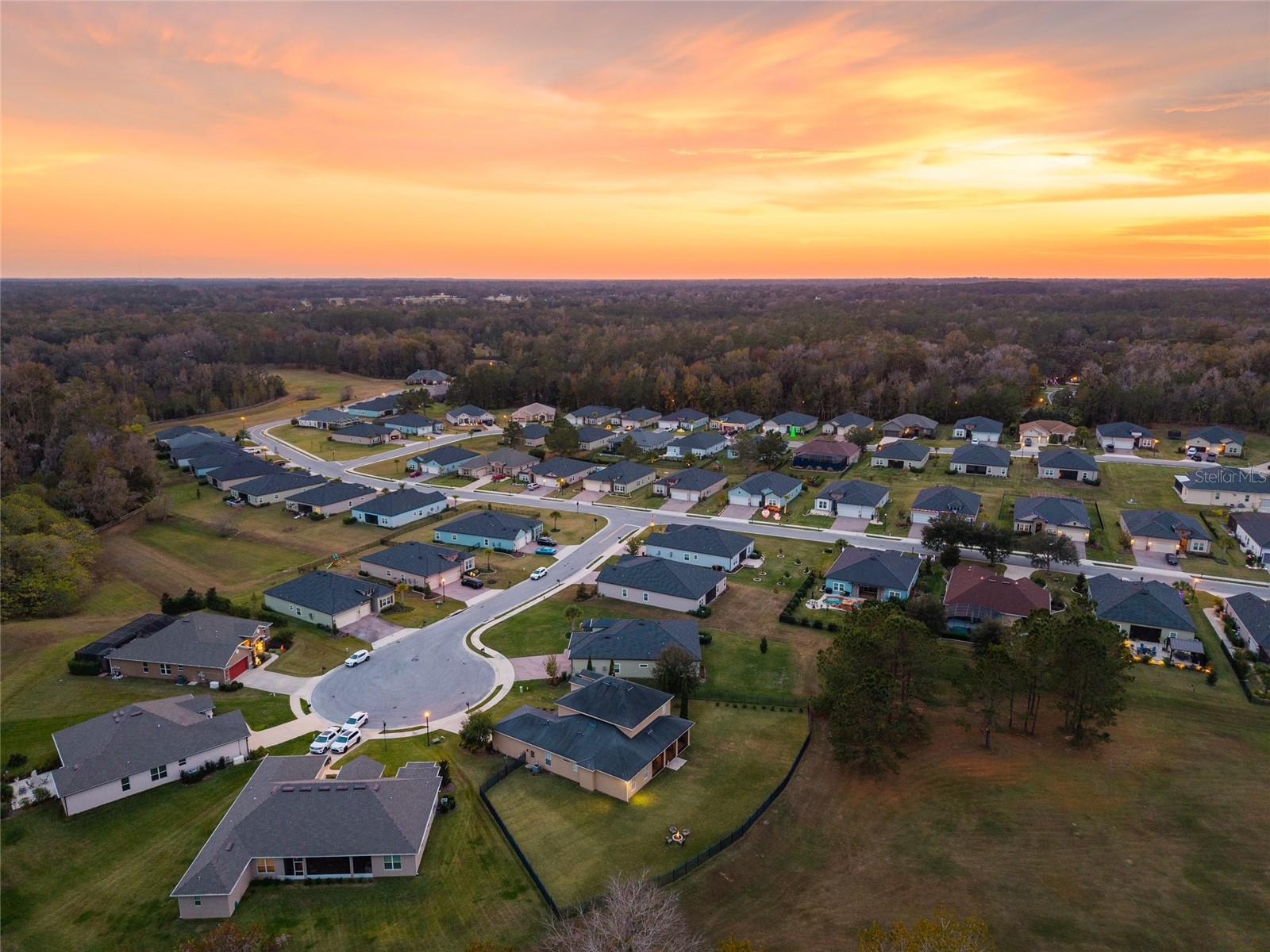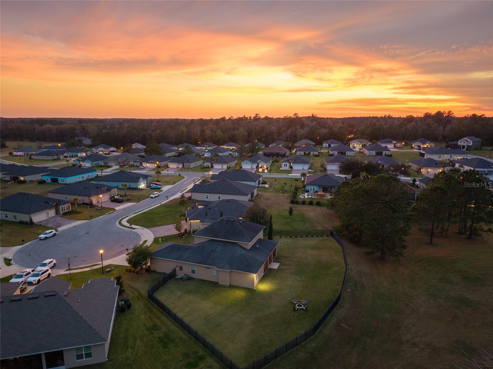 Experience luxury and comfort in this custom-built Armstrong home, peacefully situated on a quiet cul-de-sac within the private gated community of BELLECHASE at Oak Hammock. Unique craftsmanship and high-end finishes showcase true pride of ownership the moment you arrive. Step inside to a warm, inviting atmosphere highlighted by an open floor plan, soaring ceilings, and elegant wainscoting. Engineered hardwood floors flow throughout the main living areas, creating a cohesive and refined look. Coffered ceilings and crown molding add a touch of sophistication throughout the home. At the heart of the property is a gourmet kitchen with granite countertops, a large island, and a charming breakfast nook. A gas stove, convection oven, dishwasher, refrigerator, and spacious pantry make the space ideal for any cooking enthusiast. Designed for modern living, the primary suite is conveniently located on the first floor. It features two large walk-in closets and a spa-inspired en-suite bath with dual vanities, a separate shower, and a soaking tub. Three additional bedrooms, each with its own walk-in closet, provide generous space for family and guests. A dedicated office/bonus room offers flexibility for work, hobbies, or play. Outside, enjoy the screened lanai or gather around the fire pit in the fully fenced backyard with stylish aluminum-style fencing. The adjacent retention area adds an extra sense of privacy. Additional highlights include a 2-car garage with upgraded epoxy floors and a convenient hookup for an electric car charger. The home is also equipped with a dedicated laundry room with a sink (washer and dryer included), a gas water heater, two electric AC units, and a full sprinkler system. This home offers exclusive living with easy access to nearby conveniences. Schedule your private tour today!