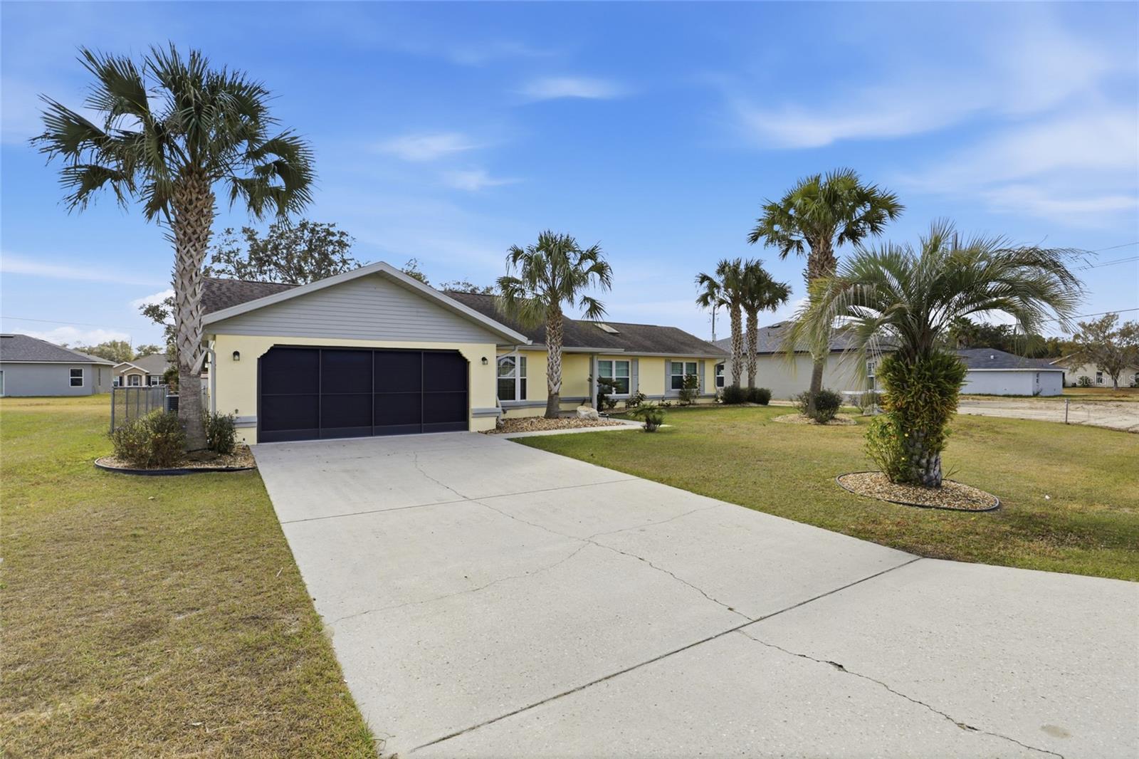 Welcome to this beautifully maintained 3-bedroom, 2-bathroom concrete block home in the desirable community of Marion Oaks. Offering 2,101 square feet of comfortable living space, this property combines thoughtful upgrades with functional living areas—perfect for families, first-time buyers, or anyone seeking a move-in-ready Florida retreat. Step inside to find cathedral ceilings, laminate and tile flooring, and an open, airy layout filled with natural light. The home features a spacious Florida room, ideal for year-round relaxation, morning coffee, or additional flex space. The kitchen comes equipped with stainless steel appliances, offering a clean, modern touch. The primary suite provides a peaceful retreat with ample space and an en-suite bath, while two additional bedrooms offer flexibility for guests or a home office. Outside, enjoy a back porch overlooking the fenced backyard, perfect for pets, play, and entertaining. The property also includes an 8x8 shed for extra storage, plus a screened garage door and built-in garage shelving for added convenience and functionality. Major updates provide peace of mind with both the roof and AC replaced in 2011. Located in the welcoming neighborhood of Marion Oaks, this home offers easy access to parks, schools, shopping, dining, and everything the growing area has to offer.