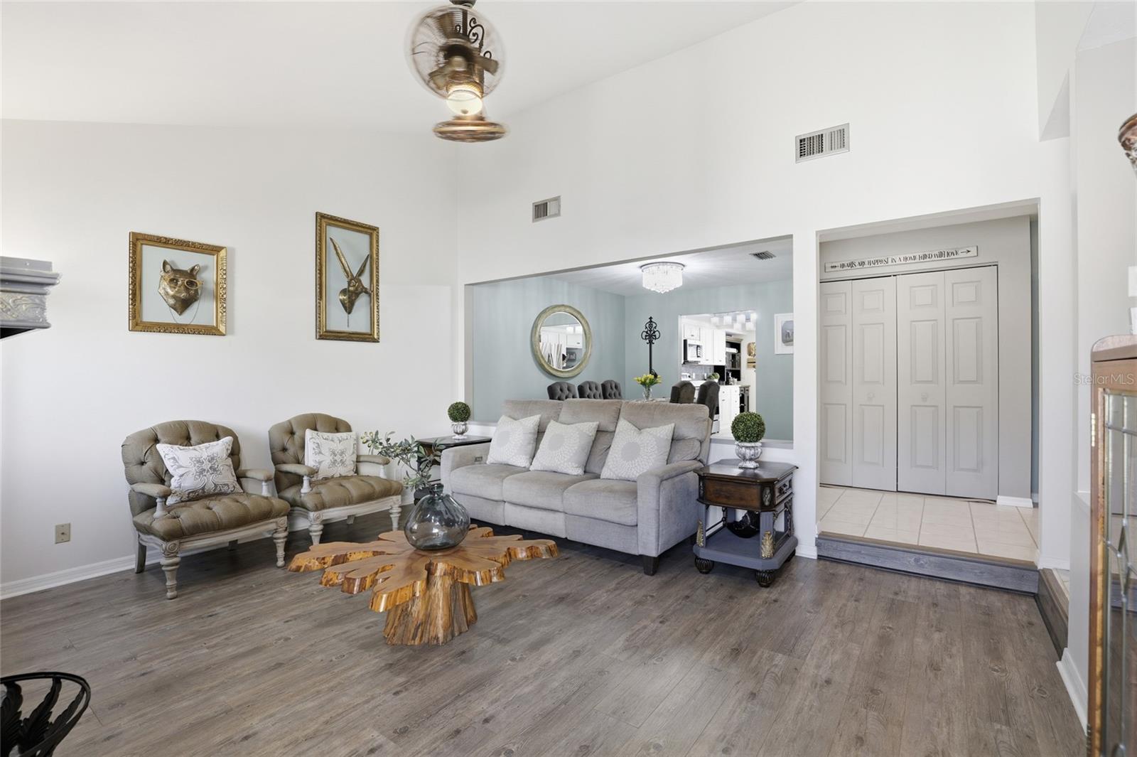 Updated and move-in ready 3 Bedroom, 2.5 Bathroom Townhome in Fox Meadow. This home offers a thoughtfully designed layout featuring the Primary Bedroom conveniently located on the first floor, with two spacious additional bedrooms and a full bathroom upstairs, providing privacy and comfort for family or guests. Numerous updates ensure peace of mind, including a new roof installed in August 2023, an updated AC and gas furnace in August 2021, and a new hot water heater in 2021. The kitchen, completely renovated in 2023, showcases new cabinetry, quartz countertops, tile backsplash, and updated stainless steel appliances, along with a charming breakfast nook and a separate dining area perfect for gatherings. There is no carpet throughout, enjoy beautiful wood flooring in the living room and all bedrooms, and tile in other areas for easy maintenance. The spacious Primary Suite includes a walk-in shower, vanity area, and large walk-in closet. One of the bedrooms is equipped with a Murphy bed to easily transition between a guest room and an office or flex space. The attached garage is equipped with a newer garage door opener and a convenient laundry area. The front driveway is expanded with pavers to fit two vehicles in the driveway. Both the front and rear courtyards are gated for added privacy, creating tranquil outdoor spaces to relax or entertain. The enclosed Florida room, finished with tile flooring, extends your living space and provides a beautiful setting to unwind year-round. Access to the community pool is just steps from the home. Fox Meadow residents enjoy access to a community pool, and lawn and shrub maintenance are included in the HOA. Conveniently located just minutes from downtown Ocala, shopping, dining, and entertainment.
