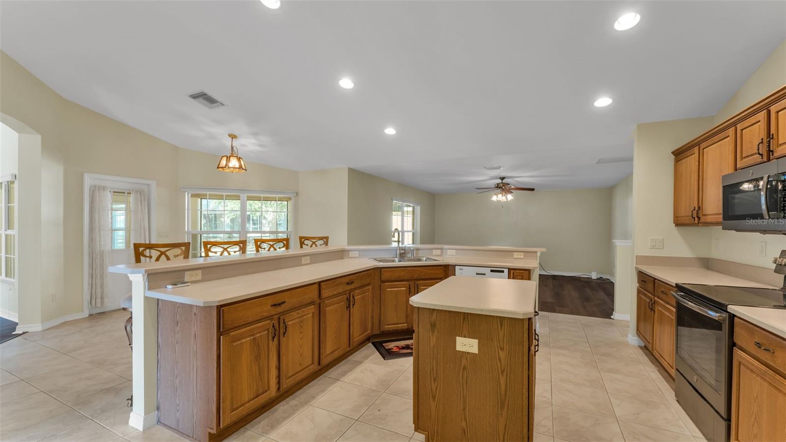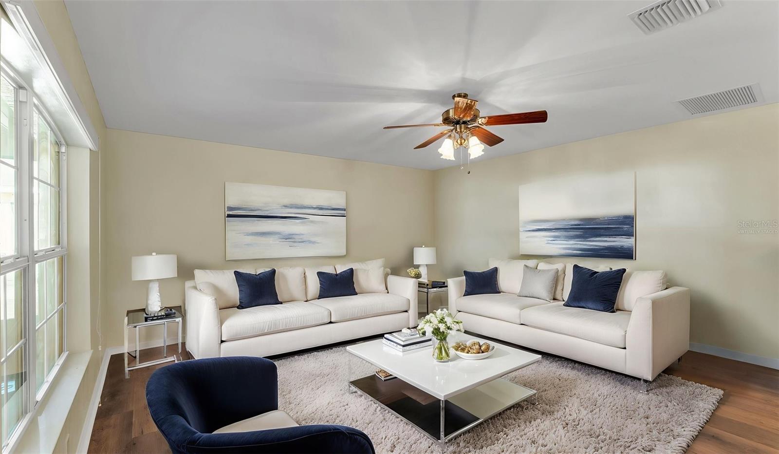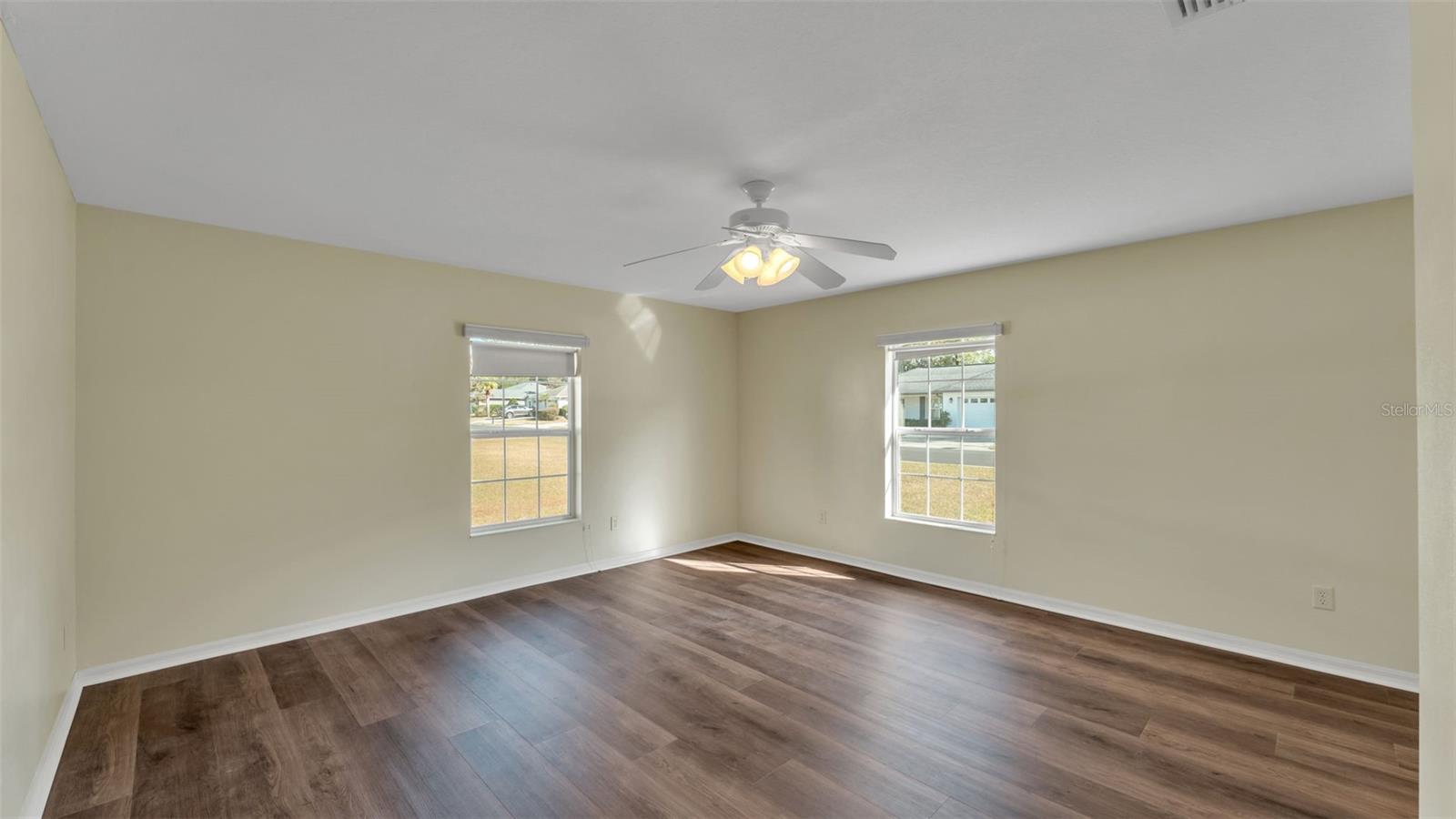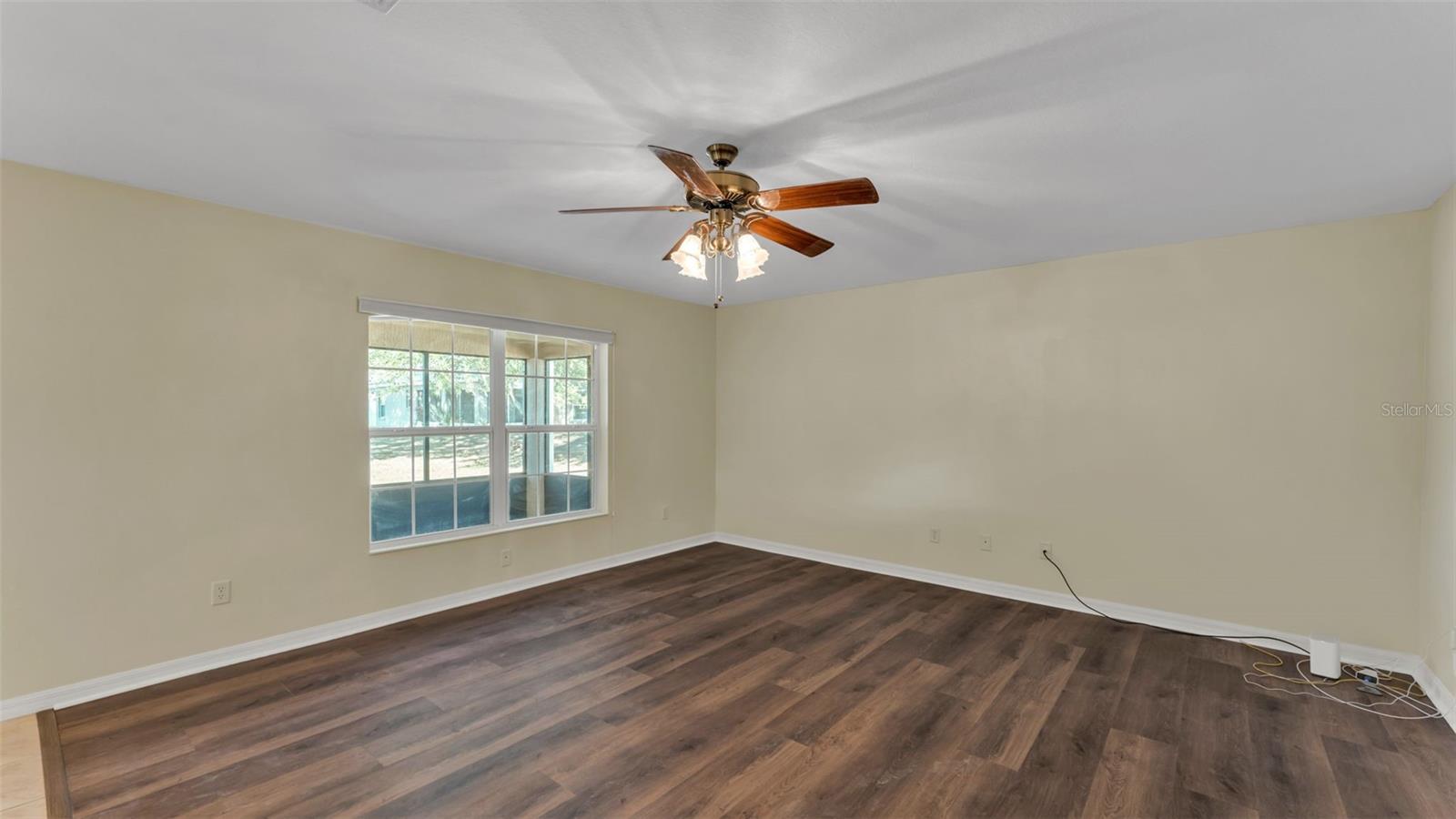 One or more photo(s) has been virtually staged. Welcome to this move-in ready 3 bedroom, 2 bathroom home located on a desirable corner lot in Autumn Ridge Subdivision. Step inside and immediately notice the new luxury vinyl plank flooring and fresh interior paint that give the home a modern, inviting feel. The spacious primary suite offers a private retreat with an ensuite bathroom featuring dual vanities, a garden tub, walk-in shower, and large walk-in closet. Just off the primary suite is a versatile living room/sitting area, perfect for relaxation or a home office. The open floor plan is ideal for entertaining, with the kitchen overlooking the family room. The kitchen boasts stainless steel appliances, a built-in pantry, a center island for meal prep, and a separate island with seating. Two additional bedrooms of equal size are thoughtfully positioned on the opposite side of the home, sharing a full bathroom for convenience. Enjoy outdoor living on the screened-in patio just off the kitchen—perfect for morning coffee or evening gatherings. Recent upgrades include a new roof (2023), new HVAC system (2023), and new luxury vinyl plank flooring throughout. Conveniently located near shopping, dining, and everyday amenities, this home combines comfort, style, and functionality. Call today to schedule your private showing!