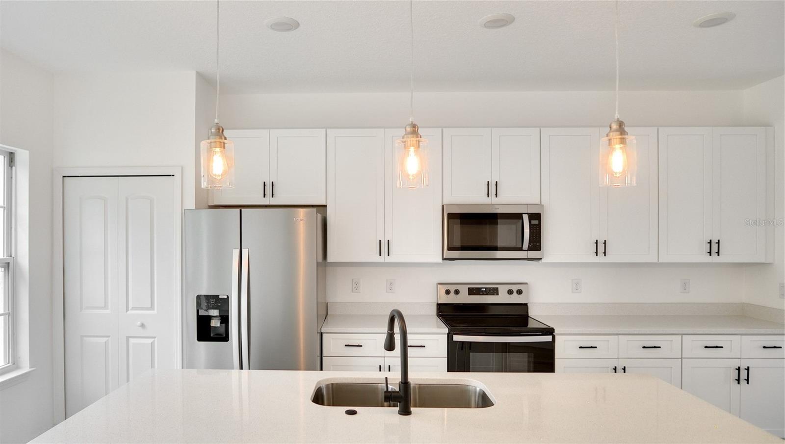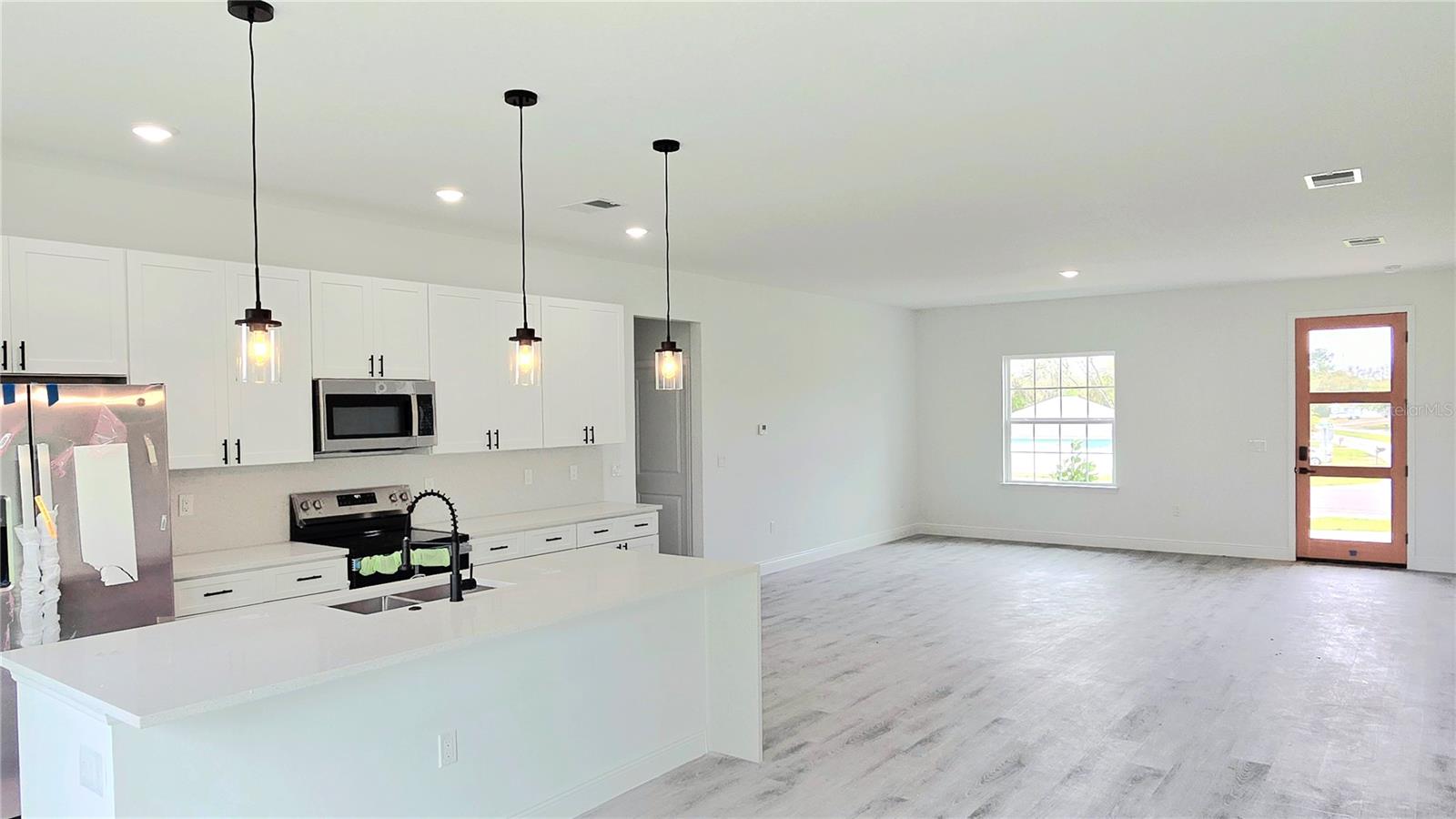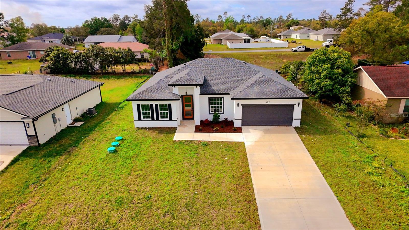 Seller is offering credit to cover part of the buyer's closing costs! Welcome to your brand-new home in Ocala. This well-located home sits on a 0.24-acre lot nestled in the desired Unit 05 at Marion Oaks. The 8-foot front door welcomes you into this elegant 1,774 sqft residence that features an open floor plan with high 9-foot ceilings, luxurious vinyl flooring throughout the house, and modern fixtures in every room. The gourmet kitchen boasts quartz countertops with a striking waterfall island, 42" custom wood cabinets, and stainless steel appliances. The bathrooms are beautifully tiled from floor to ceiling in the shower space, and the spacious master suite offers a walk-in closet and a spacious bathroom. Buy your dream home right now in a premium location with comfort and style, and take advantage of the builder's full home warranty. Schedule your visit today!