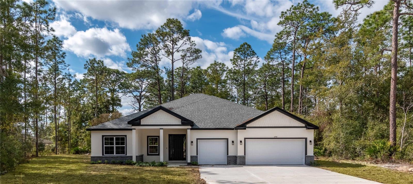 Stunning new construction in the thriving community of Marion Oaks featuring 4-bedrooms 3-bathrooms and 3 car garage situated on a oversized .33 acre lot! Stand out features include gorgeous Sparkling White Quartz countertops, floor to ceiling UPGRADED designer tile in all the bathrooms, Samsung stainless steel kitchen appliance suite including washer and dryer, 9'4'' ceilings, 8' doors throughout the entire home, Mohawk Revwood flooring throughout the entire home (NO CARPET), and so much more. From the moment you arrive you will notice the oversized driveway with ample parking and tasteful stacked brick accents. Once inside, you are greeted by the front foyer that opens to the expansive living space with the living room, dining room and kitchen all flowing together in perfect harmony. The kitchen features 42'' upper cabinets, walk-in pantry, and massive island that is sure to be the center of entertaining. The Master suite showcases the tray ceiling, dual sink vanity, oversized walk-in closet, and fully tiled designer shower with glass enclosure. Guest bedrooms are all very well sized with 2 bedrooms sharing a jack and jill bathroom with dual sink vanity and tub/shower combo. Indoor utility room with plenty of natural light will make laundry your favorite chore. The covered lanai is perfect for enjoying the Florida weather and relax with family and friends. Peace of mind with 1 year craftsmanship warranty 7 year structural warranty through 2-10 Home Buyers Warranty. Schedule your private tour today before it's too late! *Photos are from previous built model please inquire about exact finishes/colors*