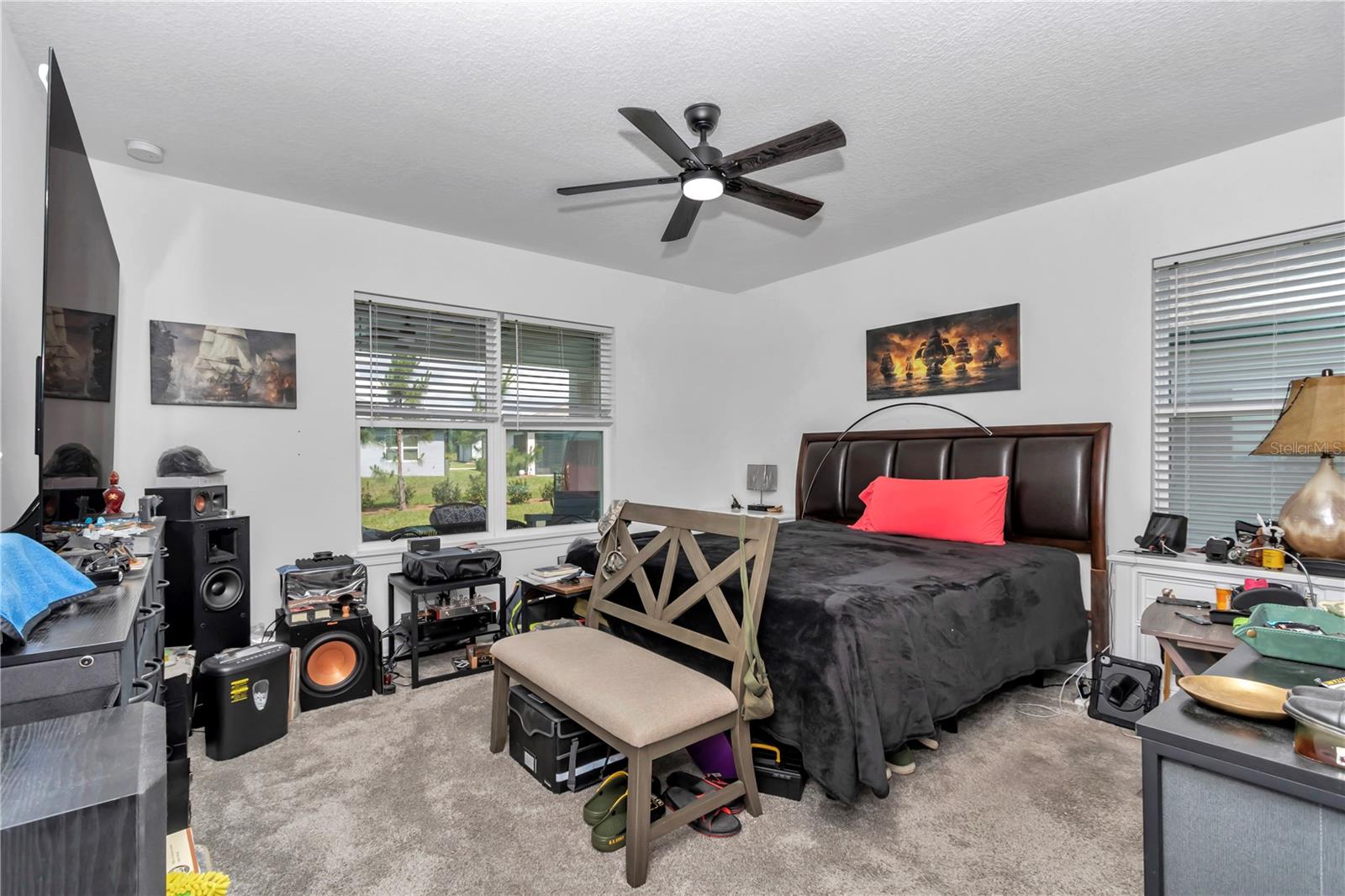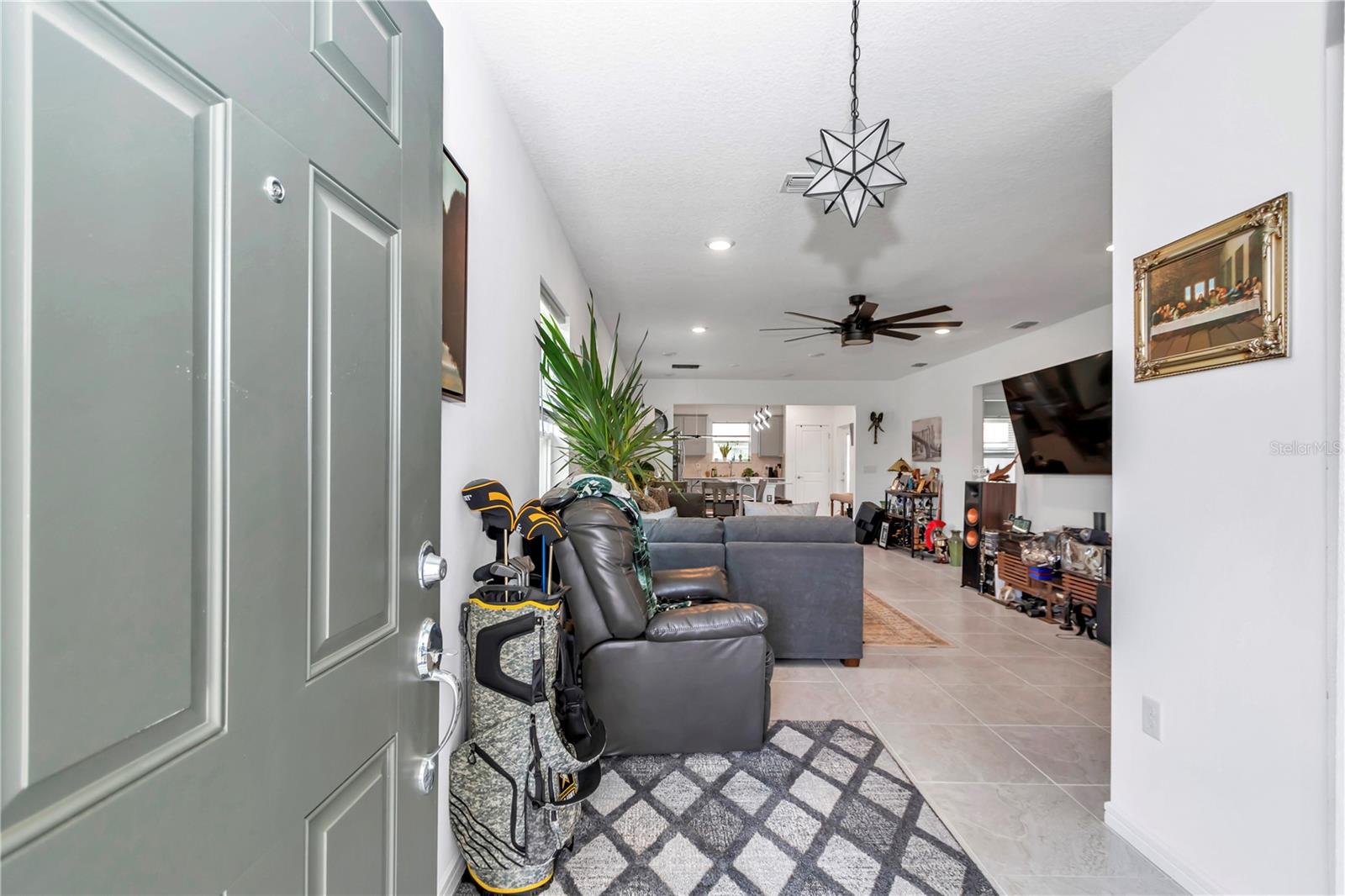 Seller motivated in this Candlewood model by Del Webb in Stone Creek a sought after 55+ community with guarded, gated entrance. This golf course and golf cart community features the best of the best amenities! This 2023 Candlewood has the perfect curb appeal with over four grand spent in raised stone gardens featuring a Royal Palm and lighting leading to the covered front porch. The current owner upgraded the the floor when building the home to tile with carpet in the bedrooms. This phenomenal plan features two bedrooms and two bathrooms plus a flex room that could be used for an extra den, hobby room or office. This open floor plan is very inviting with modern finishes. The focal point of the home is the spacious living room, dining and modern kitchen. The kitchen features spacious island with quartz countertops, stainless steel appliances and backsplash. Just off of the living room is the primary bedroom featuring double vanity, countertops and upgraded seamless glass door shower. The second bedroom is across the home and has basically its own bathroom with modern conveniences. There’s a two car garage with tier level storage allowing you to park your car underneath. Step back through the main Living and through the kitchen out to the cupboard lanai into your peaceful backyard. This home has irrigation with wifi, rain gutters, and an additional in upgrades in the home with modern lighting, new fans, wi-Fi thermostat, induction stove. 2025 water softener.The current owner is leaving the 2 TVs in the kitchen and in the spare bedroom. Low HOA and incredible amenities surround you in this one of a kind Candlewood. Golf cart available with an approved offer.