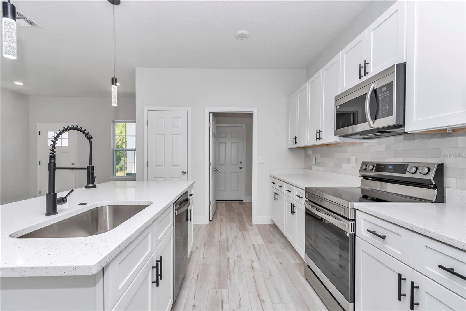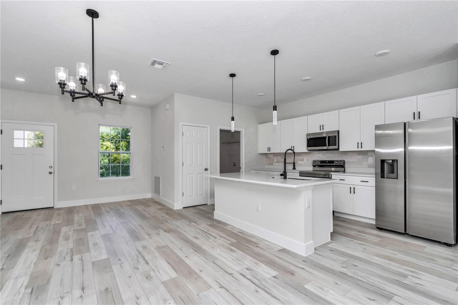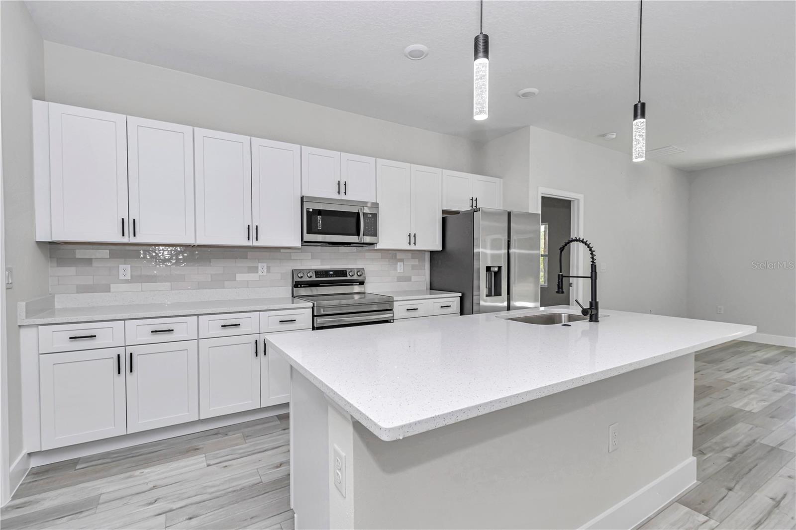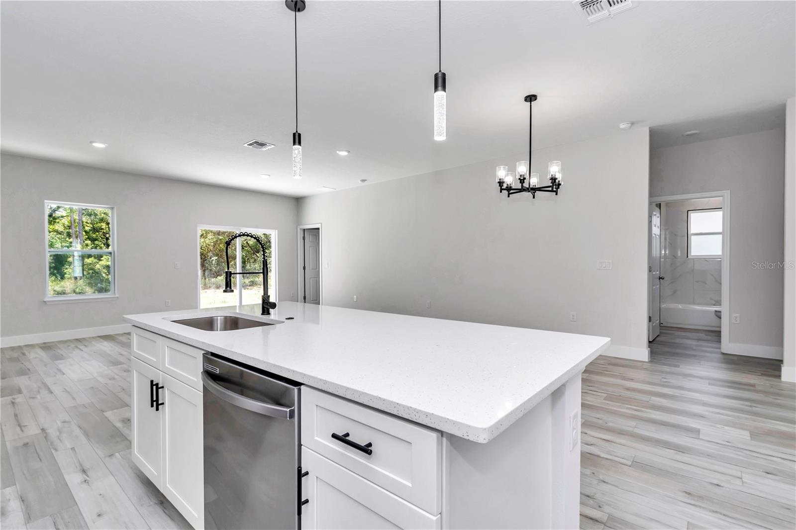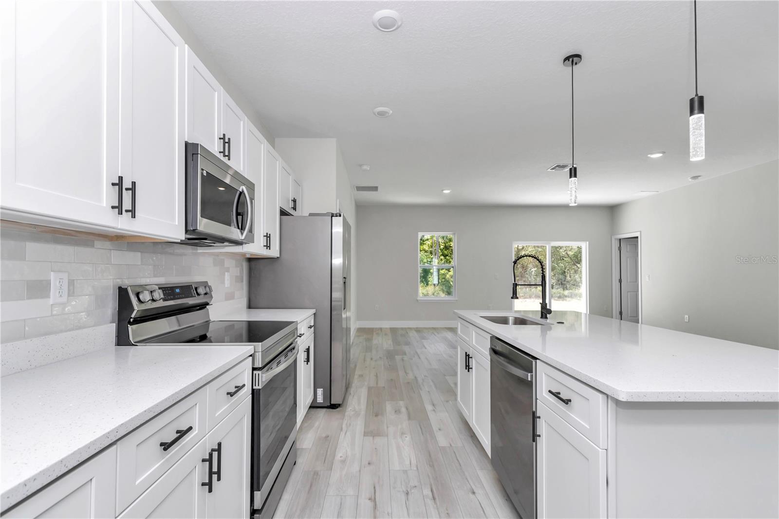 Your New Home with Style and Comfort Is Here! Discover this charming, newly built home with 4 bedrooms and 2 bathrooms, perfect for those seeking practicality and elegance. With an open-concept layout, the integration between the kitchen and the living room offers a large, naturally lit space with a light and welcoming atmosphere. The main rooms have sophisticated vinyl flooring, which enhances the beauty of the spaces. The kitchen draws attention to its high-end finishes: waterfall stone countertops, solid wood cabinets and modern appliances complete the ideal environment for those who love to cook. The master suite guarantees comfort and privacy with its exclusive bathroom. The house also has a separate laundry room, ready to be customized according to your needs. With a two-car garage and automatic gate, you will have more practicality and security in your daily life. Located in Ocala, a city surrounded by natural beauty and quality of life, this residence is the right choice for those who want to live well. Schedule your visit and come and be enchanted in person by this unique opportunity!