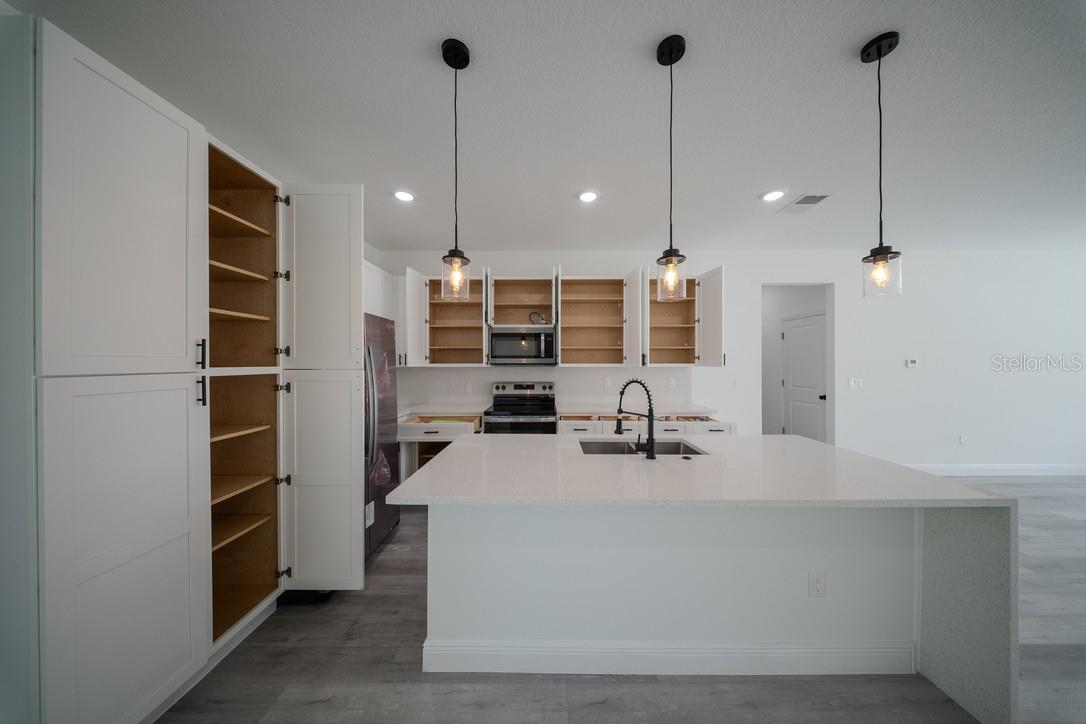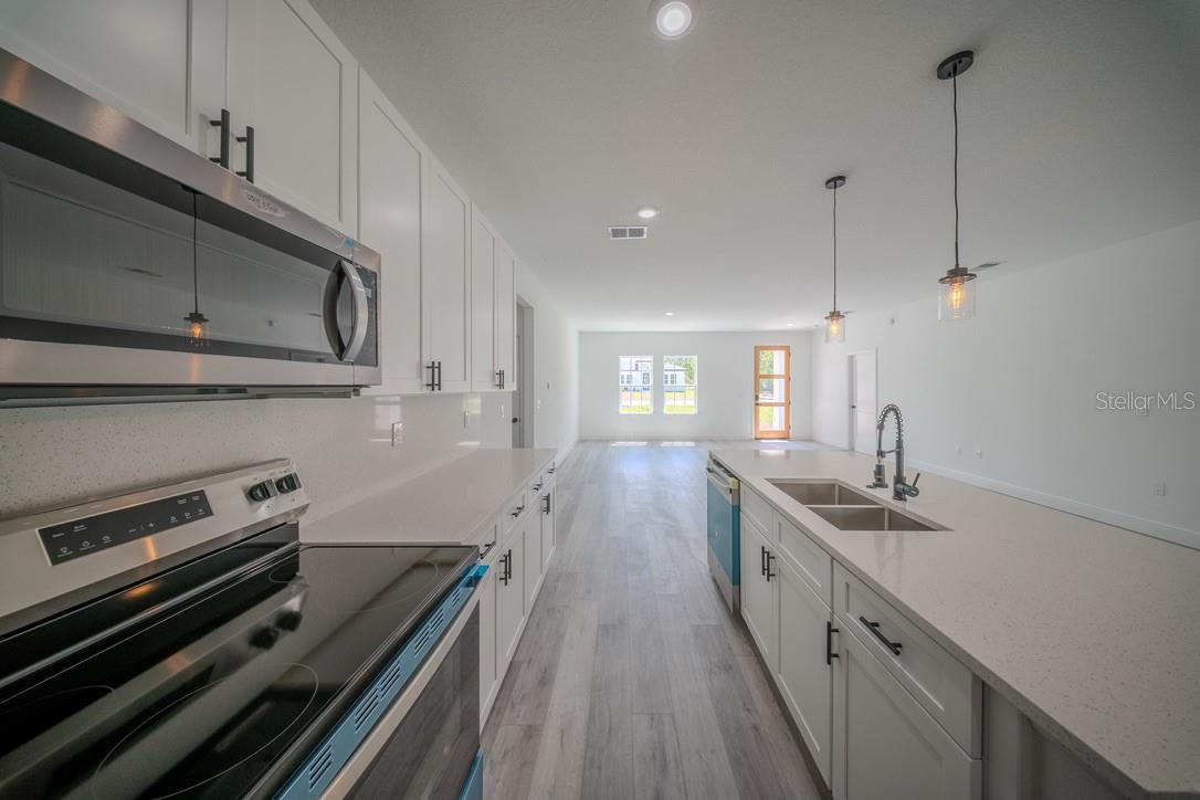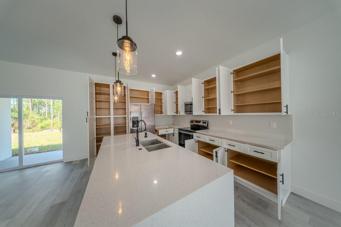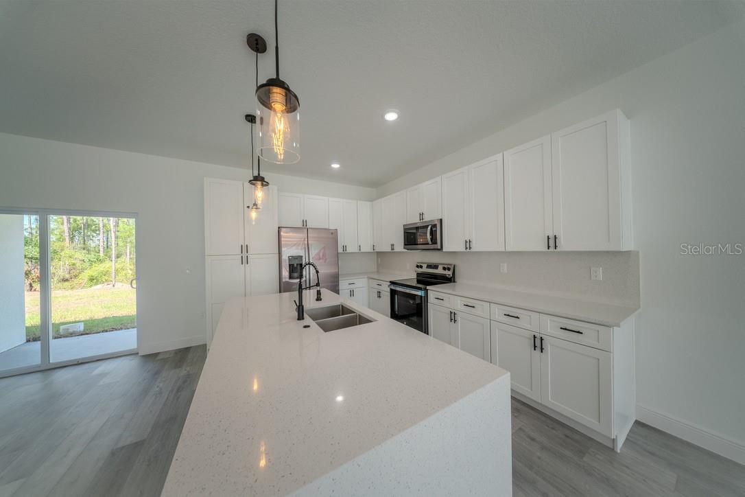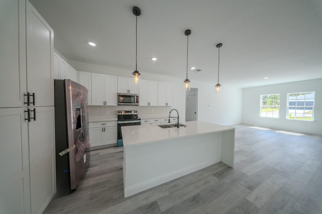 *Ready to MOVE-IN* This stunning home, located on a spacious lot has 4 bedrooms and 2 bathrooms, large living room with open concept kitchen, equipped with stainless steel appliances including a range, refrigerator, garbage disposal, dishwasher, and microwave, as well as an island and ample cabinet space, perfect for hosting large family gatherings. Rooms are spacious and comfortable, which allows for seamless flow and natural light throughout the home. The house has several upgrades, such as vinyl flooring, floor to ceilings tiles on bathrooms and lanai with space for outdoor kitchen. With a two-car garage, in addition to being more spacious, has a greater height than standard. It is a perfect place to live or invest. Closing Costs incentive.