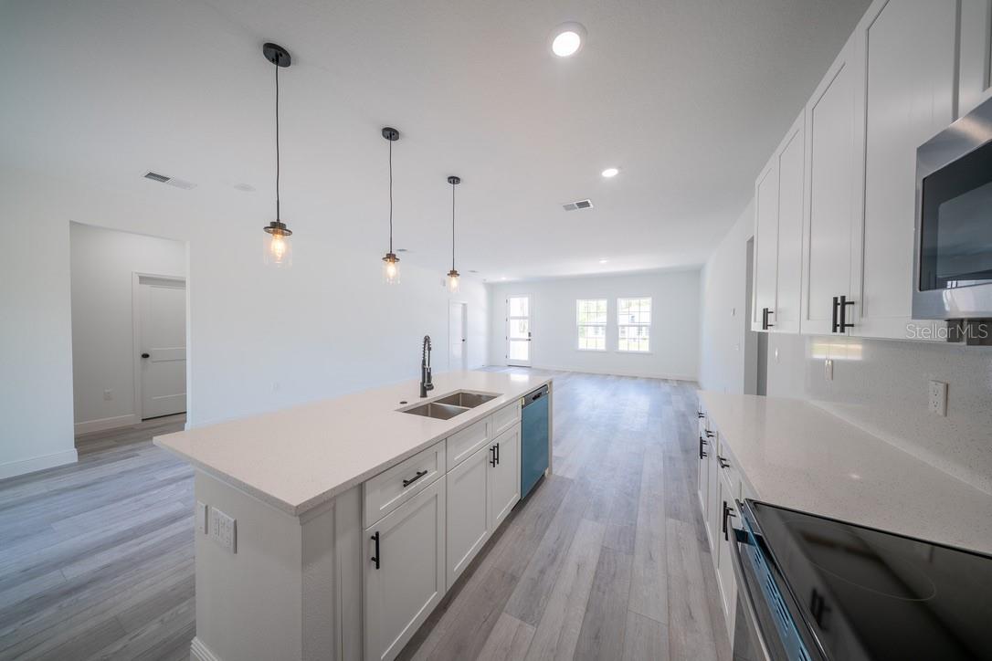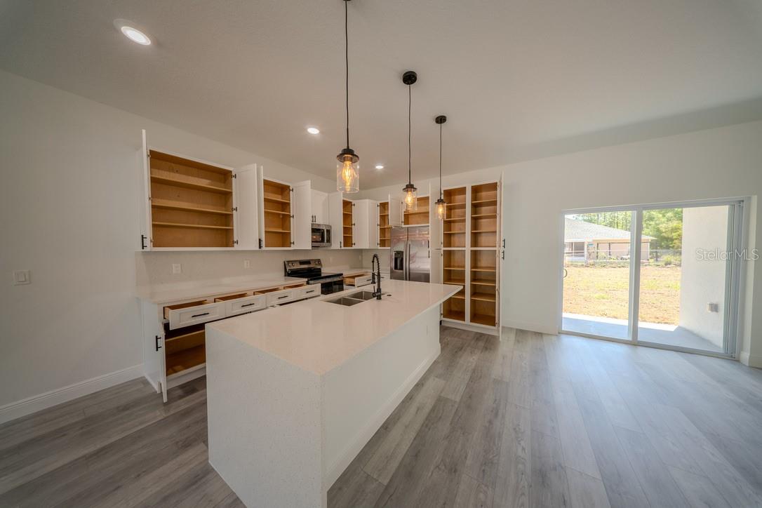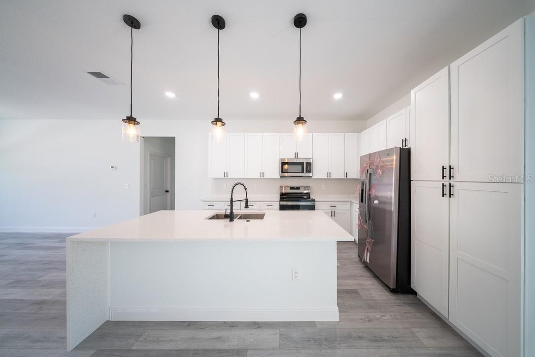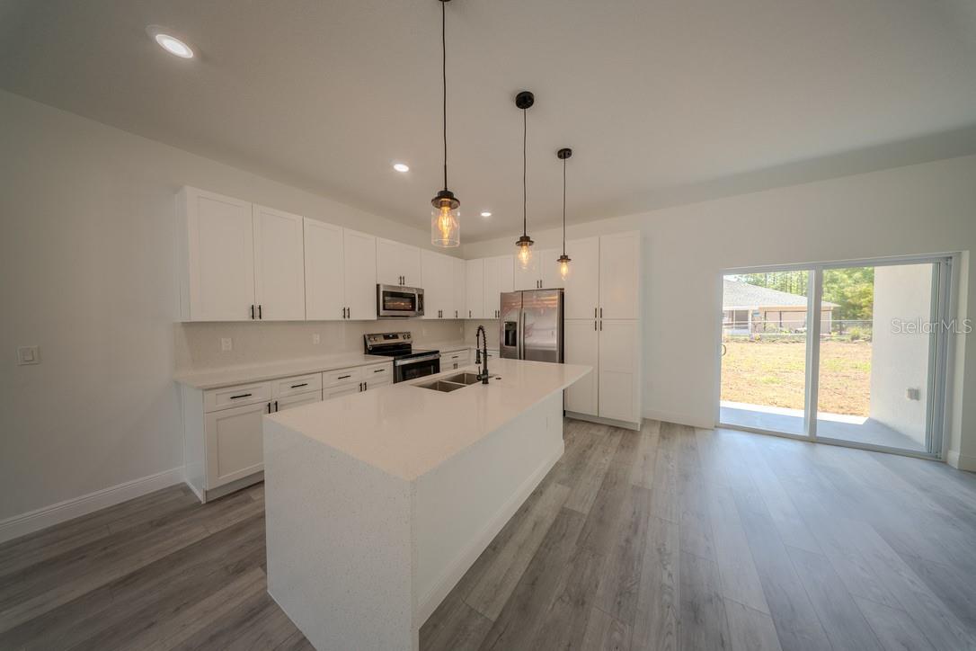 * Ready to MOVE-IN*This stunning home, located on a spacious lot has 4 bedrooms and 2 bathrooms, large living room with open concept kitchen, equipped with stainless steel appliances including a range, refrigerator, garbage disposal, dishwasher, and microwave, as well as an island and ample cabinet space, perfect for hosting large family gatherings. Rooms are spacious and comfortable, which allows for seamless flow and natural light throughout the home. The house has several upgrades, such as vinyl flooring, floor to ceilings tiles on bathrooms and lanai with space for outdoor kitchen. With a two-car garage, in addition to being more spacious, has a greater height than standard. It is a perfect place to live or invest. Closing costs incentive!