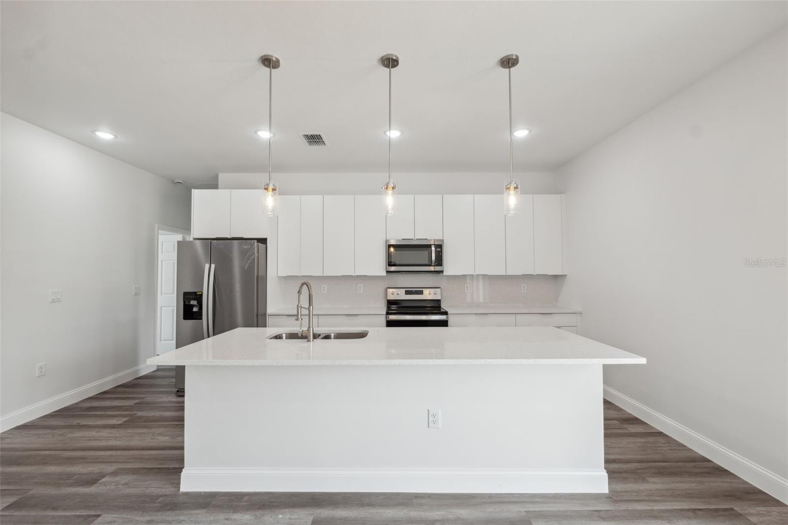 One or more photo(s) has been virtually staged. New Home for Sale in Ocala – Space, Comfort and Style for Your Family! We present this beautiful newly built home, ideal for those seeking quality, modernity and a welcoming environment. With 4 spacious bedrooms, all with walk-in closets, and 2 full bathrooms with built-in closets – the master suite being equipped with extra closets – this property was designed to offer practicality and comfort in every detail. Upon entry, you will find a charming porch, landscaped garden and an elegant brick facade that combines beauty and durability. The modern front door gives access to the main living room, with high ceilings, providing a bright, airy and very inviting environment. The home has an open concept floor plan, integrating the living room, dining room and kitchen – perfect for family moments and for entertaining guests. The kitchen is one of the highlights, with waterfall-style quartz countertops, high-quality wood cabinets, full ceramic tile and stainless steel appliances. Sliding glass doors connect the interior area to the spacious backyard, ideal for outdoor entertainment, pool construction or custom landscaping. The house also has LED outdoor lighting, a laundry room with ready-made facilities and a covered garage for two cars with an automatic gate. All this comes with a 1-year construction warranty and is located in a quiet area that is constantly increasing in value – an excellent opportunity to live well or invest safely. Schedule your visit and come see your new home in Ocala!