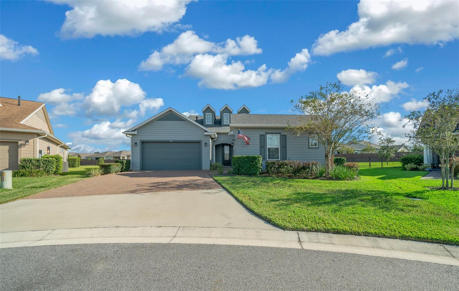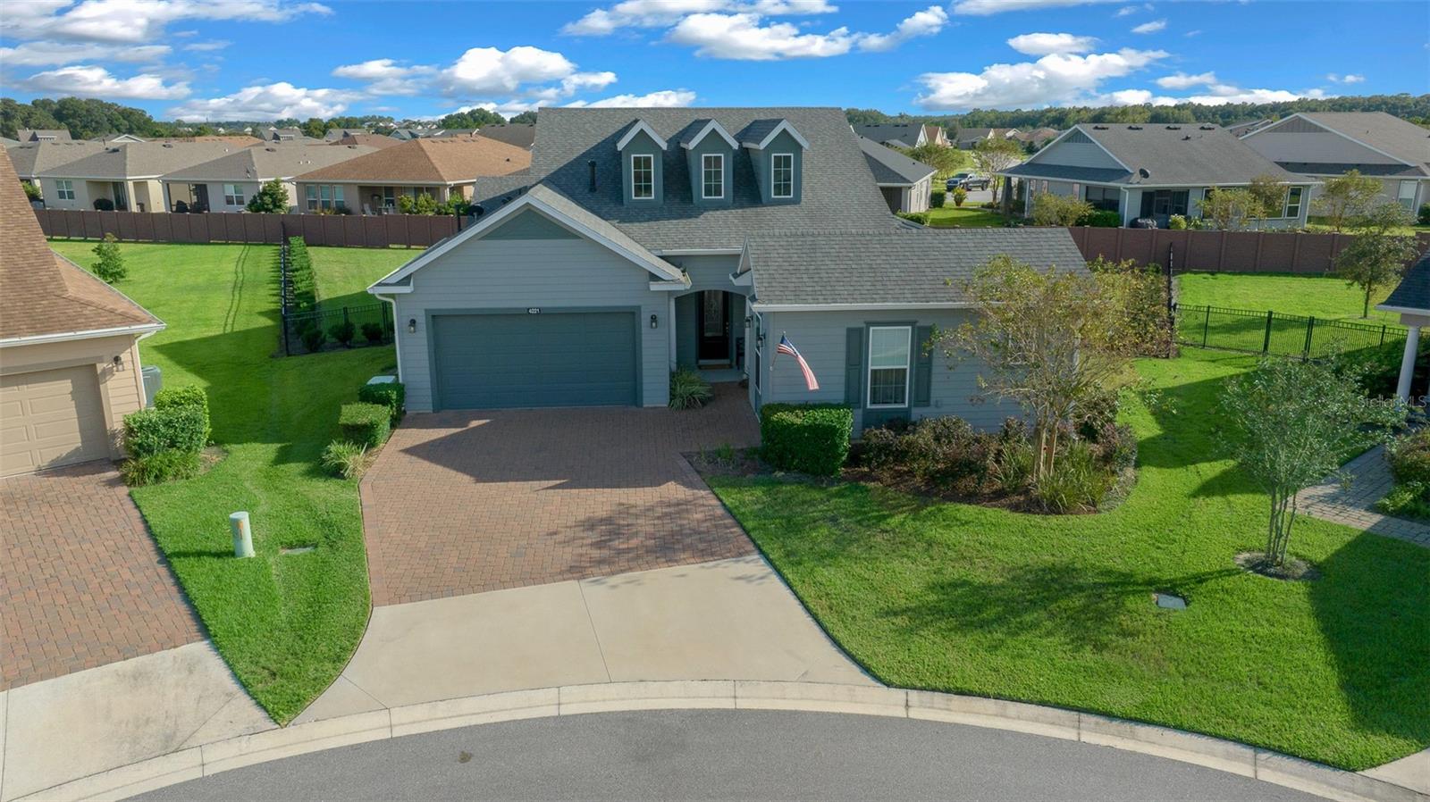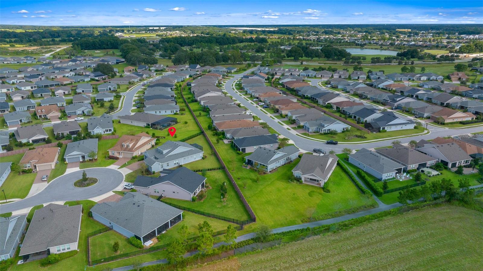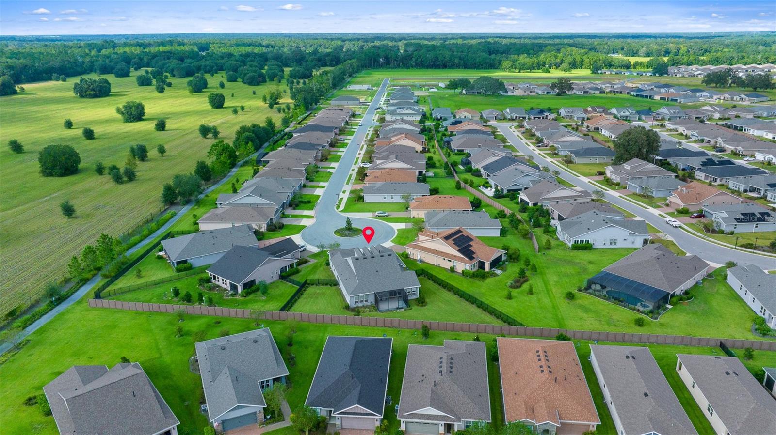 Shea Built IMAGINE Model Home – Offered Turn-Key Furnished with Golf Cart! This stunning Shea-built IMAGINE model is being offered completely turn-key furnished, including a 2019 lithium-battery, golf course–compliant EZ-GO golf cart. Perfectly positioned at the end of a cul-de-sac, the home sits on an oversized 1/3-acre lot, providing complete privacy. No detail was overlooked. The home was thoughtfully designed with the kitchen located at the rear of the great room, creating seamless indoor/outdoor entertaining and additional cabinet space. Features include quartz countertops, a natural gas cooktop, and, if you prefer, the original electric cooktop remains with the home. Shea Homes are known for their all–natural gas design—cooking, heating, hot water, and dryer—and this property also includes a 22KW Generac generator connected directly to the natural gas line for peace of mind. The expansive great room flows into a sunroom with vaulted ceilings and walls of windows—all double-pane Low-E for efficiency. A three-zone A/C system ensures maximum comfort throughout. The home was also built with the sought-after hobby room option, which features its own courtyard entrance while connecting to the guest bedroom. This versatile space is ideal as a private office, guest suite, or even a third bedroom. Interior upgrades include crown molding throughout, wood-look tile flooring in every room, 8-foot interior doors, and rarely found 10-foot ceilings, giving the home a true custom feel. The extended smart-space laundry room offers a sink and exterior door for added convenience. Step outside to enjoy the expanded and screened lanai, designed for relaxation and entertaining. But wait—there’s more! This home is offered fully turn-key furnished—furniture, dishes, utensils—just bring your clothes and toothbrush! The primary bathroom includes a dedicated area for a vanity or dressing table. The built-in vanity was removed to accommodate a furniture piece but is stored in the garage and included with the sale, along with a second refrigerator and a whole-house water softener. Located in the 55+ section of the community, this home is just 10 minutes from the World Equestrian Center, 6 miles from downtown Ocala, and close to the Reilly Arts Center. The HOA covers lawn and landscape maintenance (cutting, edging, trimming, treating, mulching, fertilizing, irrigation system, and irrigation water), high-speed internet, and full access to community amenities: indoor and outdoor fitness areas, group fitness classes, 20 miles of walking and biking trails, bocce, horseshoes, tennis, pickleball, fishing dock, kayaking, canoes, and paddleboats. Homeowners also enjoy discounts at the on-site restaurant, golf course, and spa services. No CDD assessments and a home warranty are included!