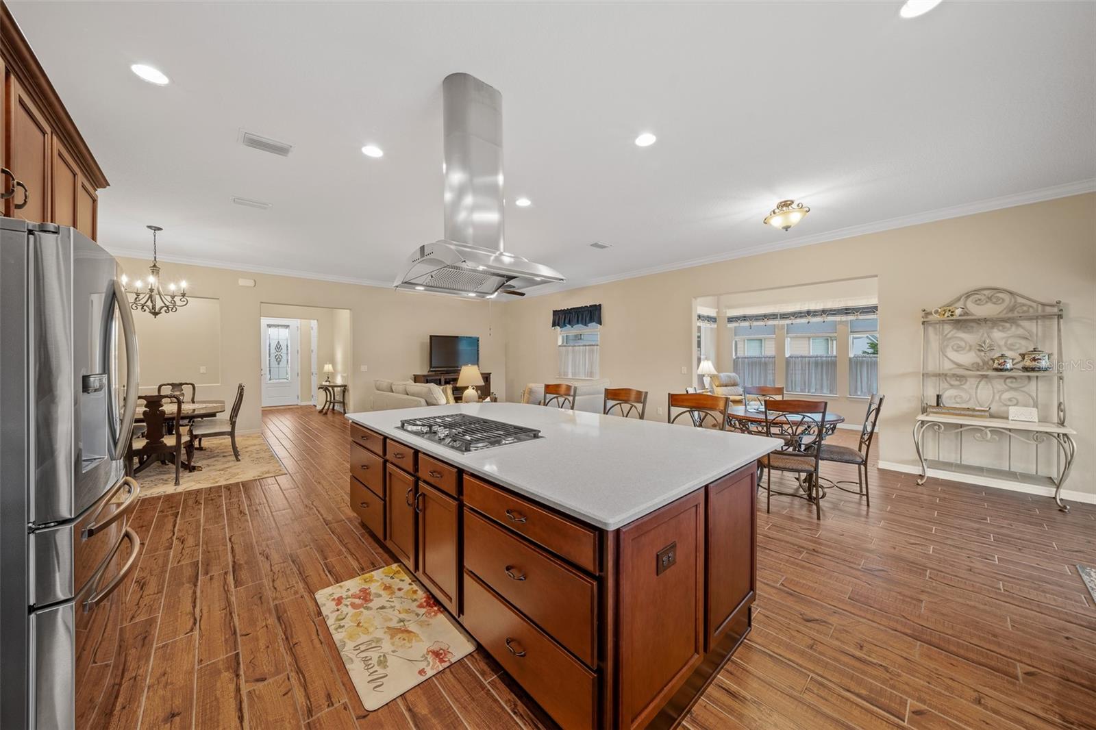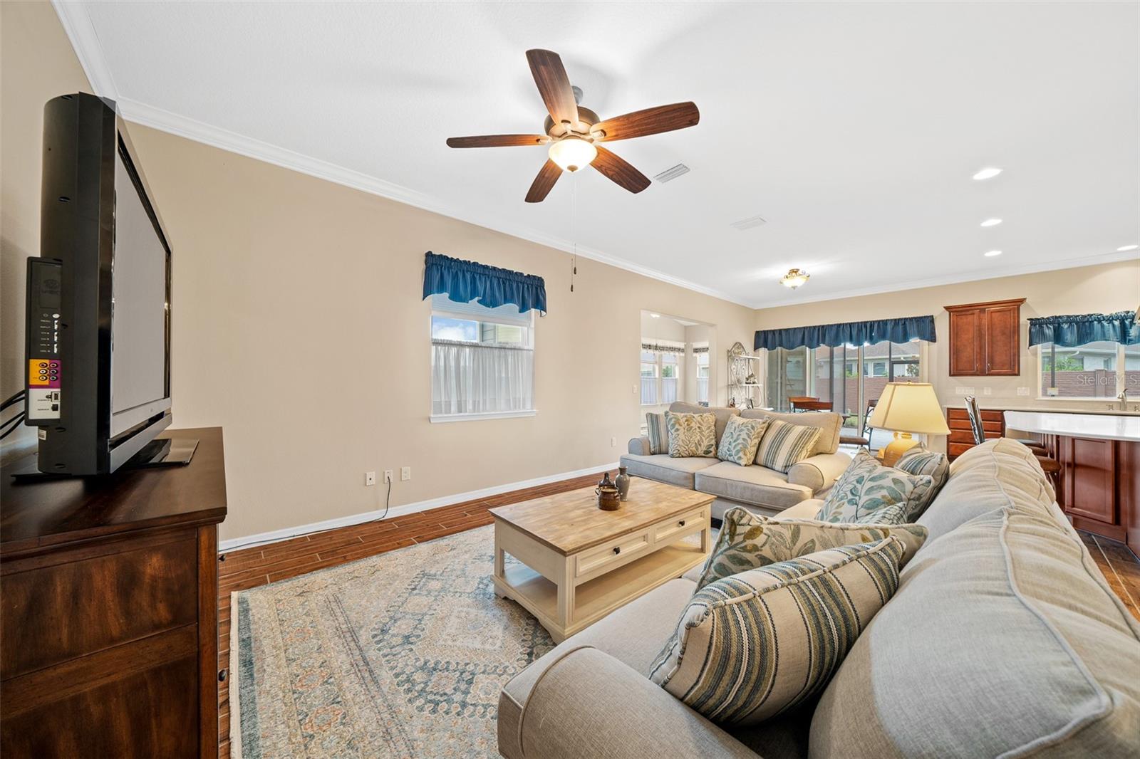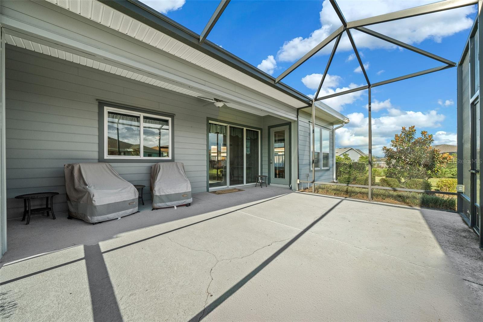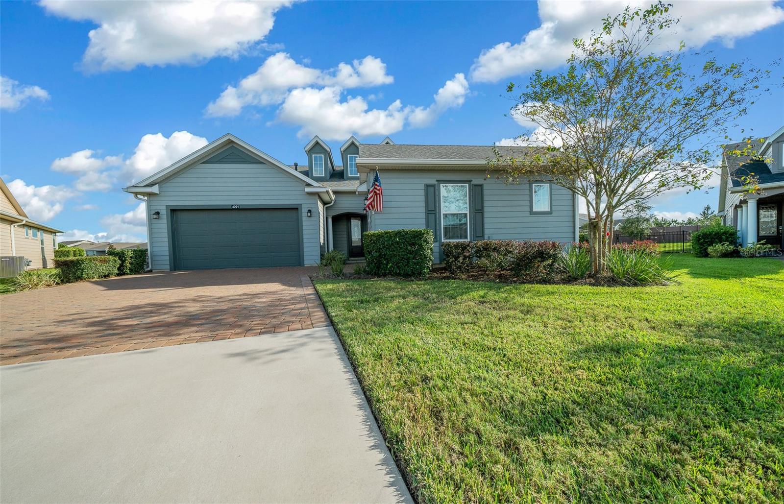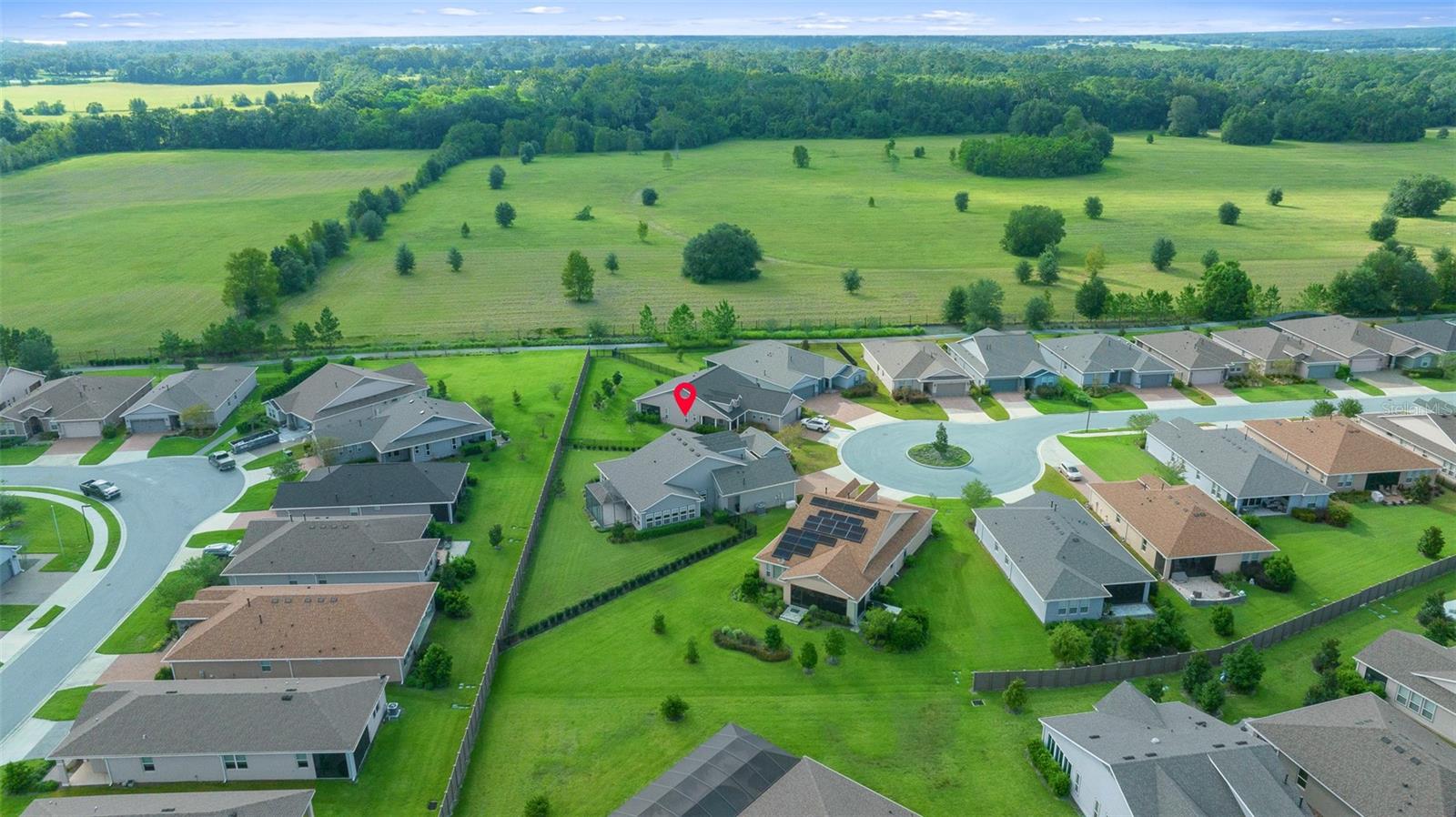 Shea Built IMAGINE Model Home – Offered Turn-Key Furnished with Golf Cart! This stunning Shea-built IMAGINE model is being offered completely turn-key furnished, including a 2019 lithium-battery, golf course–compliant EZ-GO golf cart. Perfectly positioned at the end of a cul-de-sac, the home sits on an oversized 1/3-acre lot, providing complete privacy. No detail was overlooked. The home was thoughtfully designed with the kitchen located at the rear of the great room, creating seamless indoor/outdoor entertaining and additional cabinet space. Features include quartz countertops, a natural gas cooktop, and, if you prefer, the original electric cooktop remains with the home. Shea Homes are known for their all–natural gas design—cooking, heating, hot water, and dryer—and this property also includes a 22KW Generac generator connected directly to the natural gas line for peace of mind. The expansive great room flows into a sunroom with vaulted ceilings and walls of windows—all double-pane Low-E for efficiency. A three-zone A/C system ensures maximum comfort throughout. The home was also built with the sought-after hobby room option, which features its own courtyard entrance while connecting to the guest bedroom. This versatile space is ideal as a private office, guest suite, or even a third bedroom. Interior upgrades include crown molding throughout, wood-look tile flooring in every room, 8-foot interior doors, and rarely found 10-foot ceilings, giving the home a true custom feel. The extended smart-space laundry room offers a sink and exterior door for added convenience. Step outside to enjoy the expanded and screened lanai, designed for relaxation and entertaining. But wait—there’s more! This home is offered fully turn-key furnished—furniture, dishes, utensils—just bring your clothes and toothbrush! The primary bathroom includes a dedicated area for a vanity or dressing table. The built-in vanity was removed to accommodate a furniture piece but is stored in the garage and included with the sale, along with a second refrigerator and a whole-house water softener. Located in the 55+ section of the community, this home is just 10 minutes from the World Equestrian Center, 6 miles from downtown Ocala, and close to the Reilly Arts Center. The HOA covers lawn and landscape maintenance (cutting, edging, trimming, treating, mulching, fertilizing, irrigation system, and irrigation water), high-speed internet, and full access to community amenities: indoor and outdoor fitness areas, group fitness classes, 20 miles of walking and biking trails, bocce, horseshoes, tennis, pickleball, fishing dock, kayaking, canoes, and paddleboats. Homeowners also enjoy discounts at the on-site restaurant, golf course, and spa services. No CDD assessments and a home warranty are included!