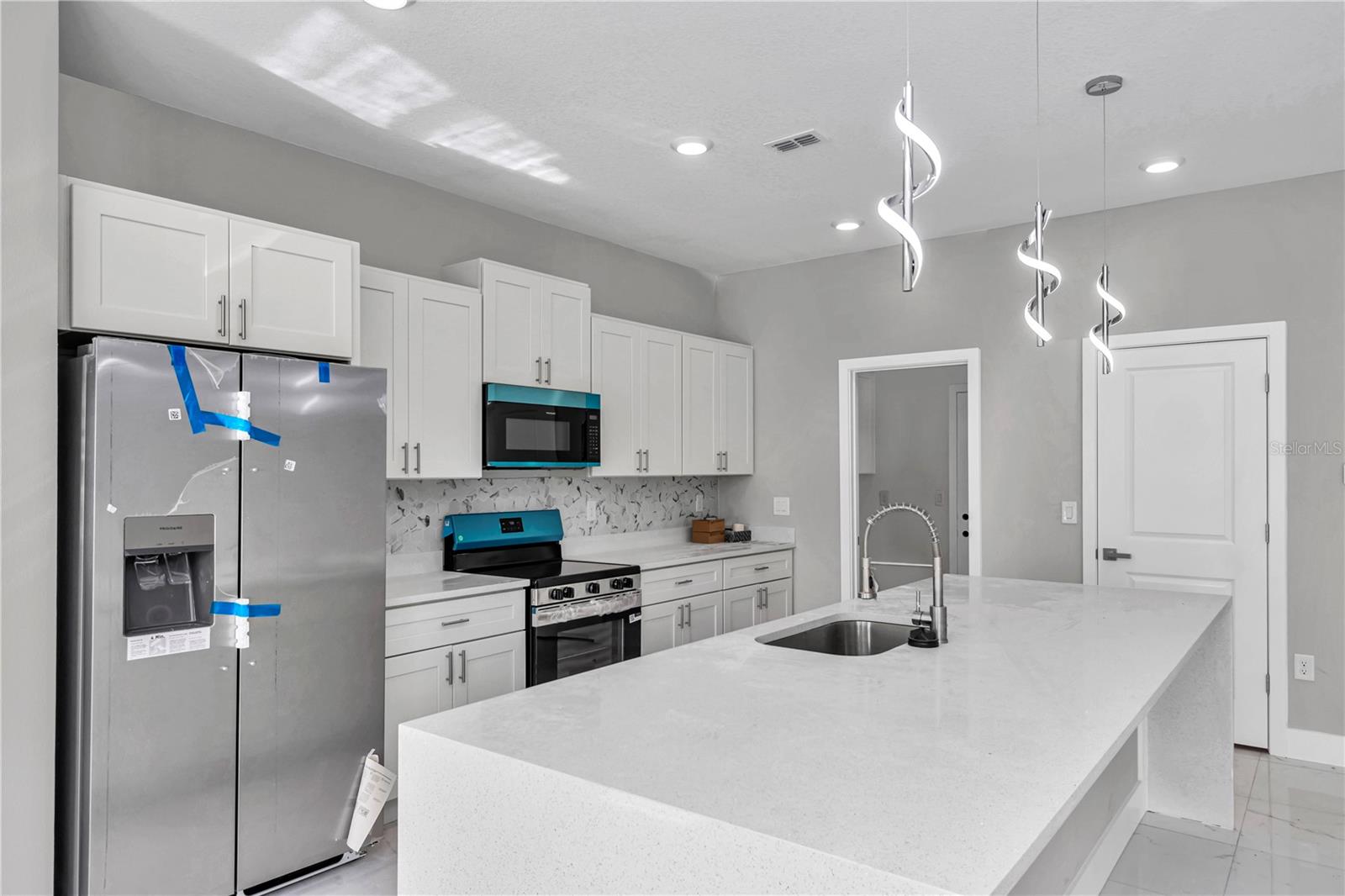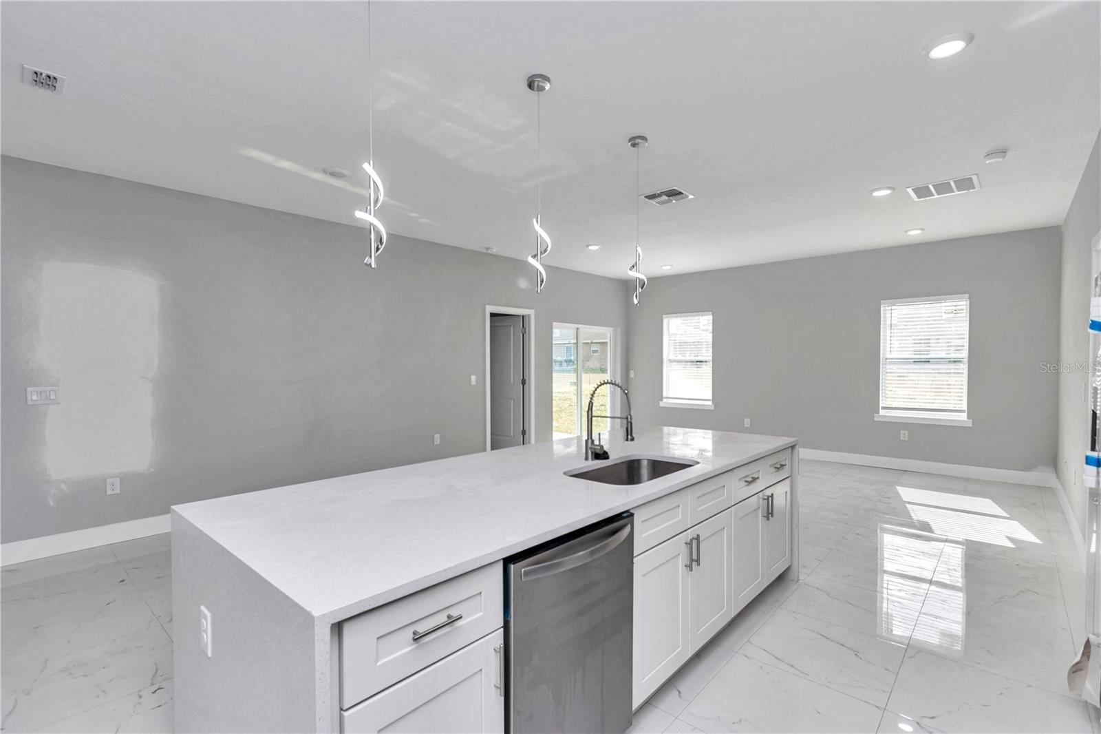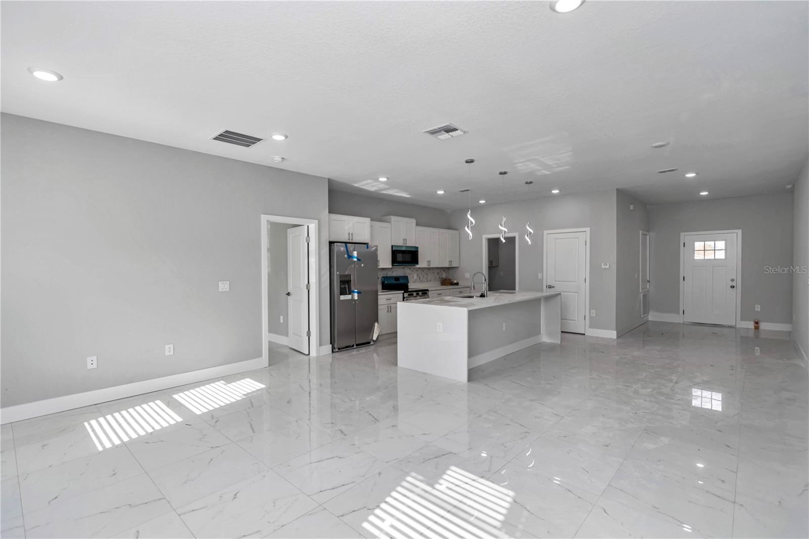 Beautiful brand-new 4-bedroom, 3-bath home with a Covered LANAI and entrance, featuring an open-concept layout with modern finishes and plenty of natural light. The kitchen includes stainless-steel appliances, quartz counter tops with a water-fall island, cabinets on laundry room, shower door on master bath and blinds on bedrooms, ready for move-in convenience. Enjoy outdoor living on the covered lanai and the comfort of a spacious 2-car garage. Located in a quiet area of Ocala, close to shopping, dining, and parks, offering the perfect blend of style and Florida living.