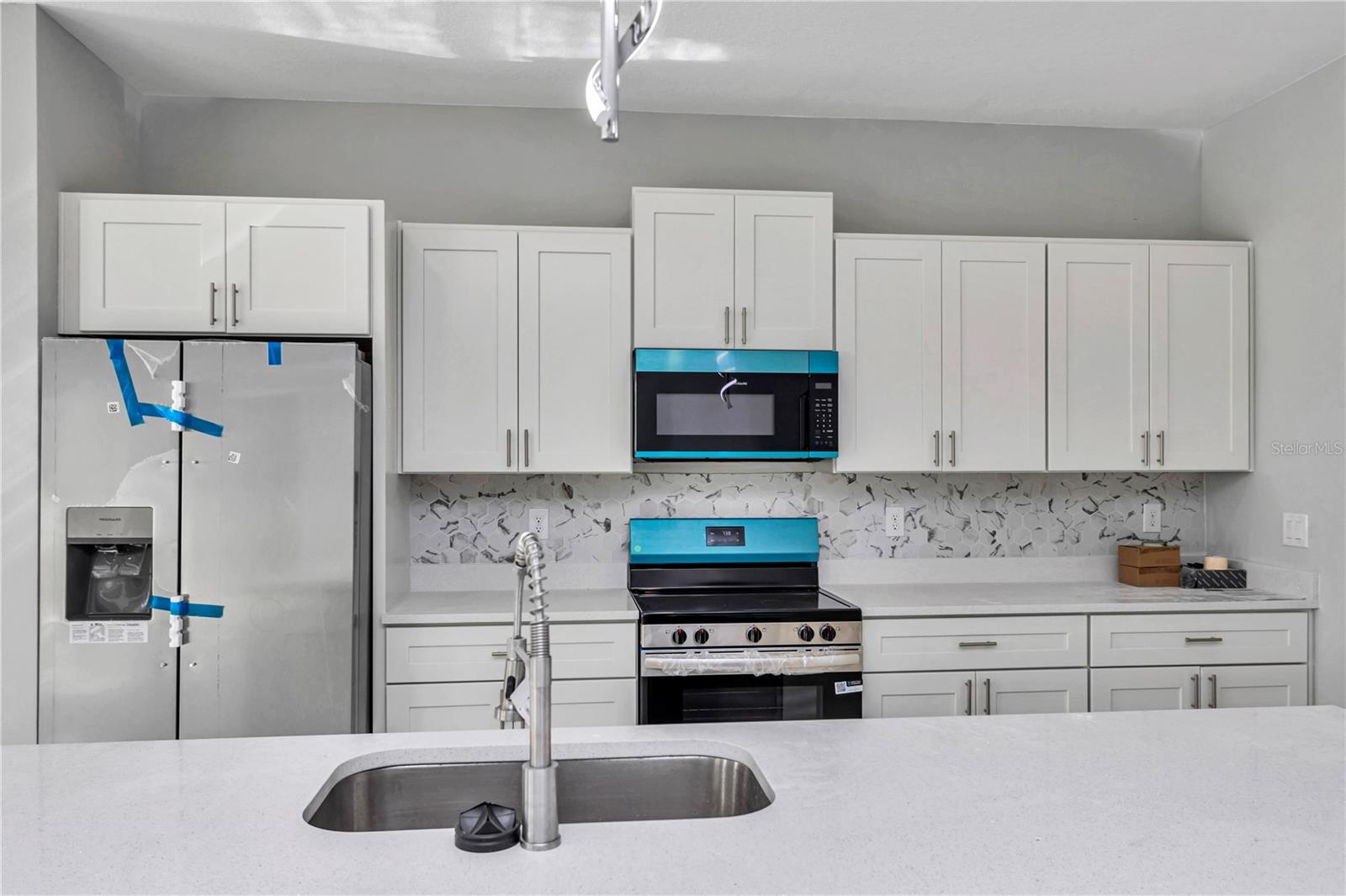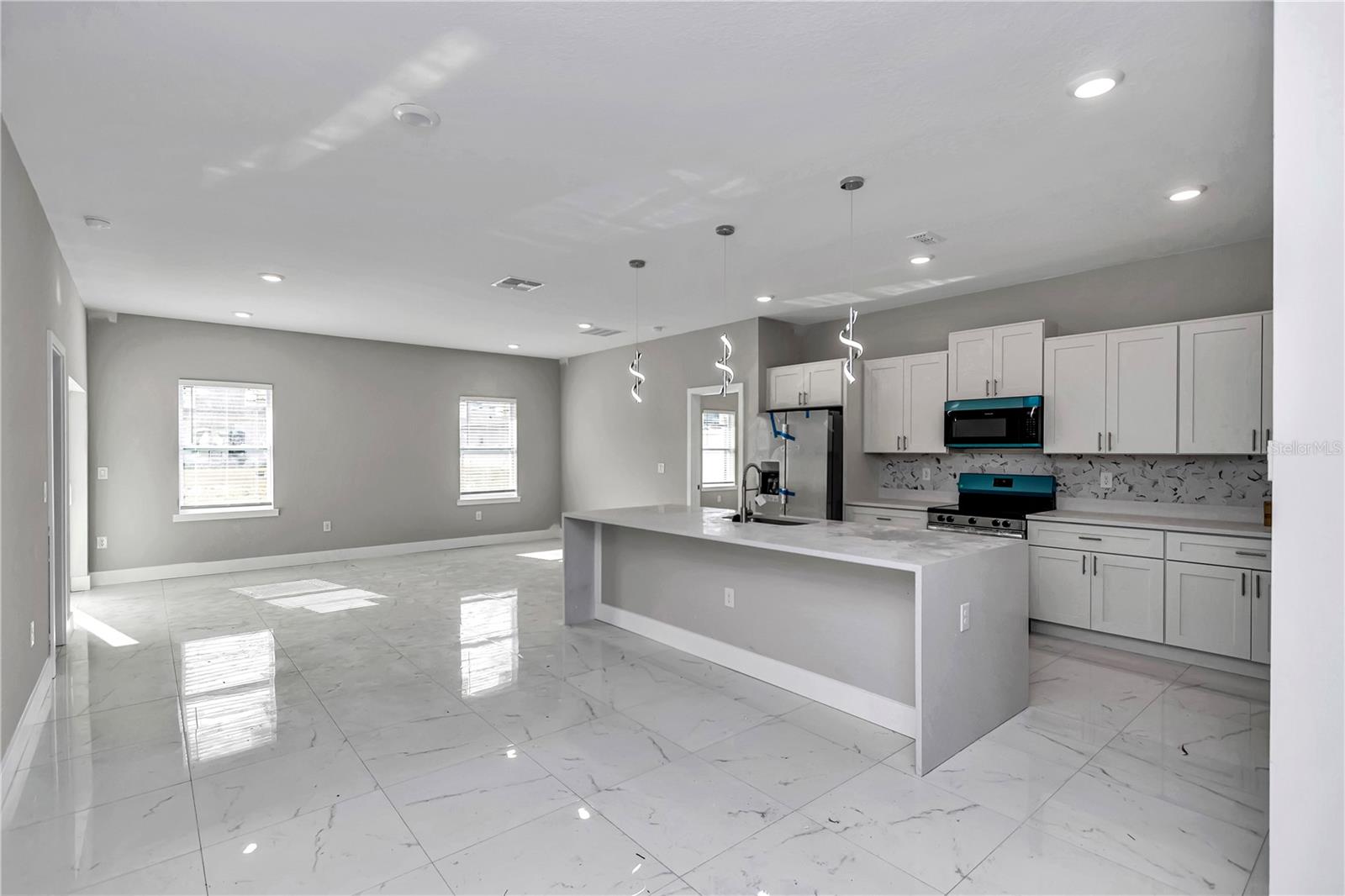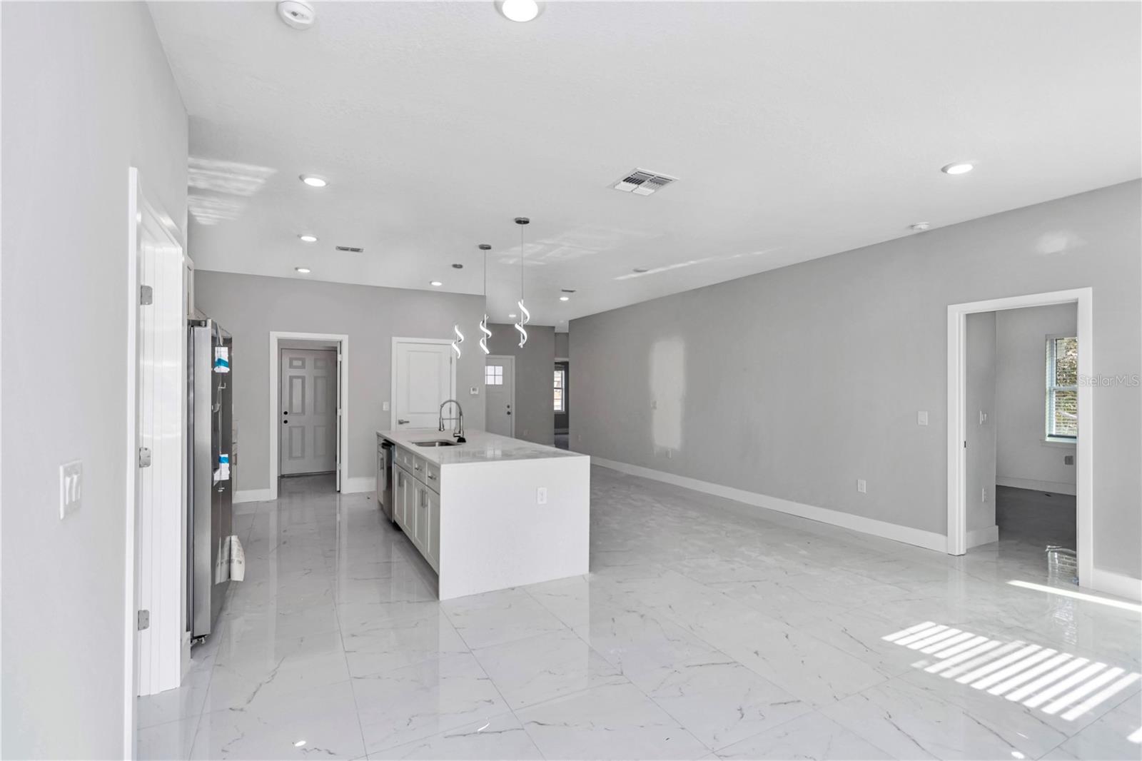 Beautiful brand-new 4-bedroom, 3-bath home with a Covered LANAI and entrance, featuring an open-concept layout with modern finishes and plenty of natural light. The kitchen includes stainless-steel appliances, quartz counter tops with a water-fall island, cabinets on laundry room, shower door on master bath and blinds on bedrooms, ready for move-in convenience. Enjoy outdoor living on the covered lanai and the comfort of a spacious 2-car garage. Located in a quiet area of Ocala, close to shopping, dining, and parks, offering the perfect blend of style and Florida living.
