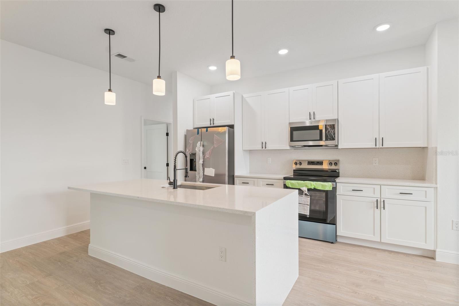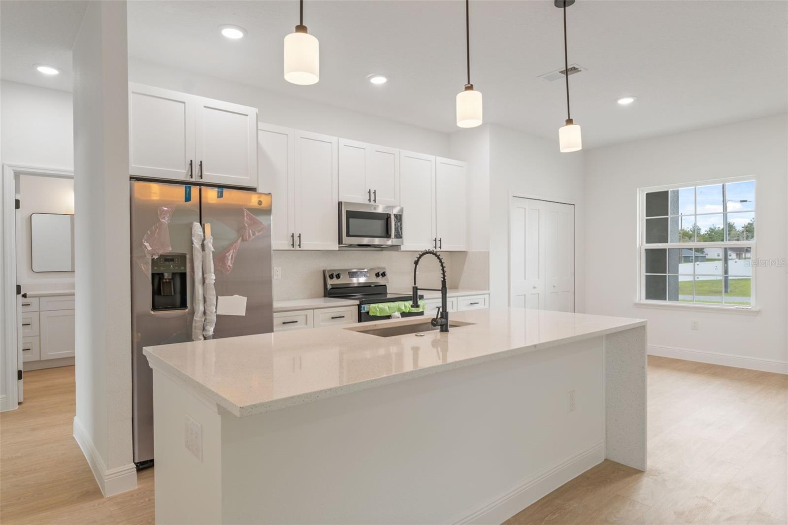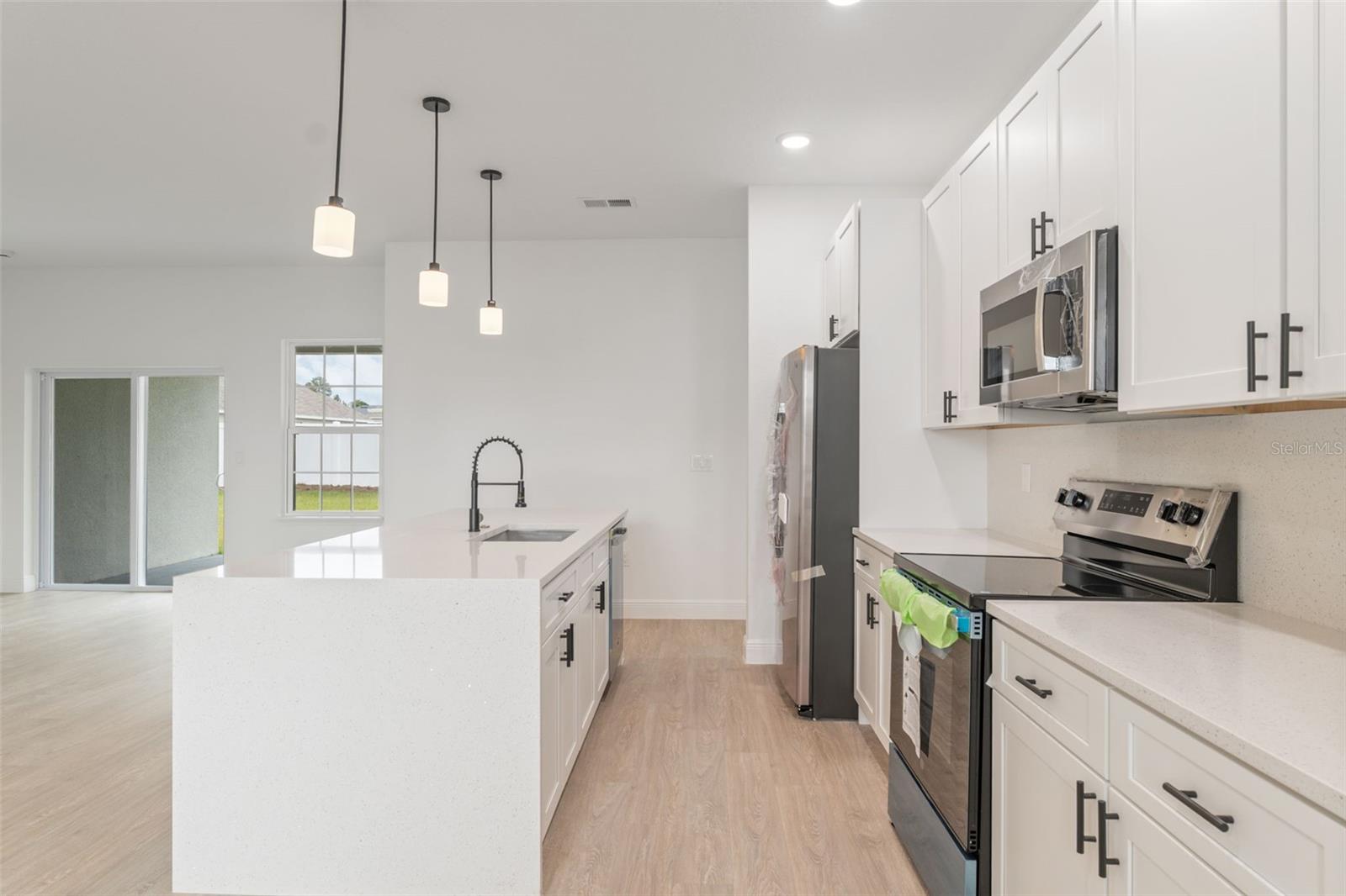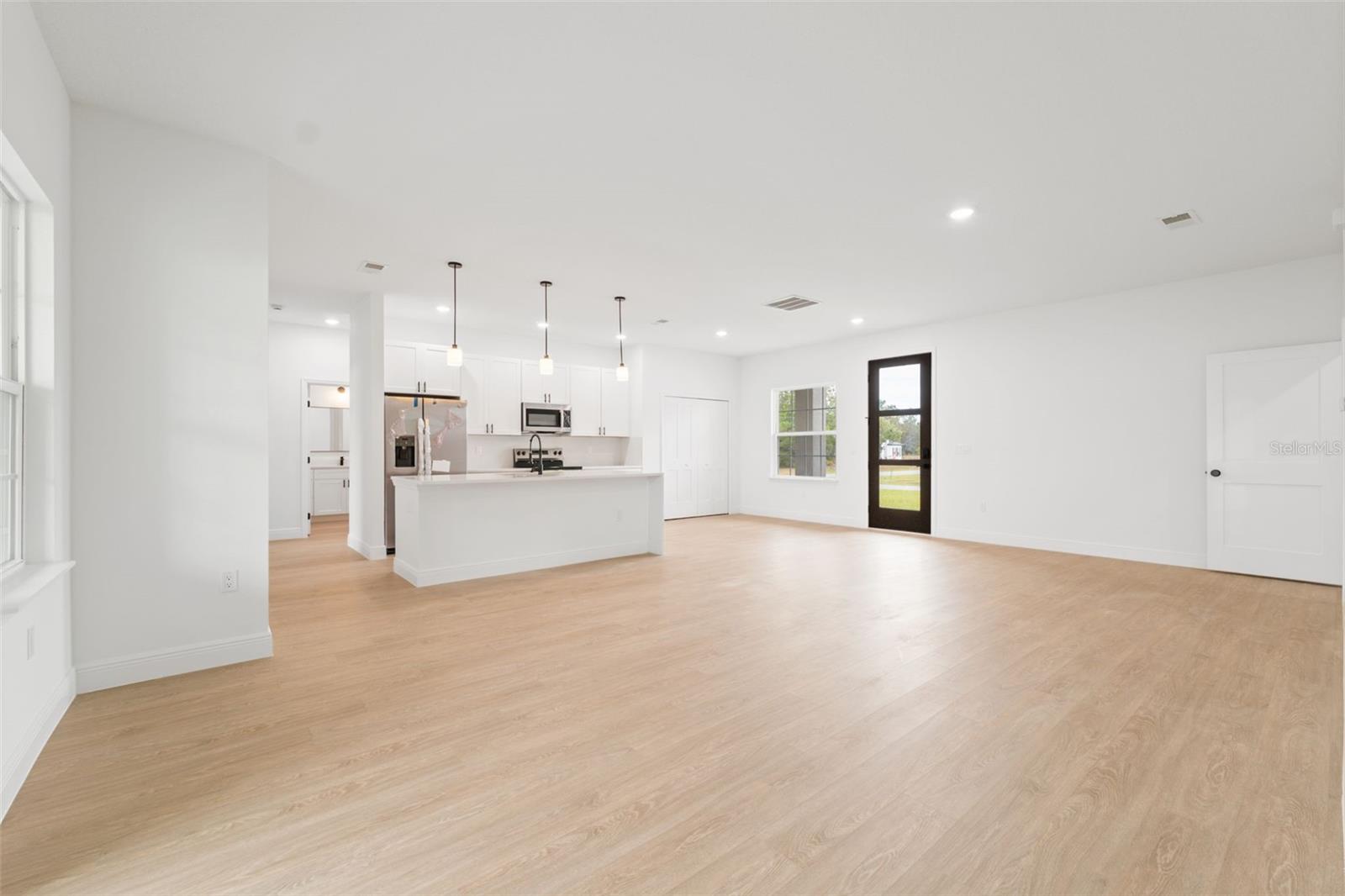 Modern New Construction Home in Prime Ocala Location Discover this stunning new construction home in the heart of Ocala, combining modern design with everyday comfort. Featuring 4 spacious bedrooms and 2 full bathrooms, this residence offers an ideal layout for families or those who love to entertain. The primary suite includes a luxurious walk-in closet, while the additional bedrooms feature built-in closets for ample storage. The open-concept floorplan creates a seamless flow between the living room and dining area, both filled with natural light and enhanced by sliding glass doors that open to a covered rear porch, perfect for relaxing or hosting gatherings year-round. The elegant kitchen showcases solid wood cabinets, stone countertops, and modern appliances—a beautiful and functional space for cooking and connection. A 2-car attached garage provides convenience and extra storage, while the home’s location adds tremendous value—situated near a main road for easy commuting and close to top-rated schools, shopping, and dining options. This home offers a blend of style, functionality, and location—an ideal choice for those seeking a fresh start in one of Ocala’s most desirable areas.