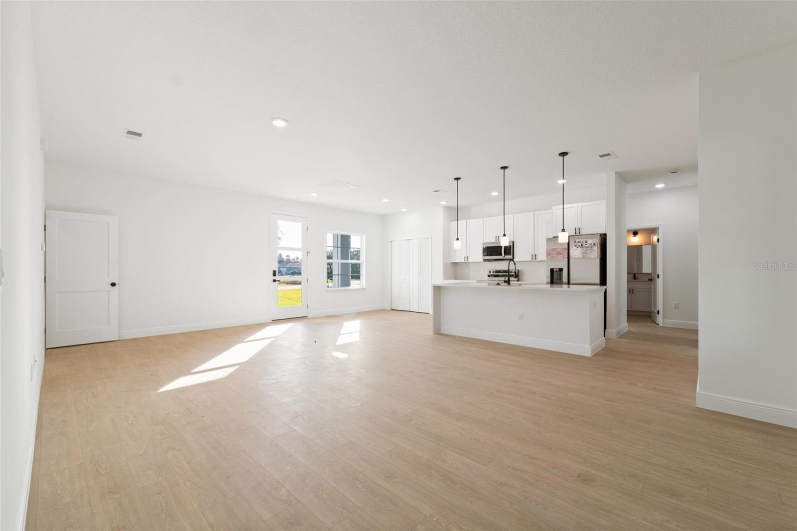 Modern New Construction Home in Prime Ocala Location Discover this stunning new construction home in the heart of Ocala, combining modern design with everyday comfort. Featuring 4 spacious bedrooms and 2 full bathrooms, this residence offers an ideal layout for families or those who love to entertain. The primary suite includes a luxurious walk-in closet, while the additional bedrooms feature built-in closets for ample storage. The open-concept floorplan creates a seamless flow between the living room and dining area, both filled with natural light and enhanced by sliding glass doors that open to a covered rear porch, perfect for relaxing or hosting gatherings year-round. The elegant kitchen showcases solid wood cabinets, stone countertops, and modern appliances—a beautiful and functional space for cooking and connection. A 2-car attached garage provides convenience and extra storage, while the home’s location adds tremendous value—situated near a main road for easy commuting and close to top-rated schools, shopping, and dining options. This home offers a blend of style, functionality, and location—an ideal choice for those seeking a fresh start in one of Ocala’s most desirable areas.