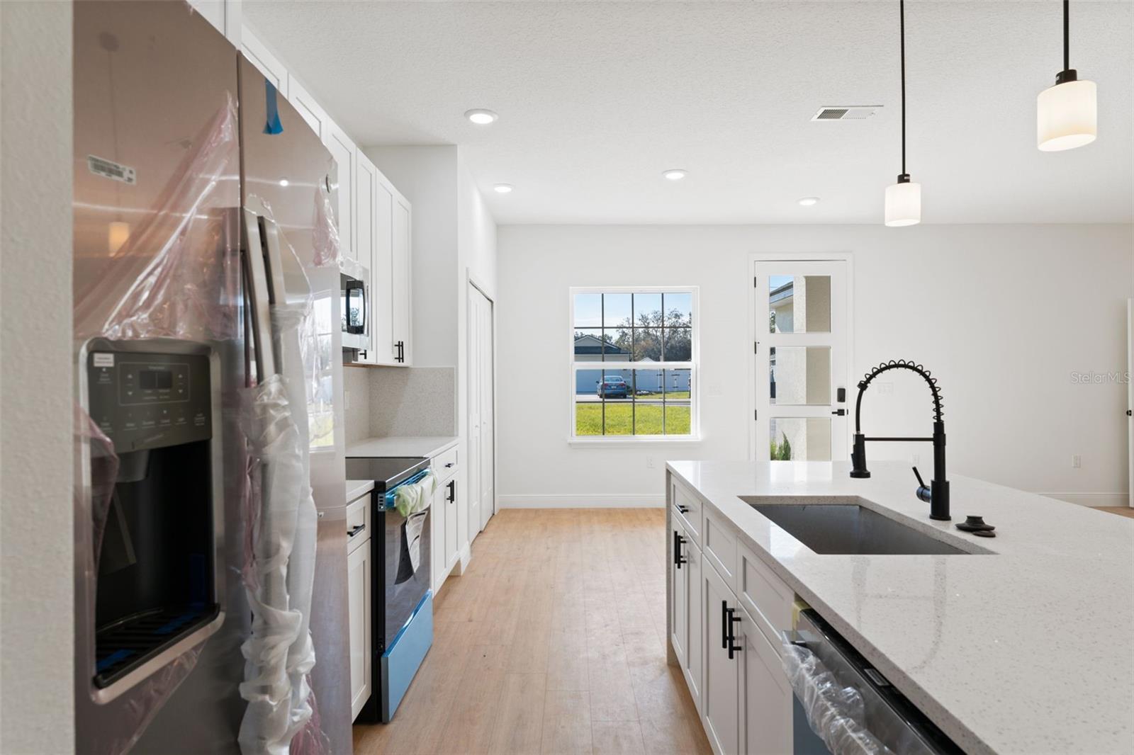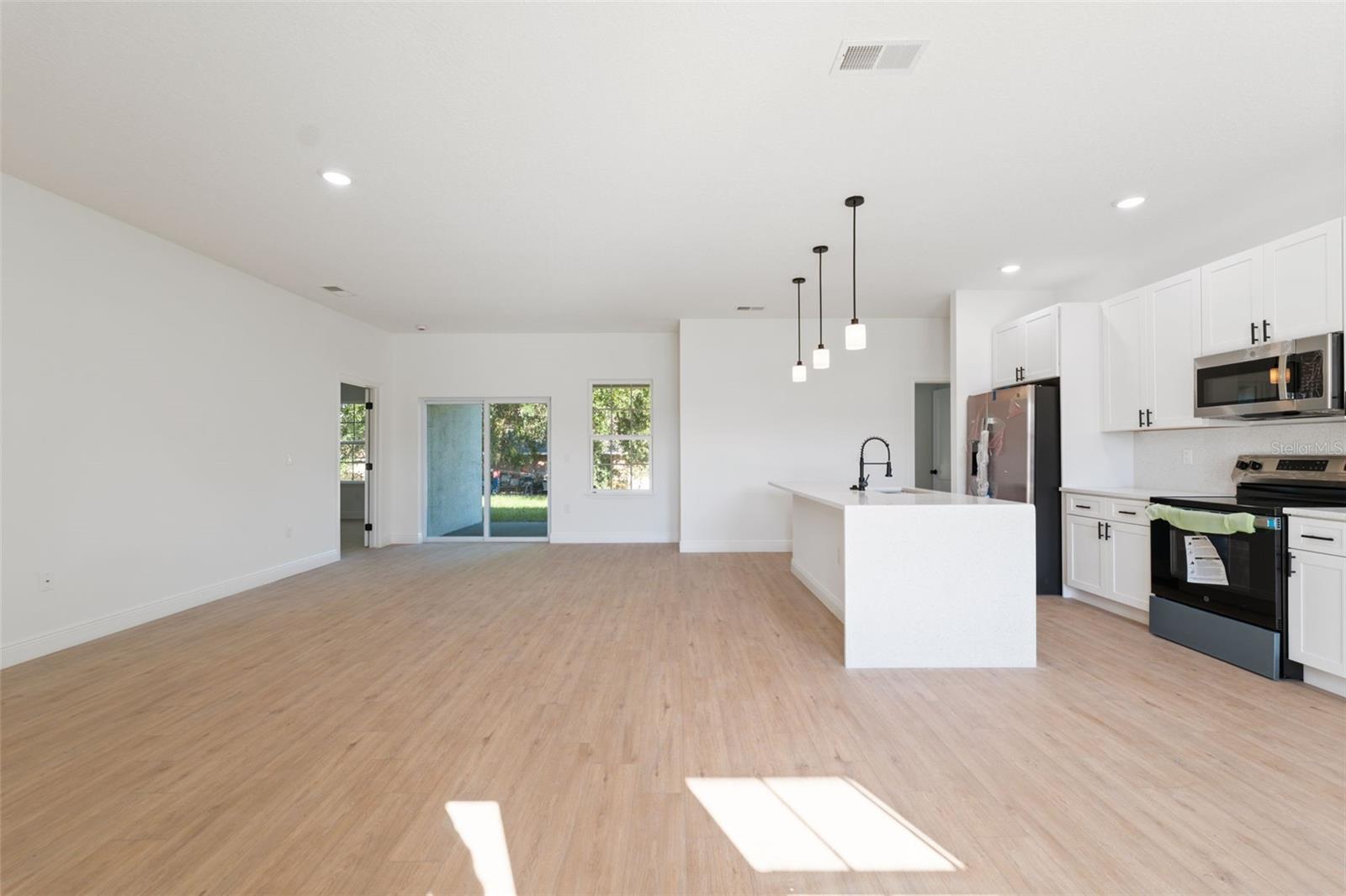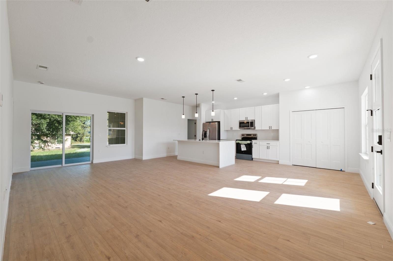 Modern New Construction Home in Prime Ocala Location Discover this stunning new construction home in the heart of Ocala, combining modern design with everyday comfort. Featuring 4 spacious bedrooms and 2 full bathrooms, this residence offers an ideal layout for families or those who love to entertain. The primary suite includes a luxurious walk-in closet, while the additional bedrooms feature built-in closets for ample storage. The open-concept floorplan creates a seamless flow between the living room and dining area, both filled with natural light and enhanced by sliding glass doors that open to a covered rear porch, perfect for relaxing or hosting gatherings year-round. The elegant kitchen showcases solid wood cabinets, stone countertops, and modern appliances—a beautiful and functional space for cooking and connection. A 2-car attached garage provides convenience and extra storage, while the home’s location adds tremendous value—situated near a main road for easy commuting and close to top-rated schools, shopping, and dining options. This home offers a blend of style, functionality, and location—an ideal choice for those seeking a fresh start in one of Ocala’s most desirable areas.