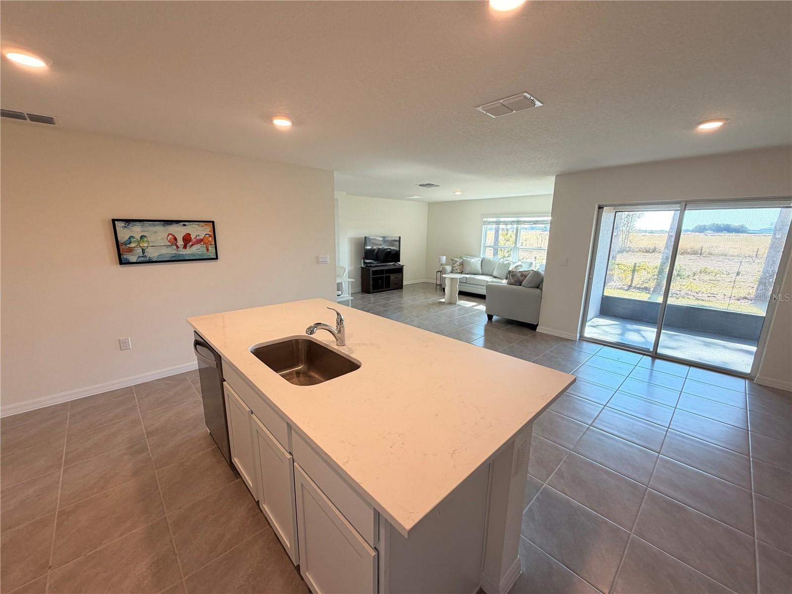 Discover this beautifully designed Cali floorplan home in the heart of Ocala, FL, offering 4 bedrooms and 2 bathrooms with modern finishes throughout. As you enter, an inviting foyer leads into a bright open-concept layout that seamlessly connects the spacious living room, dining area, and gourmet kitchen—perfect for everyday living and entertaining. The kitchen impresses with quartz countertops, sleek stainless-steel appliances, a walk-in pantry, and an oversized island with a breakfast bar. The social areas feature elegant ceramic flooring, while the bedrooms offer the comfort of cozy carpeting. The tranquil primary suite, located at the rear of the home, includes a private bathroom with dual sinks, a walk-in shower, and a generous walk-in closet, while three additional bedrooms provide flexibility for family, guests, or a home office. Completing this lovely home is a covered lanai, ideal for relaxing outdoors and enjoying Florida living at its best.