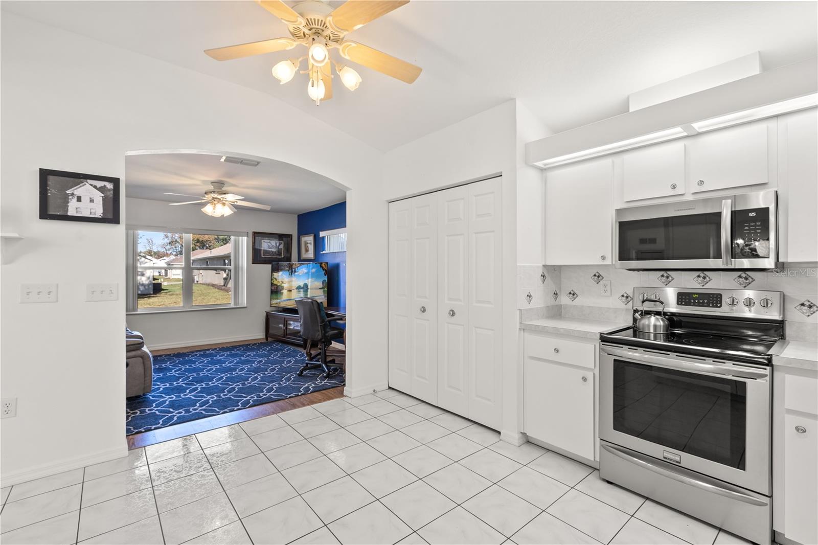 Discover the perfect blend of charm, comfort, and resort-style living in this beautifully maintained home, nestled within Oak Run’s premier gated 55+ community. From the moment you arrive, you’ll feel the ease of maintenance-free living paired with an active, social lifestyle designed for enjoyment. Inside, the home features an inviting open-concept floor plan with soaring ceilings and abundant natural light that creates a warm, welcoming atmosphere throughout. Elegant hardwood flooring flows seamlessly through the main living areas, complemented by tasteful accent walls that add character and charm. The bright, airy kitchen offers crisp cabinetry, stainless steel appliances, decorative tile backsplash, and generous counter space—perfect for both everyday living and entertaining. The spacious primary suite serves as a peaceful retreat with hardwood floors, dual windows filled with sunshine, and an updated en-suite bathroom featuring modern finishes. Additional flexible living spaces are ideal for guests, hobbies, or a home office. Outside, the expansive backyard is framed by mature oak trees and lush landscaping, providing privacy and a tranquil setting to relax and unwind. What truly sets this home apart is the Oak Run lifestyle. Just a short golf cart ride away, residents enjoy access to the Royal Oaks Golf Club, Palm Grove Clubhouse, and Orchid Club, offering endless opportunities for recreation and connection. Amenities include a championship golf course, on-site restaurant, two fully equipped fitness centers, six swimming pools (including one indoor), five hot tubs, tennis, pickleball, volleyball, horseshoes, bingo, dancing, card rooms, craft rooms, a library, and a dedicated dog park. With over 150 clubs and social groups, there’s truly something for everyone. The community service fees include a fully maintained lot with lawn care, watering, fertilization, flower bed maintenance, trash pickup, basic cable, 24-hour security, access to all amenities, and maintenance of common areas—allowing you to focus on enjoying life, not chores. Whether you prefer an active social calendar or a peaceful drive down Oak Run’s picturesque, tree-lined boulevards, this community offers the best of both worlds. This is your opportunity to enjoy resort-style, maintenance-free living in one of Ocala’s most sought-after 55+ communities. Don’t miss your chance to make this exceptional home—and lifestyle—your own.