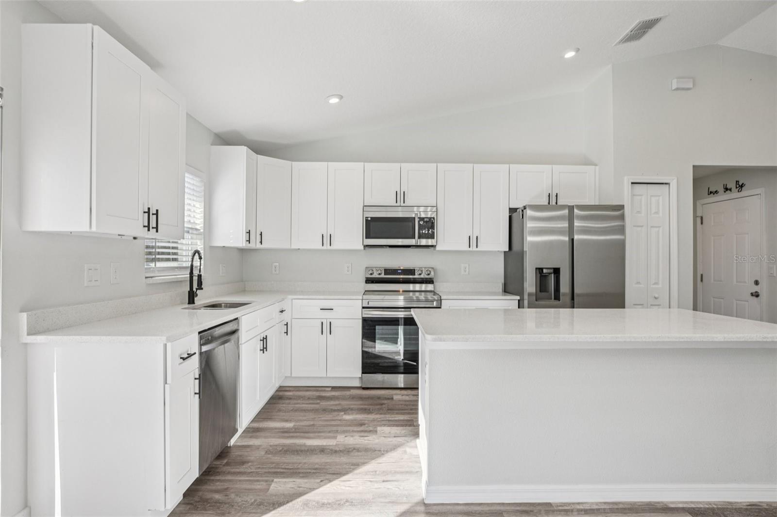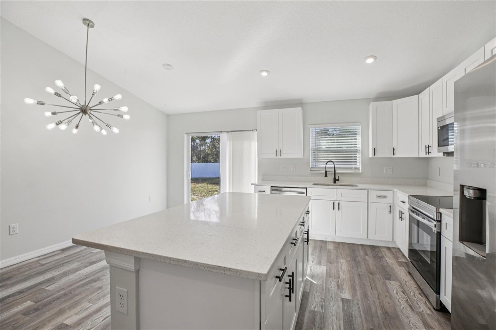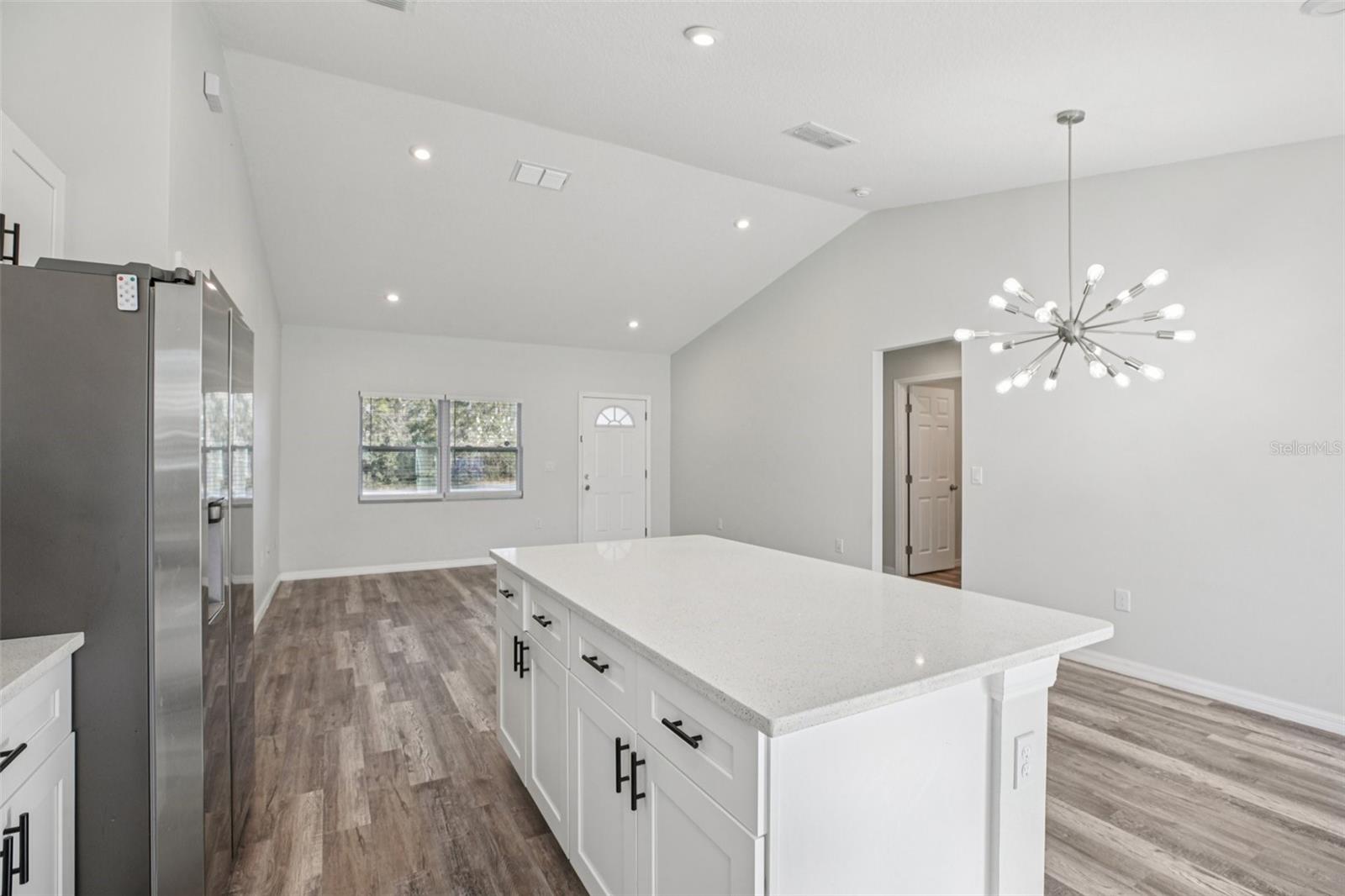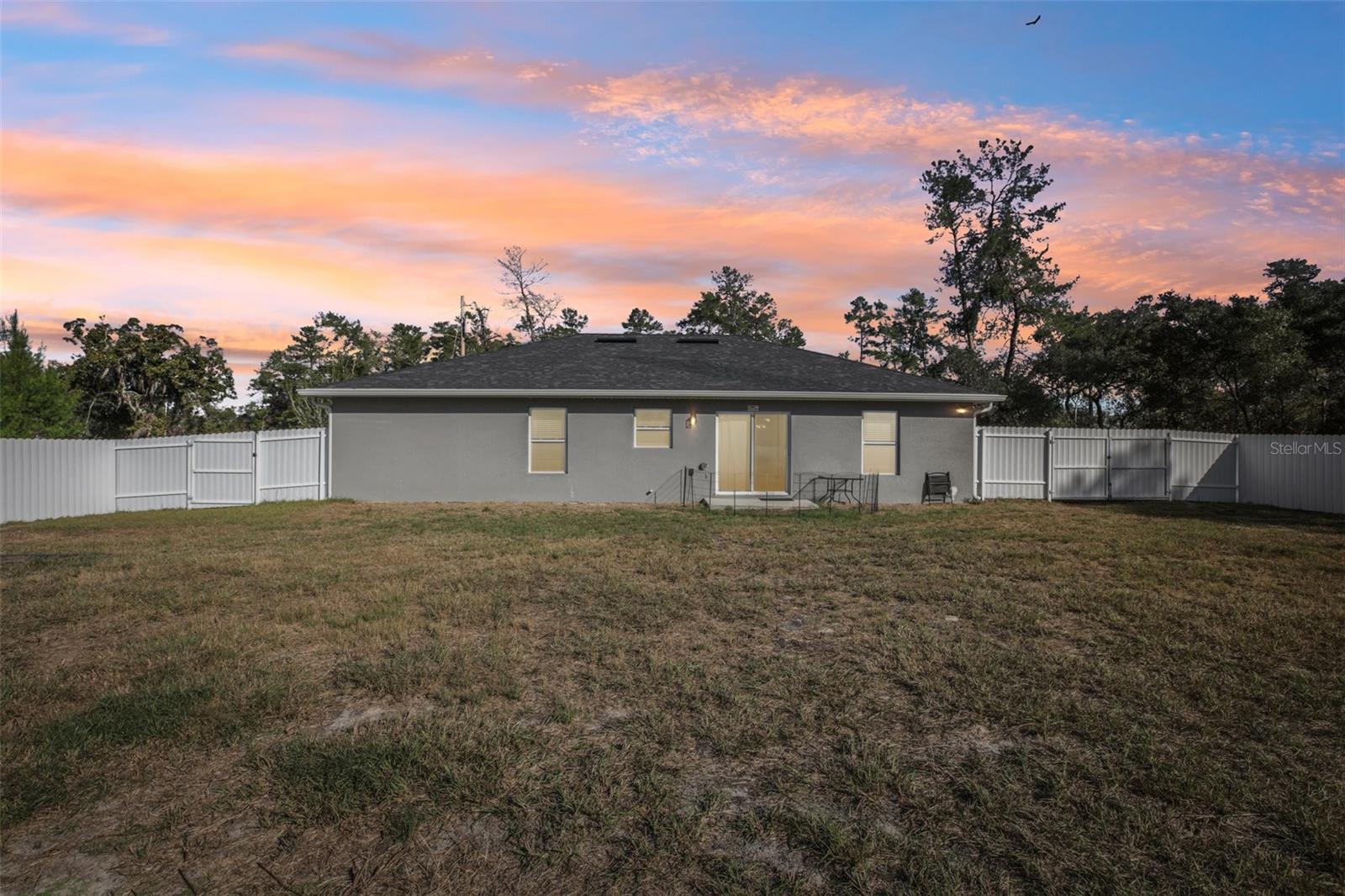 One or more photo(s) has been virtually staged. Welcome to this inviting single-family home located in the Marion Oaks community of Ocala, Florida. Offering 3 bedrooms, 2 bathrooms, and 1,368 square feet of living space, this home sits on over a quarter of an acre, providing plenty of room to enjoy both indoor and outdoor living. Upon entering, you are welcomed by an open floor plan that connects the living room, dining area, and kitchen, creating a comfortable and functional layout. The main living area features vaulted ceilings that enhance the sense of space and natural light. The kitchen is equipped with stainless steel appliances, a center island, and a sliding glass door off the dining area that leads directly to the backyard. The split-bedroom floor plan offers added privacy. The primary suite features an en suite bathroom with dual sinks and a beautifully tiled walk-in shower. Two additional bedrooms and a second full bathroom complete the interior layout. Step outside to the spacious, fully fenced backyard, where you’ll find a playground and an above-ground pool, along with ample space for outdoor activities. Conveniently located near golf courses, natural preserves, and with easy access to major highways, this home offers a great combination of comfort, space, and accessibility. Mortgage savings may be available for buyers of this listing.