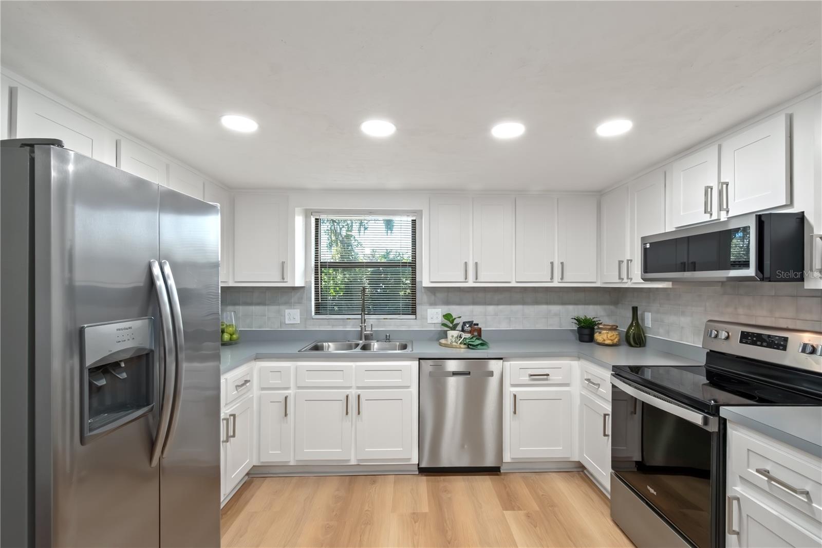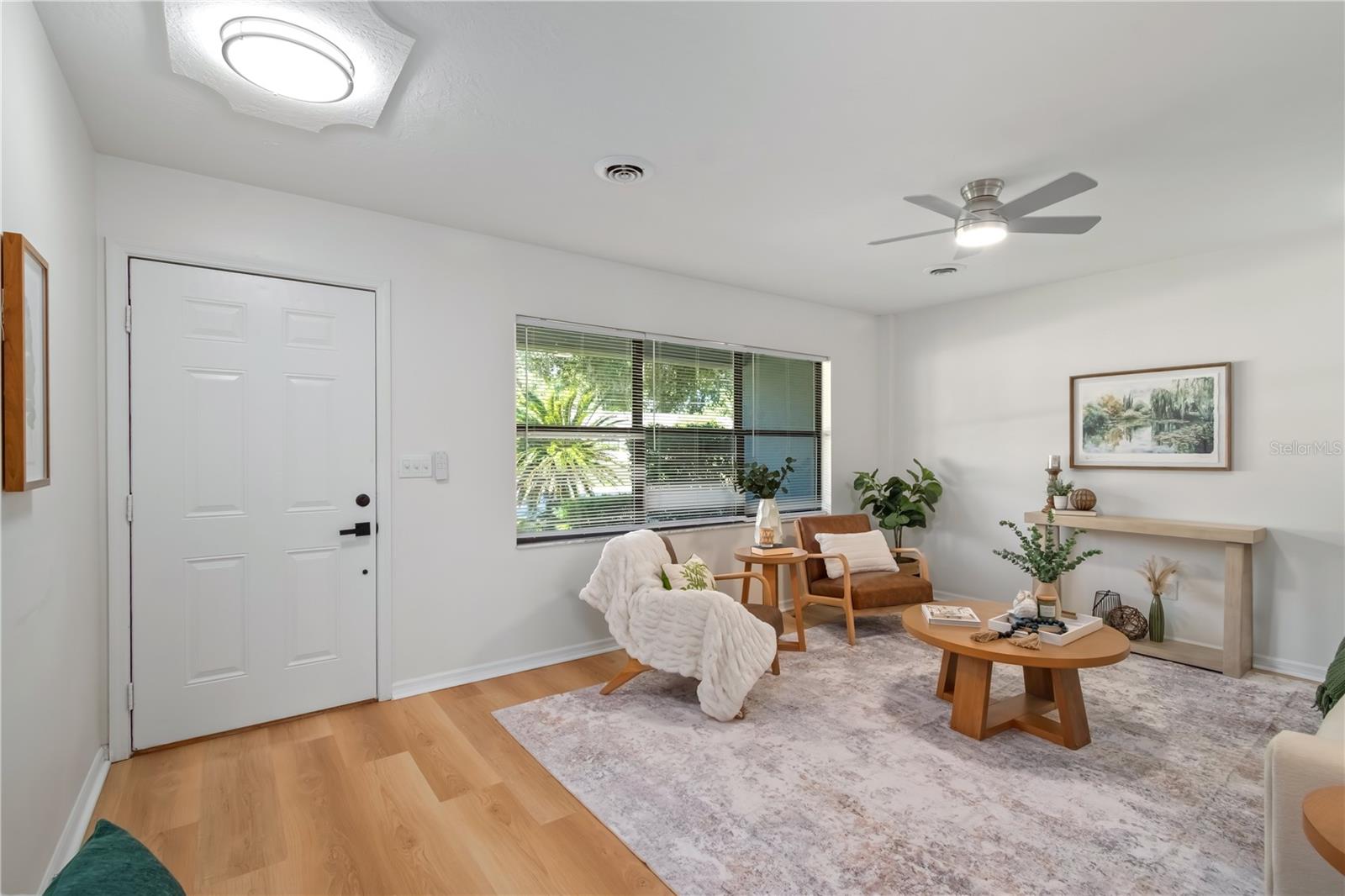 Welcome to this beautifully updated 3-bedroom, 2-bath single-family home with no HOA, offering both comfort and flexibility. The spacious front and backyard have been thoughtfully maintained and enhanced, creating the perfect setting for outdoor living and entertaining. Inside, brand-new luxury vinyl plank flooring runs throughout the home, delivering a clean, modern, and durable finish. The upgraded kitchen features bright white shaker cabinets and brand-new appliances, making it fully ready for everyday cooking and hosting. Both bathrooms have been refreshed with new vanities, sleek countertops, and stylish shower fixtures. Additional upgrades include new light fixtures in every room and new blinds on all windows, completing the home’s fresh, move-in-ready appeal. With quality updates throughout and the freedom of no HOA, this home is a perfect blend of style, comfort, and convenience—don’t miss the opportunity to make it yours.