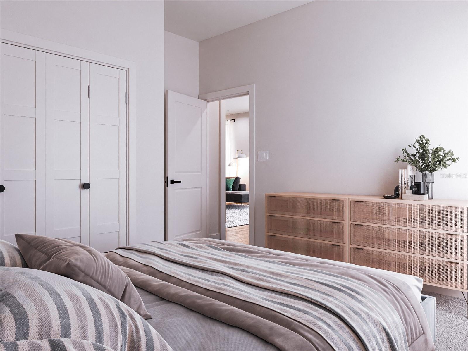 One or more photo(s) has been virtually staged. Welcome to this exceptional 2026 new construction home offering a rare combination of modern design and functional layout. Featuring 4 bedrooms, 3 bathrooms, and a highly desirable Junior Suite. The open-concept floor plan is bright and inviting, highlighted by wide-plank wood-look tile flooring throughout the main living areas. The chef-inspired kitchen showcases 42” upper cabinets, quartz countertops, stainless steel Samsung appliances, a large center island with undermount sink, and modern pendant lighting. The primary suite offers a frameless glass shower, floor-to-ceiling marble-look tile, dual-sink vanity, and a spacious walk-in closet. Additional bedrooms are generously sized and thoughtfully positioned for privacy. Enjoy outdoor living on the covered lanai with an upgraded wood-plank ceiling, overlooking a partial vinyl-fenced backyard on a 0.23-acre lot, offering ample space for pets, play, or a future pool. Additional highlights include a finished 2-car garage with sealed/epoxy-style flooring and garage door windows providing natural light. One or more photo(s) has been virtually staged.