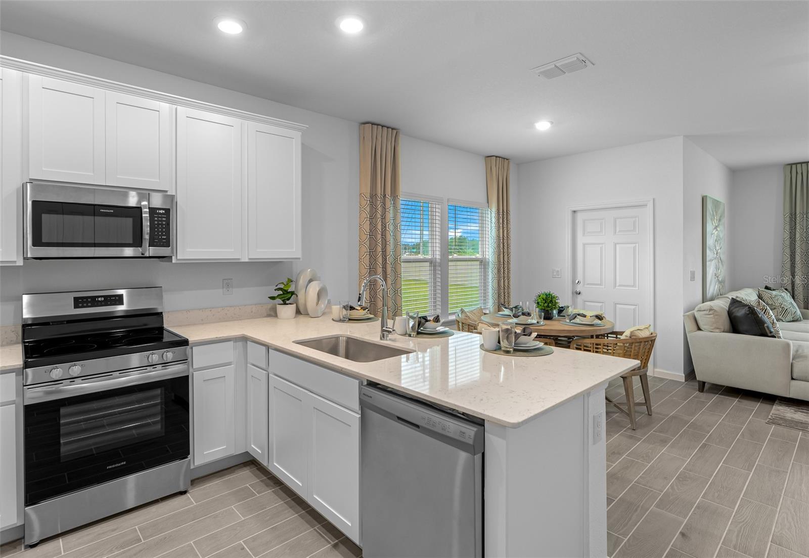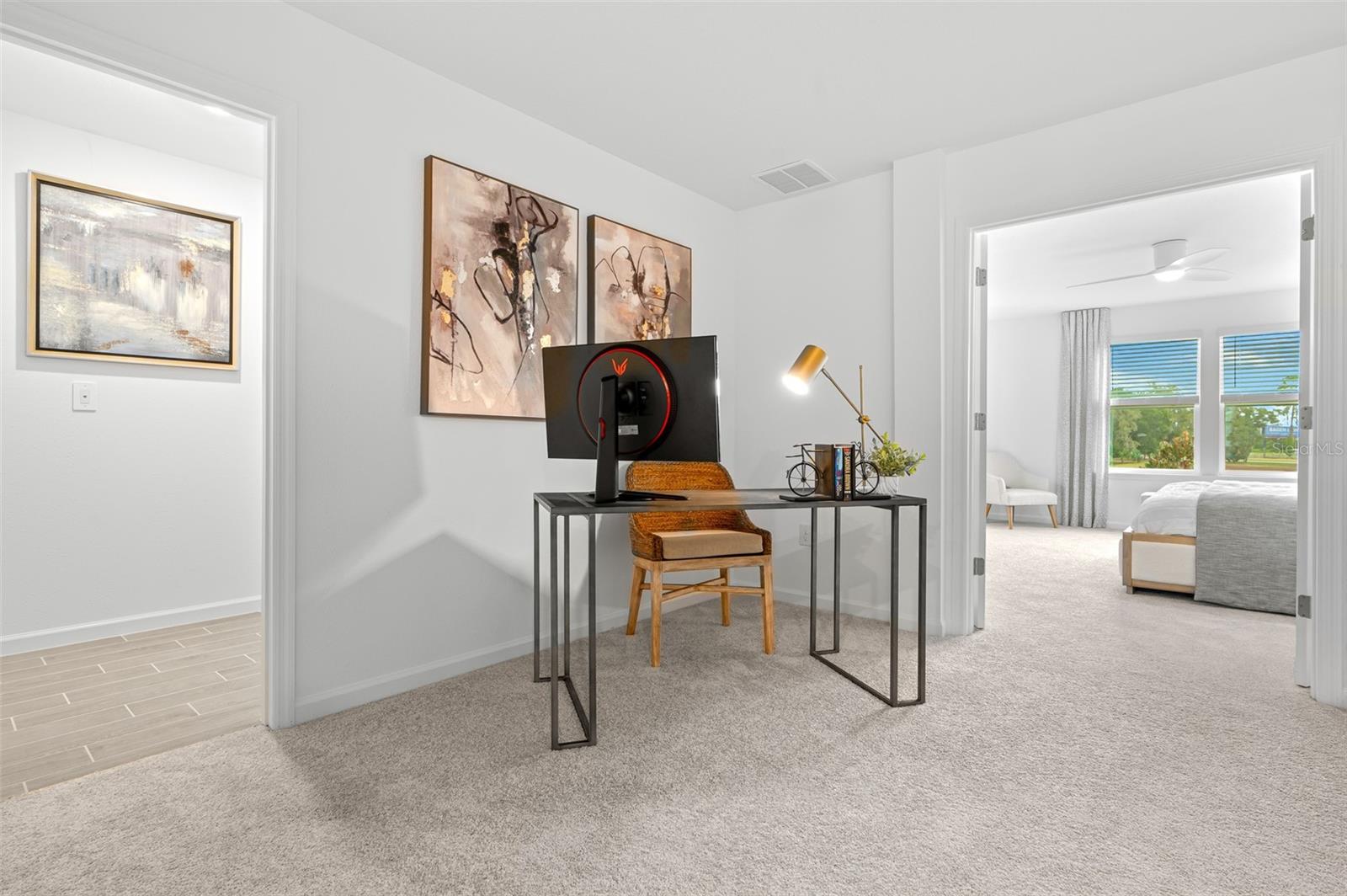 The kitchen, dining room and living room are arranged among a convenient and contemporary open-concept design on the first level of this two-story home, while a desirable covered lanai allows for indoor-outdoor living and entertaining. On the second floor is a loft for additional shared living space, the spacious owner’s suite and two secondary bedrooms with shared access to a full-sized bathroom.