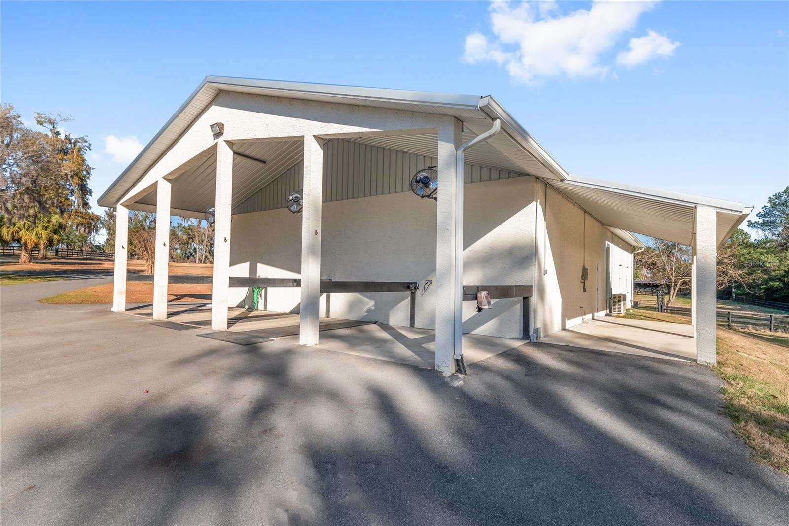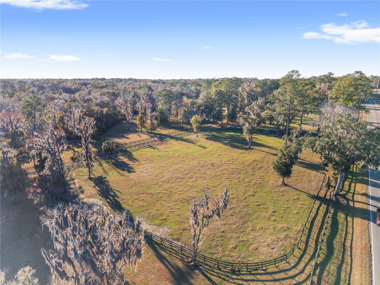Located within Ocala’s Farm Preservation Area and neighboring Bridlewood Farm, this exceptional 11.65-acre equestrian property is just minutes from the World Equestrian Center. Designed primarily for equestrian use, the offering consists of two parcels (10 acres + 1.65 acres) and features high, dry land; ideal for long-term agricultural and equestrian use. The property is anchored by a new concrete block 12-stall barn with 12x12 stalls, high ceilings, excellent ventilation, rubber mats, fans in every stall, automatic waterers, fly spray system, cement aisle, and dedicated feed and tack rooms. The barn measures approximately 108’ x 42’ with a metal roof and an efficient layout built for long-term use and expansion. A 62’ x 42’ multi-use building, previously used as an equine rehabilitation facility, is set up to support a treadmill and saltwater spa, and includes general storage with a half bath plus a separate apartment with full kitchen and full bath. Mini-split A/C systems serve both sides, totaling approximately 1,000± sq ft of finished space. The property also includes a new 2-bedroom, 2-bath mobile home (~900 sq ft) with its own private entrance. Multiple large paddocks, mature trees, extensive fencing, two wells, two septic systems, and several additional storage sheds complete the setup. With ample space to add an arena, expand facilities, or build a custom estate home, this is a truly versatile equestrian property ready to grow into something special.