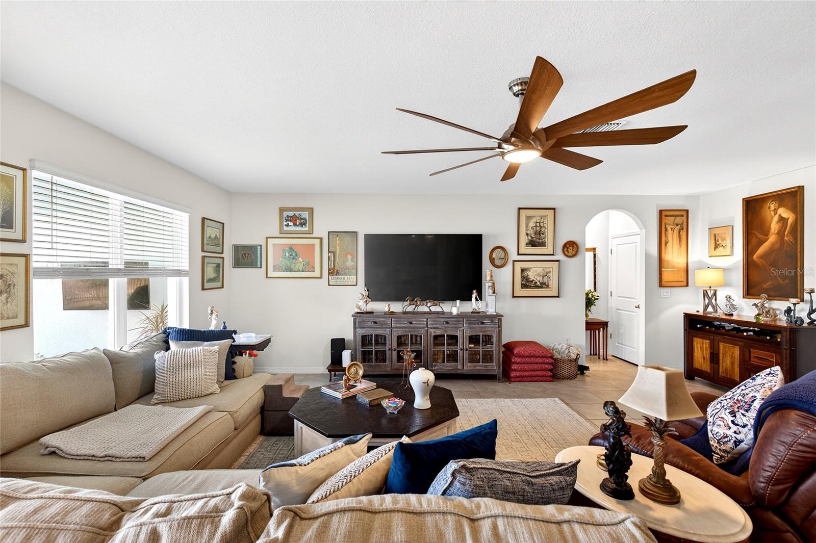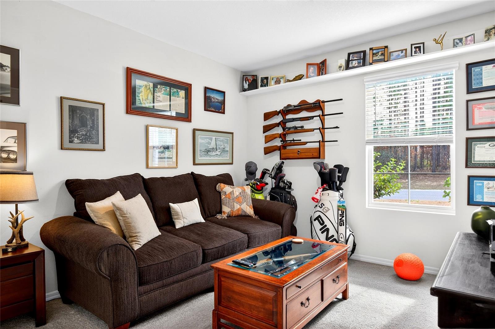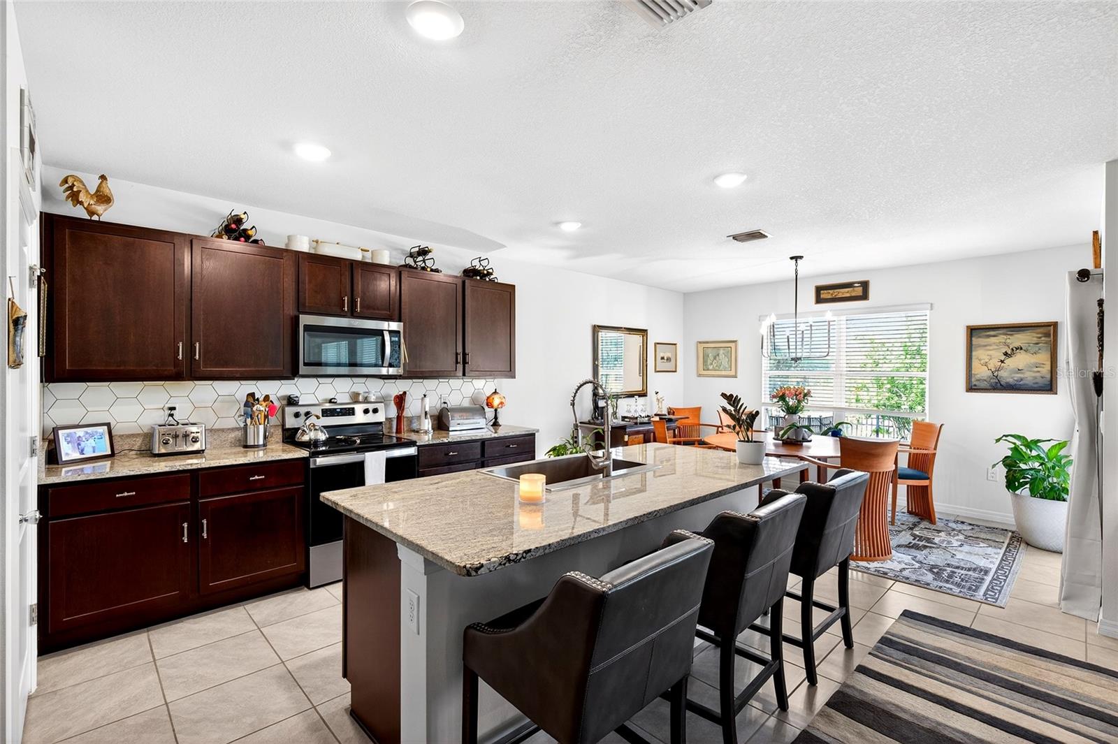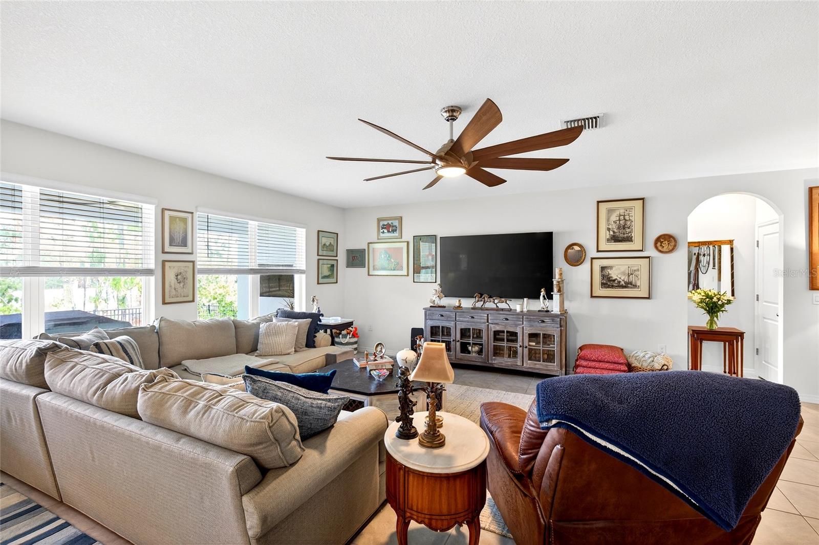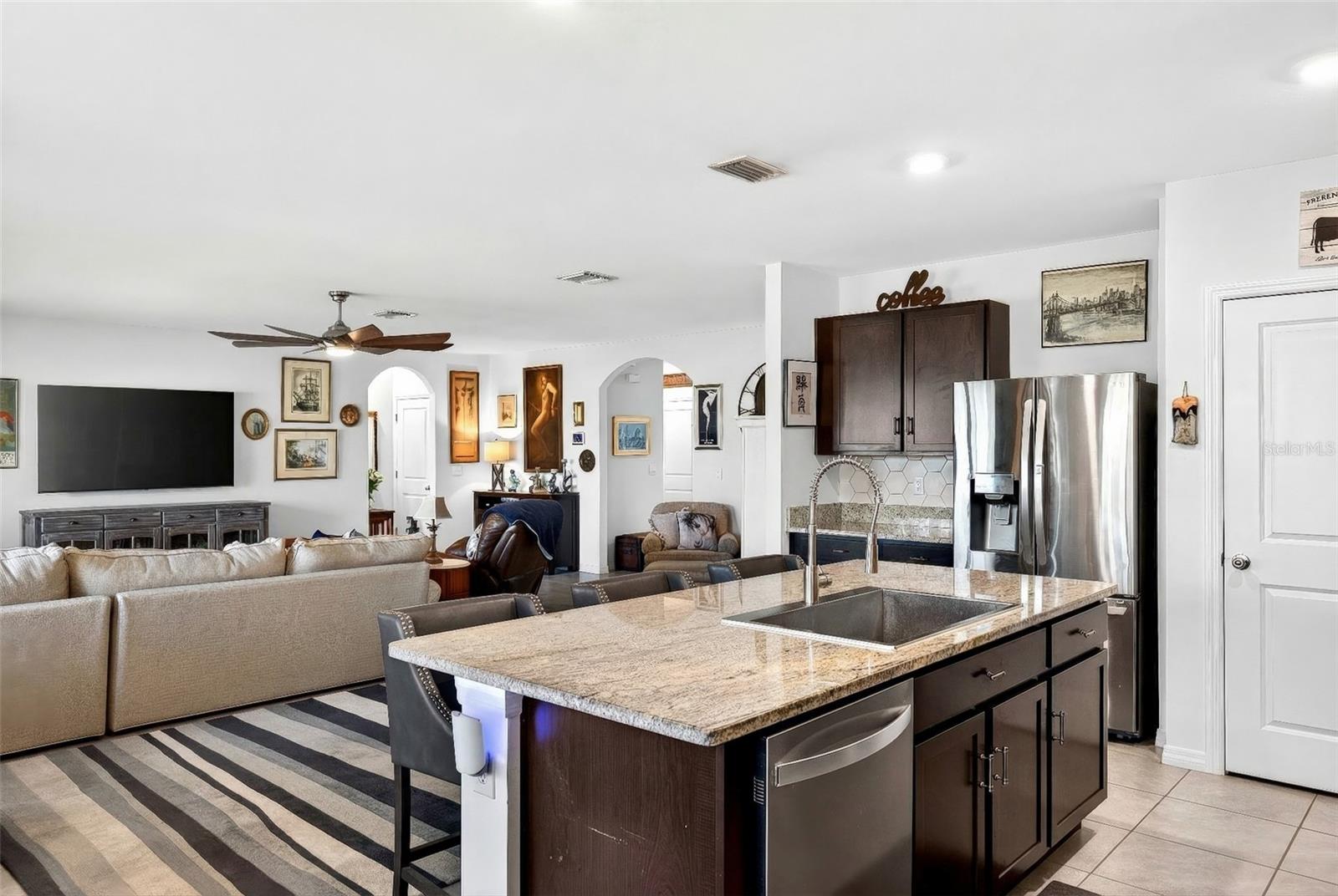 One or more photo(s) has been virtually staged. DR HORTON DENTON MODEL ON THE LAKE DIAMOND GOLF COURSE WITH FENCED IN BACKYARD AND 50 AMP RV HOOK UP! LOADS OF UPGRADES IN THIS HOME SEPARATING IT FROM THE COMPETITION SUCH AS WHOLE HOME ALL NEW CEILING FANS AND LIGHTING, HYBRID HOT WATER HEATER, SOLAR PANELS ON THE ROOF, EXPANDABLE WALL ELECTRIC TESLA CAR CHARGING STATION, CUSTOM BACKSPLASH IN KITCHEN AND FRENCH DOORS LEADING TO COVERED LANAI. THIS 4 BEDROOM PLAN HAS IT ALL AND IS ON THE GOLF COURSE! STEP INSIDE THE HOME AND TO LEFT IS 3 SPACIOUS BEDROOMS, INSIDE LAUNDRY ROOM WITH STORAGE SHELVING AND THE 2ND BATH WITH GRANITE TOP VANITY AND COMBO TUB/SHOWER. ACROSS FROM THIS AREA IS THE CAR GARAGE HOME TO THE CHARGING STATION. WALKING TOWARDS FOCAL POINT OF THIS OPEN FLOOR PLAN IS LARGE LIVING ROOM WITH MOUNTED TV THAT STAYS WITH THE HOME. POSITIONED BEHIND THE LIVING ROOM IS THE PRIVATE AND SPACIOUS PRIMARY BEDROOM WITH CUSTOM WALK IN CLOSET AND PRIMARY FEATURING WALK IN SHOWER WITH GLASS DOOR AND DOUBLE GRANITE TOP VANITY. THE LIVING ROOM OVERLOOKS THE INVITING KITCHEN WITH SOFT CLOSE CABINET DOORS, PULL OUTS FOR EASY ACCESS AND DRAWERS, COFFEE BUTLER AREA, ISLAND WITH UPGRADED SINK AND FAUCET AND STAINLESS STEEL APPLIANCES, GRANITE COUNTERTOPS AND BACKSPLASH. DINING AREA CURRENTLY A READING AREA. KITCHEN HAS AN ADDITIONAL AREA FOR DINING SET UP AS A BREAKFAST AREA LEADING TO UPGRADED FRENCH DOORS TO COVERED LANAI WITH ANOTHER MOUNTED TV THAT STAYS. THE LANAI OVERLOOKS THE FENCED IN YARD, GREEN SPACE AND GOLF COURSE. LOW HOA OF $56/MONTH. SOLAR PANELS ALLOW NO POWER BILLS AND ALLOW YOU TO SELL POWER BACK TO DUKE. 4 ADDITIONAL PANELS WERE ADDED FOR GOLF CART AND ELECTRIC CAR FOR PLENTY OF CHARGE! ASK FOR DETAILS!