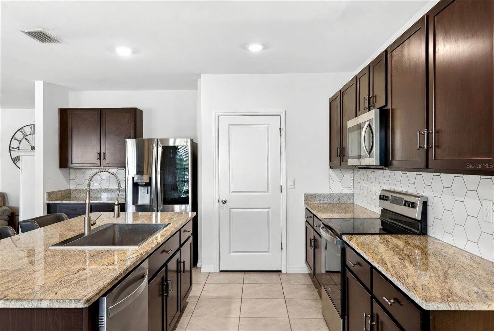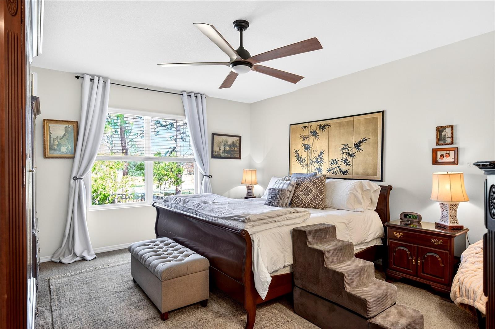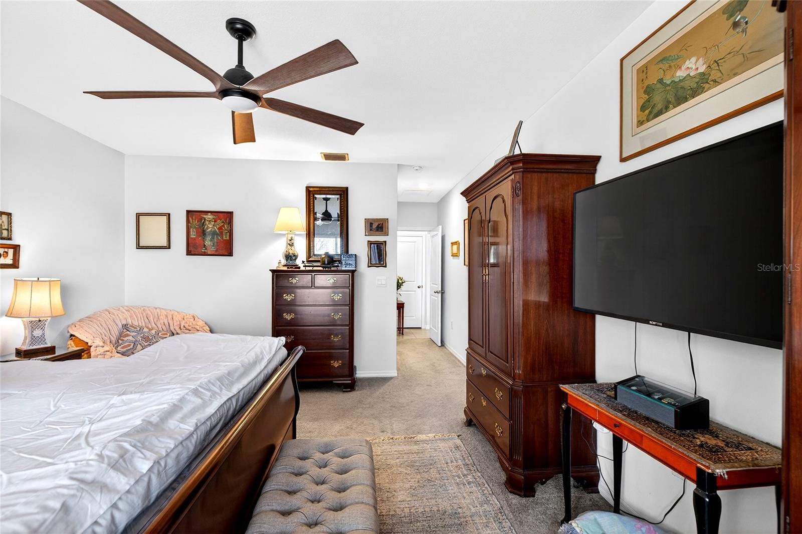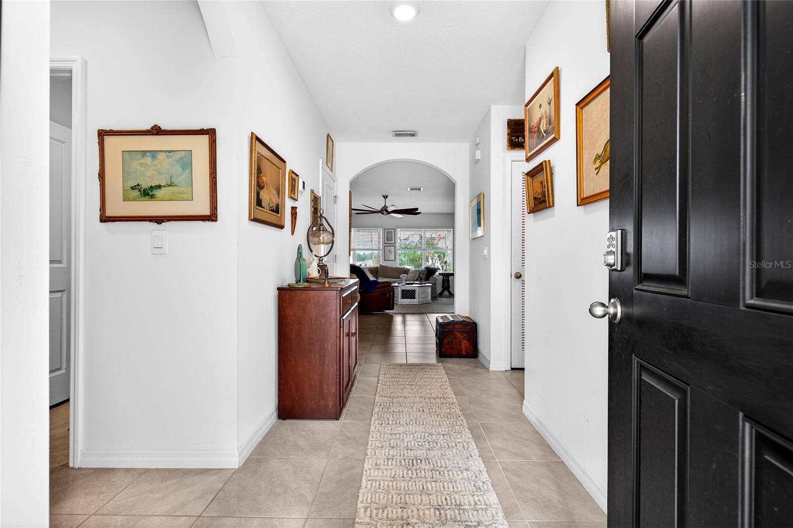 One or more photo(s) has been virtually staged. DR HORTON DENTON MODEL ON THE LAKE DIAMOND GOLF COURSE WITH FENCED IN BACKYARD AND 50 AMP RV HOOK UP! LOADS OF UPGRADES IN THIS HOME SEPARATING IT FROM THE COMPETITION SUCH AS WHOLE HOME ALL NEW CEILING FANS AND LIGHTING, HYBRID HOT WATER HEATER, SOLAR PANELS ON THE ROOF, EXPANDABLE WALL ELECTRIC TESLA CAR CHARGING STATION, CUSTOM BACKSPLASH IN KITCHEN AND FRENCH DOORS LEADING TO COVERED LANAI. THIS 4 BEDROOM PLAN HAS IT ALL AND IS ON THE GOLF COURSE! STEP INSIDE THE HOME AND TO LEFT IS 3 SPACIOUS BEDROOMS, INSIDE LAUNDRY ROOM WITH STORAGE SHELVING AND THE 2ND BATH WITH GRANITE TOP VANITY AND COMBO TUB/SHOWER. ACROSS FROM THIS AREA IS THE CAR GARAGE HOME TO THE CHARGING STATION. WALKING TOWARDS FOCAL POINT OF THIS OPEN FLOOR PLAN IS LARGE LIVING ROOM WITH MOUNTED TV THAT STAYS WITH THE HOME. POSITIONED BEHIND THE LIVING ROOM IS THE PRIVATE AND SPACIOUS PRIMARY BEDROOM WITH CUSTOM WALK IN CLOSET AND PRIMARY FEATURING WALK IN SHOWER WITH GLASS DOOR AND DOUBLE GRANITE TOP VANITY. THE LIVING ROOM OVERLOOKS THE INVITING KITCHEN WITH SOFT CLOSE CABINET DOORS, PULL OUTS FOR EASY ACCESS AND DRAWERS, COFFEE BUTLER AREA, ISLAND WITH UPGRADED SINK AND FAUCET AND STAINLESS STEEL APPLIANCES, GRANITE COUNTERTOPS AND BACKSPLASH. DINING AREA CURRENTLY A READING AREA. KITCHEN HAS AN ADDITIONAL AREA FOR DINING SET UP AS A BREAKFAST AREA LEADING TO UPGRADED FRENCH DOORS TO COVERED LANAI WITH ANOTHER MOUNTED TV THAT STAYS. THE LANAI OVERLOOKS THE FENCED IN YARD, GREEN SPACE AND GOLF COURSE. LOW HOA OF $56/MONTH. SOLAR PANELS ALLOW NO POWER BILLS AND ALLOW YOU TO SELL POWER BACK TO DUKE. 4 ADDITIONAL PANELS WERE ADDED FOR GOLF CART AND ELECTRIC CAR FOR PLENTY OF CHARGE! ASK FOR DETAILS!