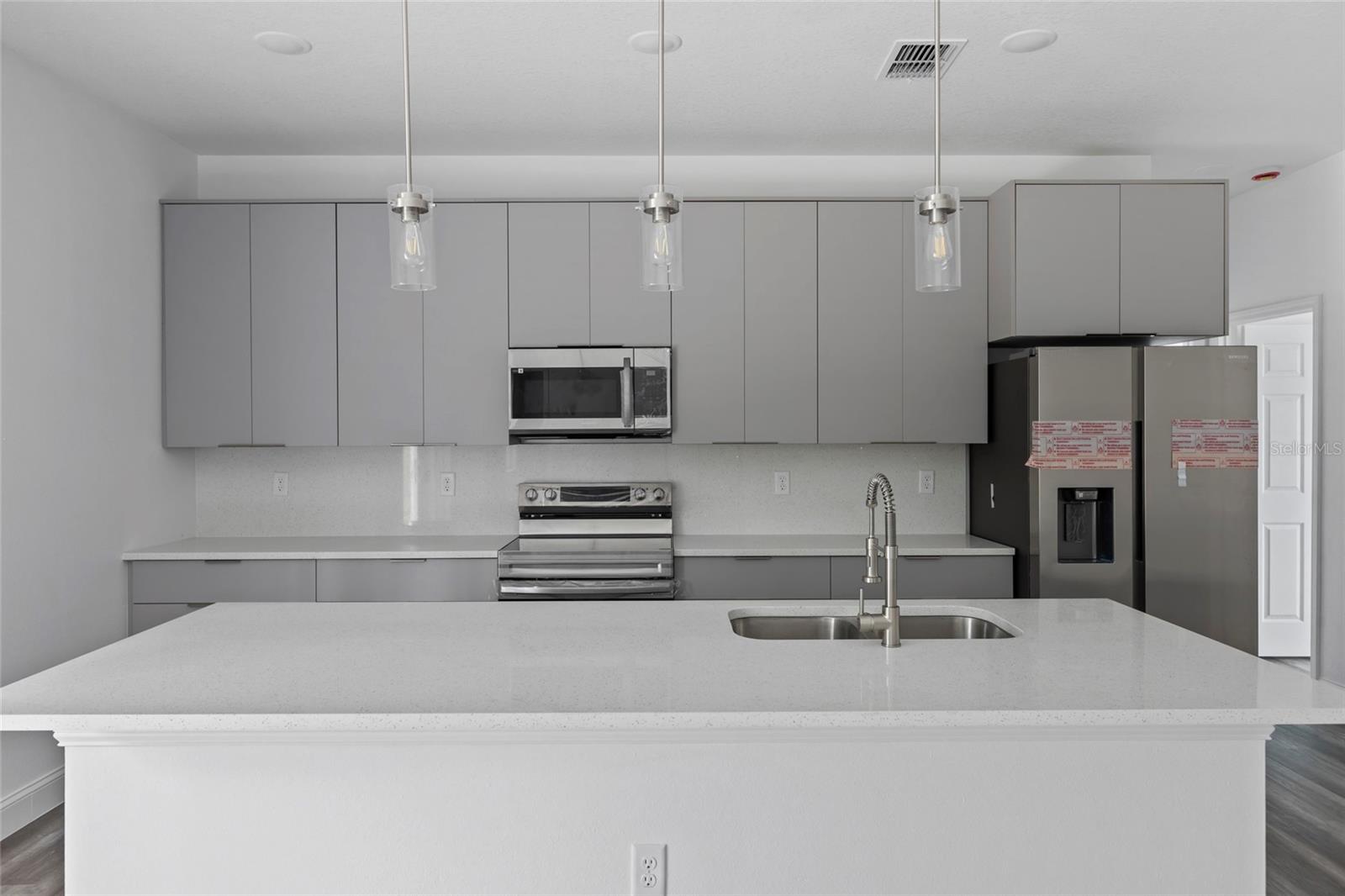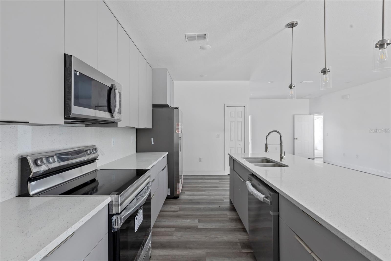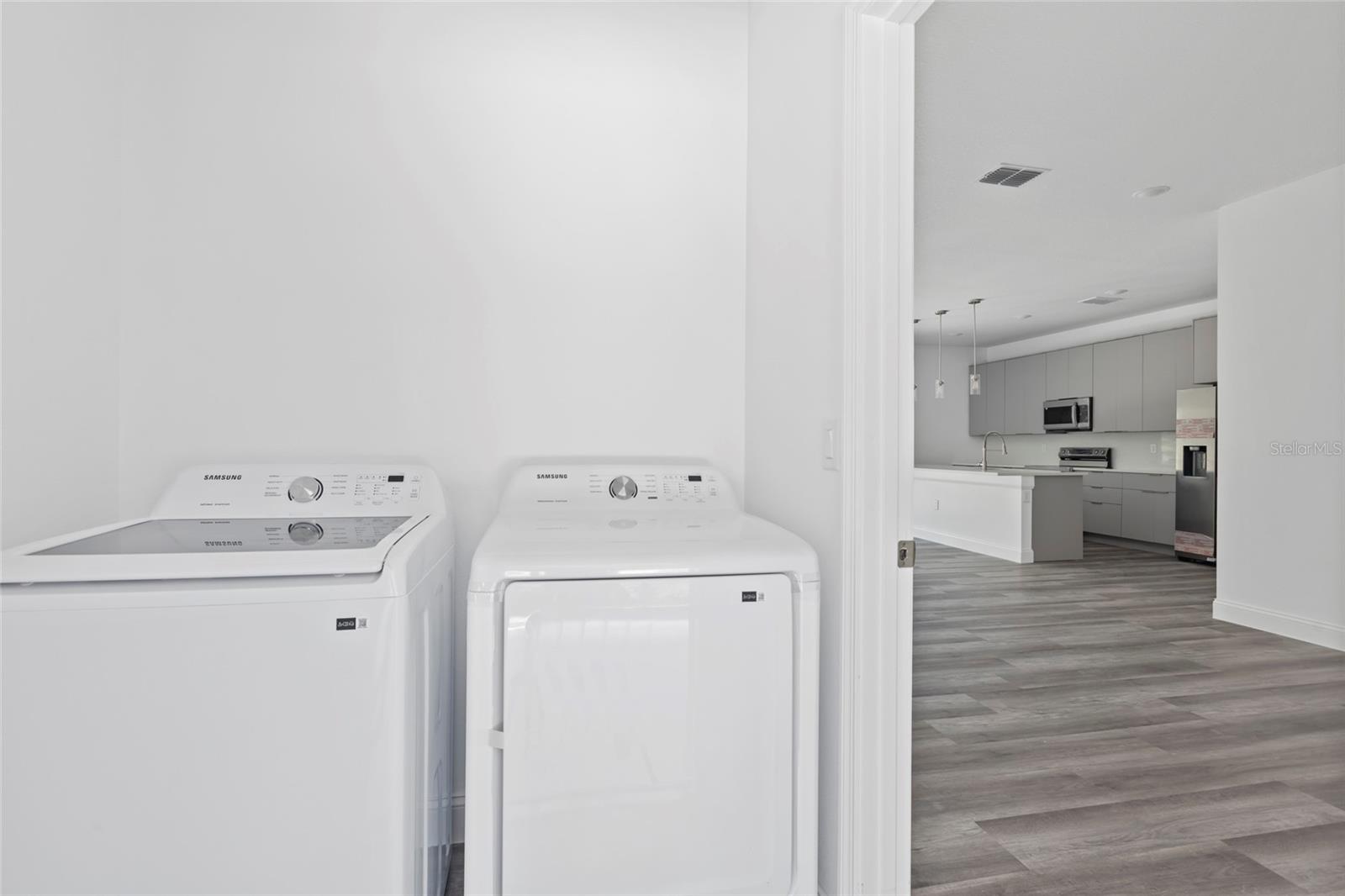 Your Brand New Dream Home in Ocala – Where Modern Quality Meets Affordability. This newly built offers the perfect balance of sophistication and comfort. Thoughtfully designed, it’s ideal for those seeking quality living at a great value. Four spacious bedrooms and 2 full bathrooms provide room for your family to grow. Open-concept living area seamlessly connected to a modern kitchen – perfect for entertaining. Gourmet kitchen equipped with top-of-the-line Samsung appliances: double-door fridge, stove, microwave, dishwasher, washer, and dryer – all included! High-quality finishes with soft-close cabinets, beautiful quartz countertops and backsplash with a large kitchen island. Durable vinyl flooring throughout, mimicking wood for a warm feel with easy maintenance. Master suite with double sinks, premium cabinetry, and elegant fixtures. Two-car garage with an automatic door. Built to last with premium materials and 2 year mechanical and 10 year structural warranties, this home ensures both comfort and a smart investment for the future. Whether you're looking to live in or invest, this is one of the best value homes in the market. Ask for Seller incentives.