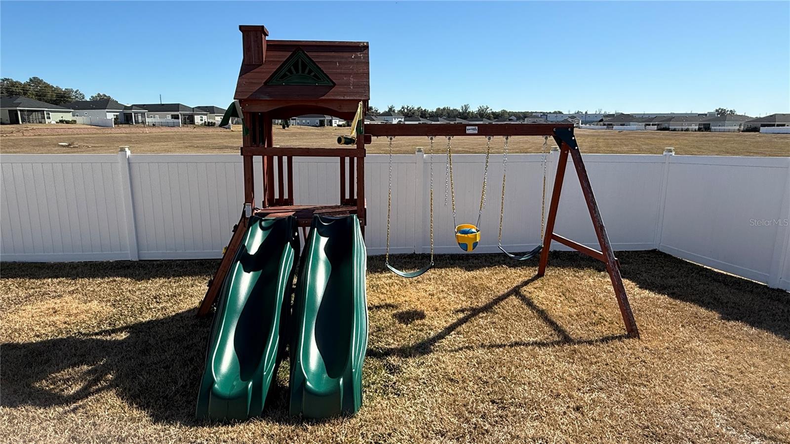 Welcome to an immaculate, well-maintained, and truly move-in-ready home—this 2023 Brio model by Lennar in Heath Preserve checks every box and then some. Perfectly positioned with no neighbors directly behind, this two-story residence blends modern design, thoughtful upgrades, and everyday comfort into one standout opportunity. From the moment you arrive, curb appeal sets the tone. Lush landscaping, a personal palm tree, and an oversized, extended paver driveway provide both style and ample parking. Step onto the inviting front porch and into an open-concept layout designed for today’s lifestyle. Just inside, a dedicated home office sits conveniently to the right—ideal for remote work, study, or a quiet retreat. A half bath on the main level adds everyday convenience for guests. The heart of the home opens up into a spacious living and dining area, perfect for entertaining, celebrations, and gatherings big or small. The kitchen is both stylish and functional, featuring quartz countertops, stainless steel appliances, a custom backsplash, and a walk-in pantry. The oversized island comfortably seats 3–4 and overlooks the dining area and living room, keeping everyone connected. This home includes Lennar’s sought-after Classic Series upgrades, showcasing wood-look tile flooring, crown molding in the kitchen, paver accents, blinds throughout, and a covered and screened-in lanai. French doors from the dining area lead seamlessly outdoors, where custom pavers extend the living space and create a perfect setting for morning coffee or evening relaxation. The fully fenced backyard offers privacy and peace of mind with a 6-foot vinyl fence topped with lighted caps. A built-in playset is already in place, making this backyard ideal for energetic children or future outdoor fun—with plenty of room to personalize the space. Upstairs, all bedrooms and the laundry room are thoughtfully arranged for convenience. The spacious primary suite serves as a private retreat, complete with a large walk-in closet and a beautifully appointed ensuite bath featuring 42-inch double vanities, a relaxing garden tub, and a tiled shower with glass surround. Additional bedrooms are generously sized and share a second full bath with a tiled tub/shower combo. Heath Preserve continues to add value with a new community pool coming soon and a low annual HOA of just $555 per year. Located close to shopping, dining, schools, and everyday conveniences, this home offers the perfect balance of modern upgrades, smart design, and an easy Florida lifestyle. This is more than a house—it’s a fresh start, beautifully done, and ready to welcome its next chapter.