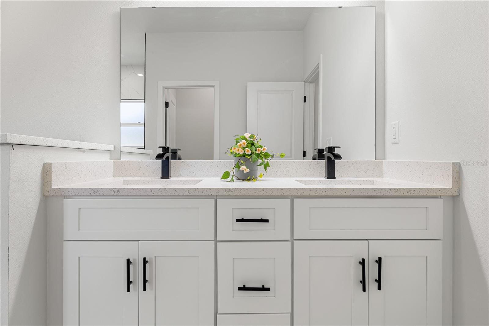 PAVER DRIVEWAY. This beautifully designed Arpoador model features 4 spacious bedrooms, 3 full bathrooms, and 1,892 sq ft of heated living space, with a total construction area of 2,333 sq ft. The home is finished with SLEEK DARK FIXTURES AND ACCENTS, giving it a clean, modern aesthetic throughout. The open-concept kitchen is a showstopper with a WATERFALL QUARTZ ISLAND and comes fully equipped with stainless steel appliances—refrigerator, range, microwave, dishwasher, and disposal. The luxurious owner’s suite offers a STANDALONE TUB, glass-enclosed SHOWER DOOR, and dual vanities. Additional highlights include a SMART KEY entry system, double car garage, covered entry, and a 2-10 HOME WARRANTY for added peace of mind. Don’t miss this opportunity—schedule your private showing today!