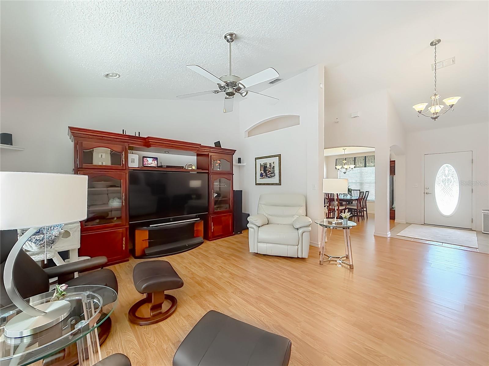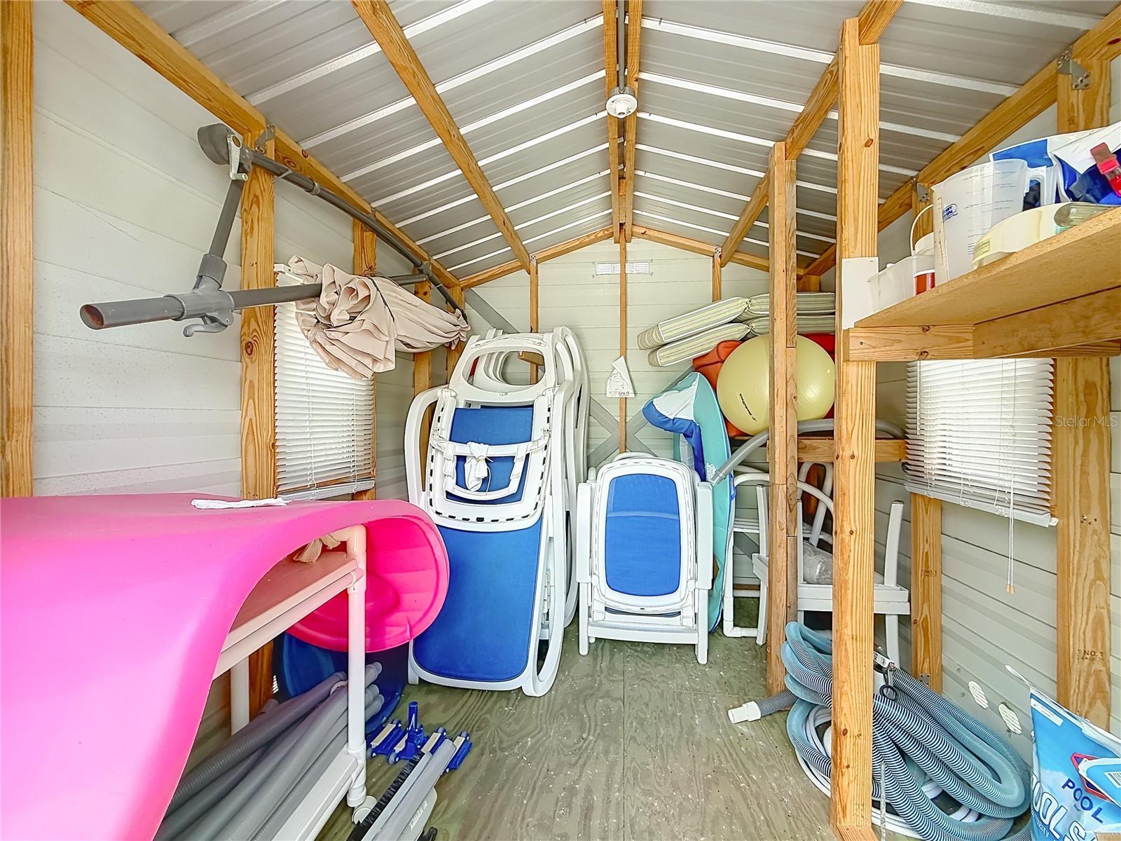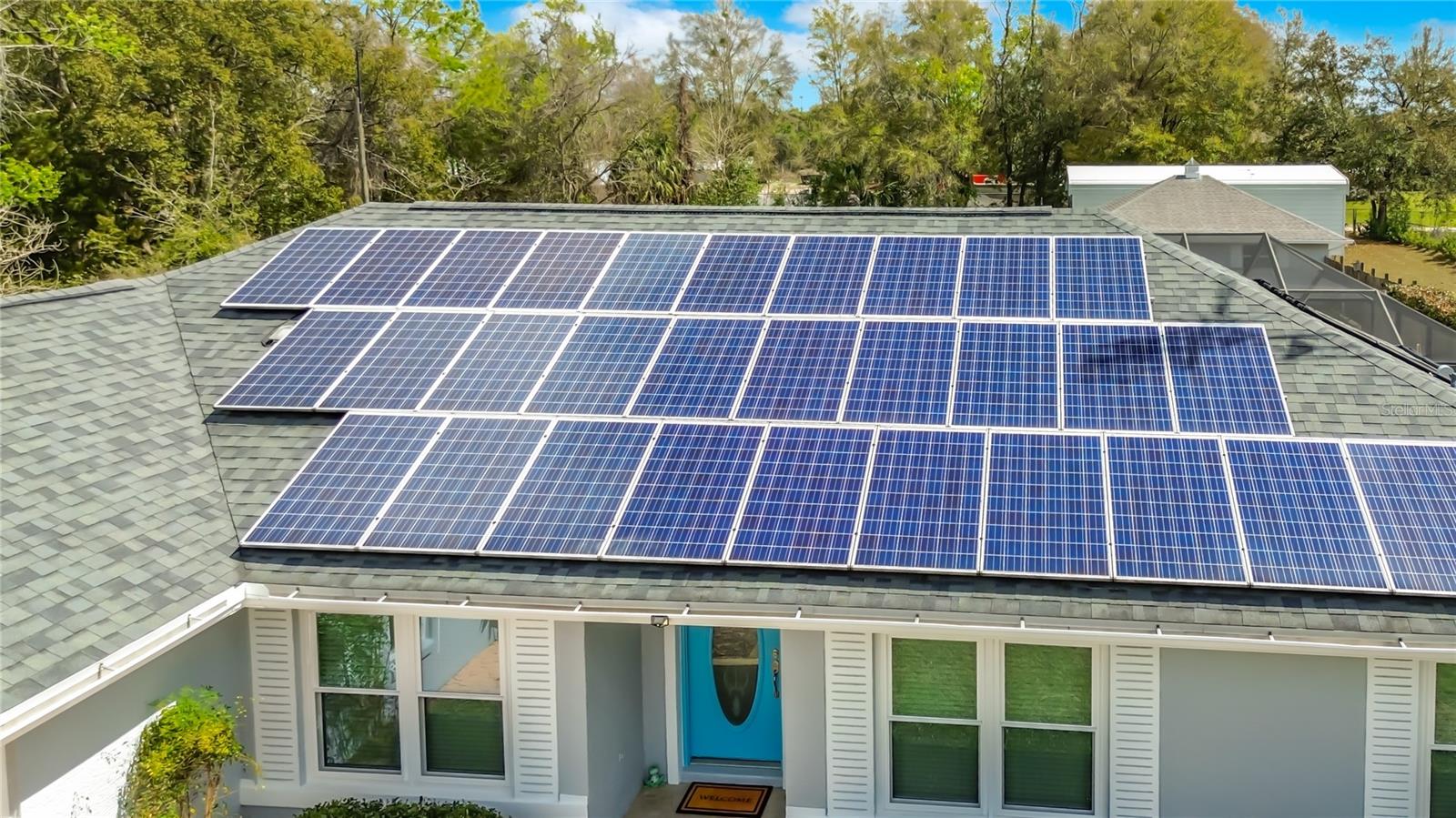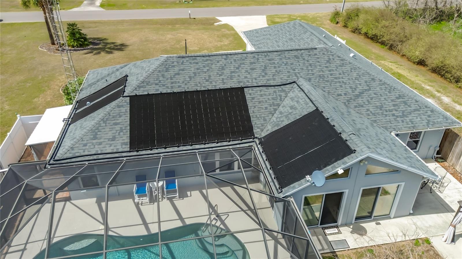 On this beautiful one-acre NO HOA property, in addition to the well-designed custom-built pool home, are Three Outbuildings!!! (1) Full size two car enclosed garage built with concrete blocks and well insulated, currently used as a workshop; (1) Tall RV carport; (1) small carport. On the property is a backup 20 KW commercial grade diesel generator fueled by a 200-gallon tank and a smaller 30-gallon tank. There is a chain link fence fully enclosing the backyard. The home was just painted this year. The home features a split floor plan, large eat in kitchen with pantry, whole house water softener system, built in vacuum system, the primary bedroom is ensuite with a large walk-in closet with 36” doorways; and all new windows in 2024! The caged Salt and Solar heated pool have newer systems in place. When not playing in the pool, you will appreciate the inviting Florida room for relaxing and enjoying the view of the flowering trellis and Gazebo. And no worries about the electric bill as there are 30 fully paid and transferable Voltaic Solar panels installed on the roof, which was replaced 12/2021, all with existing warranties. New attic insulation was installed in early 2025, further enhancing energy efficiency. Over the years, the original and only owners have gone above and beyond to maintain this property. It is truly to be appreciated as your next investment!