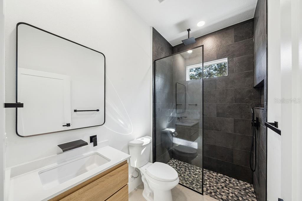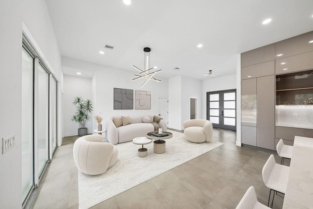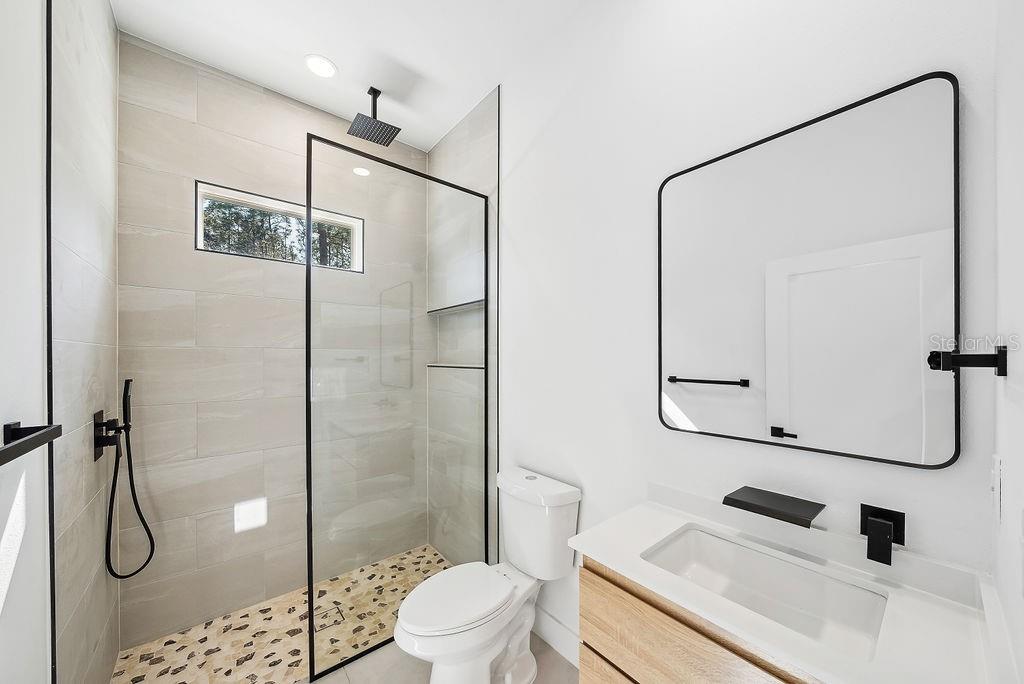 One or more photo(s) has been virtually staged. Discover contemporary luxury living on 1.16 acres in the no-HOA community of Rolling Hills. This brand-new 4-bedroom, 3.5-bath home features 11'4" ceilings in the main living areas and 10' ceilings throughout the rest, creating an airy, expansive feel. Oversized bedrooms offer ample space, while a gourmet kitchen with custom cabinetry elevates everyday cooking to a culinary experience. Each bathroom boasts floating vanities, and the spa-like primary suite shines with a custom porcelain-tiled shower, dual rainfall showerheads, and an extended soaking tub for ultimate relaxation. Enjoy the oversized covered lanai and large backyard, perfect for entertaining and outdoor living. Experience modern elegance and the charm of Ocala’s countryside—schedule your private showing today!