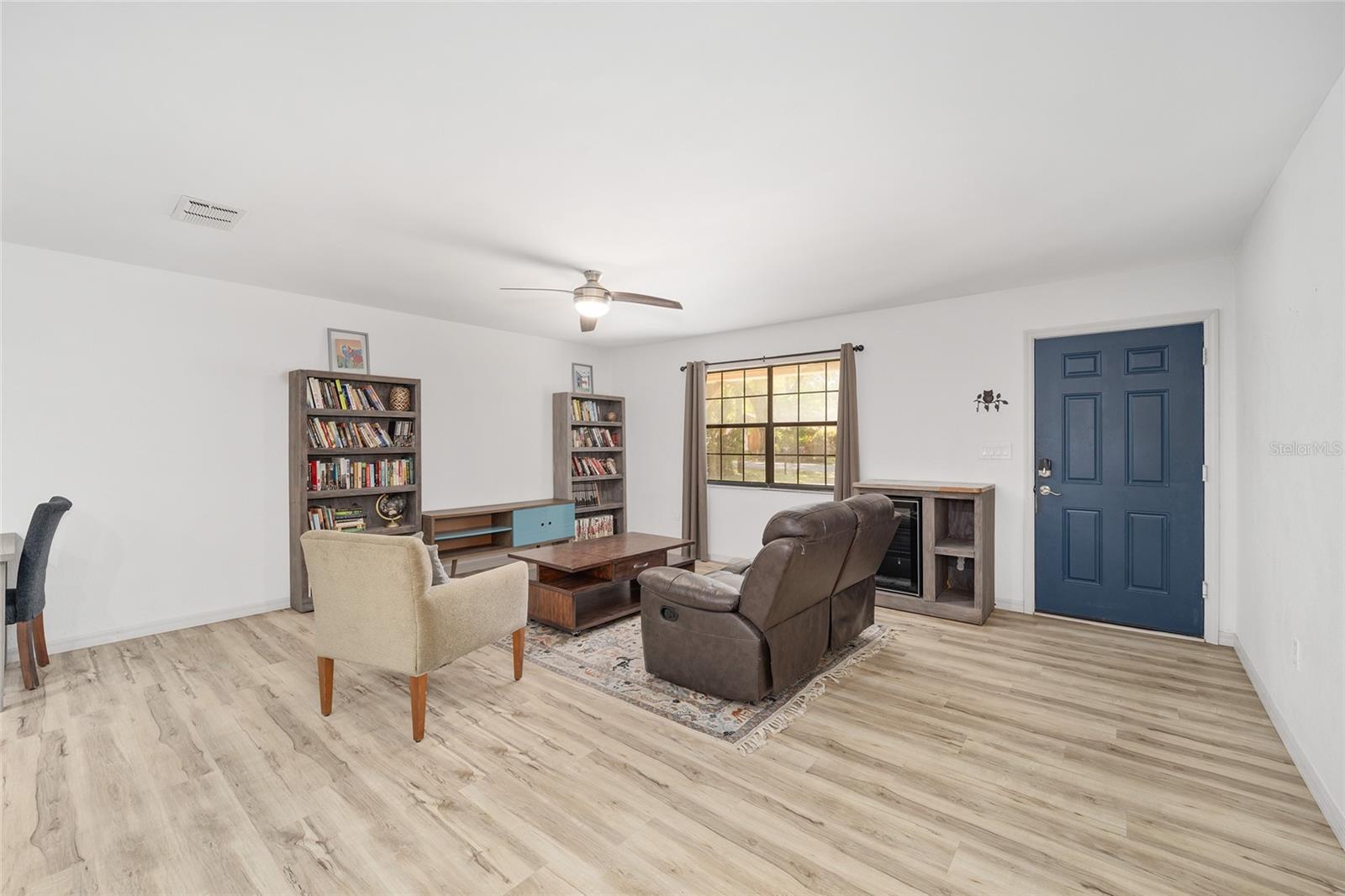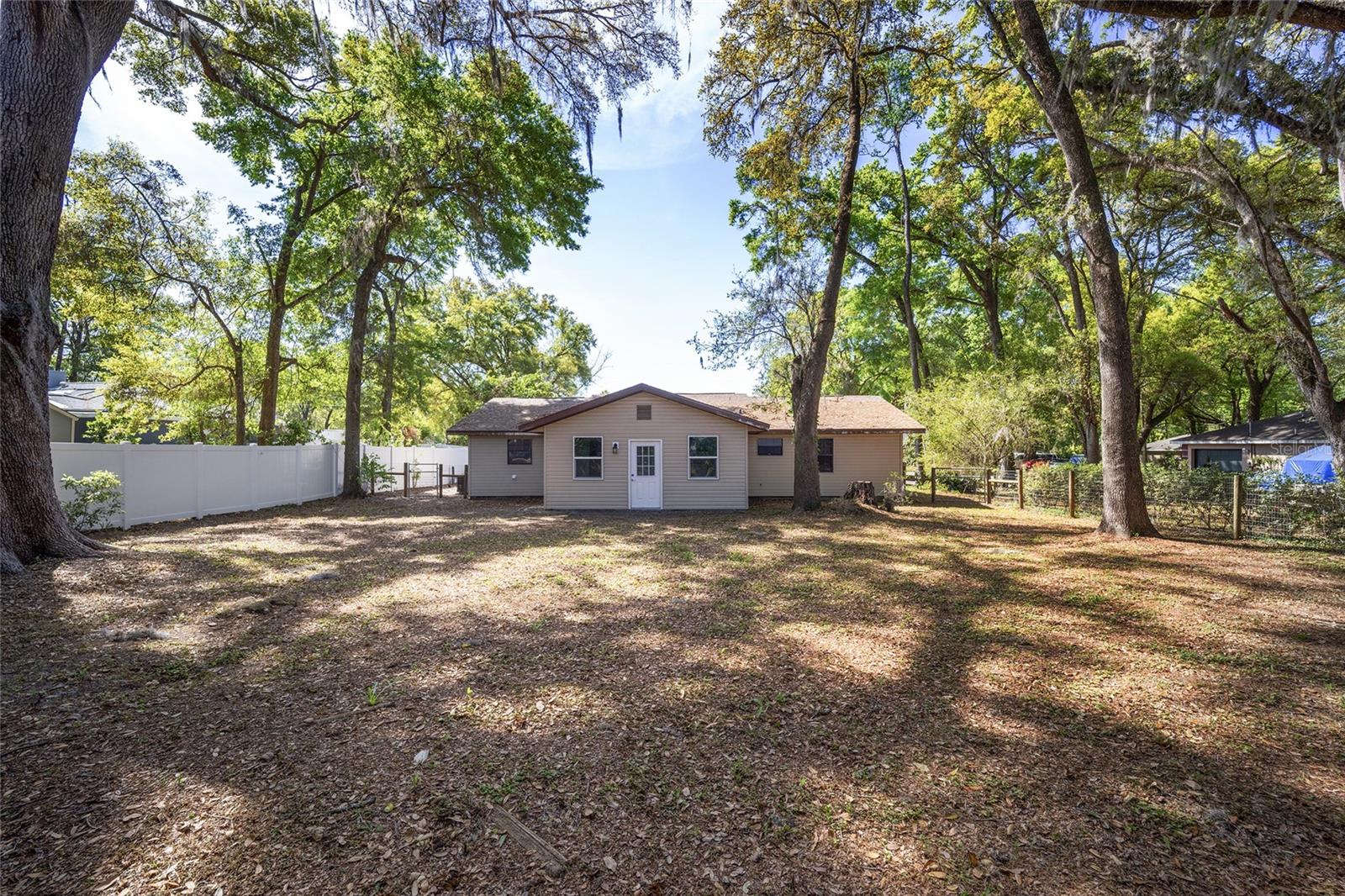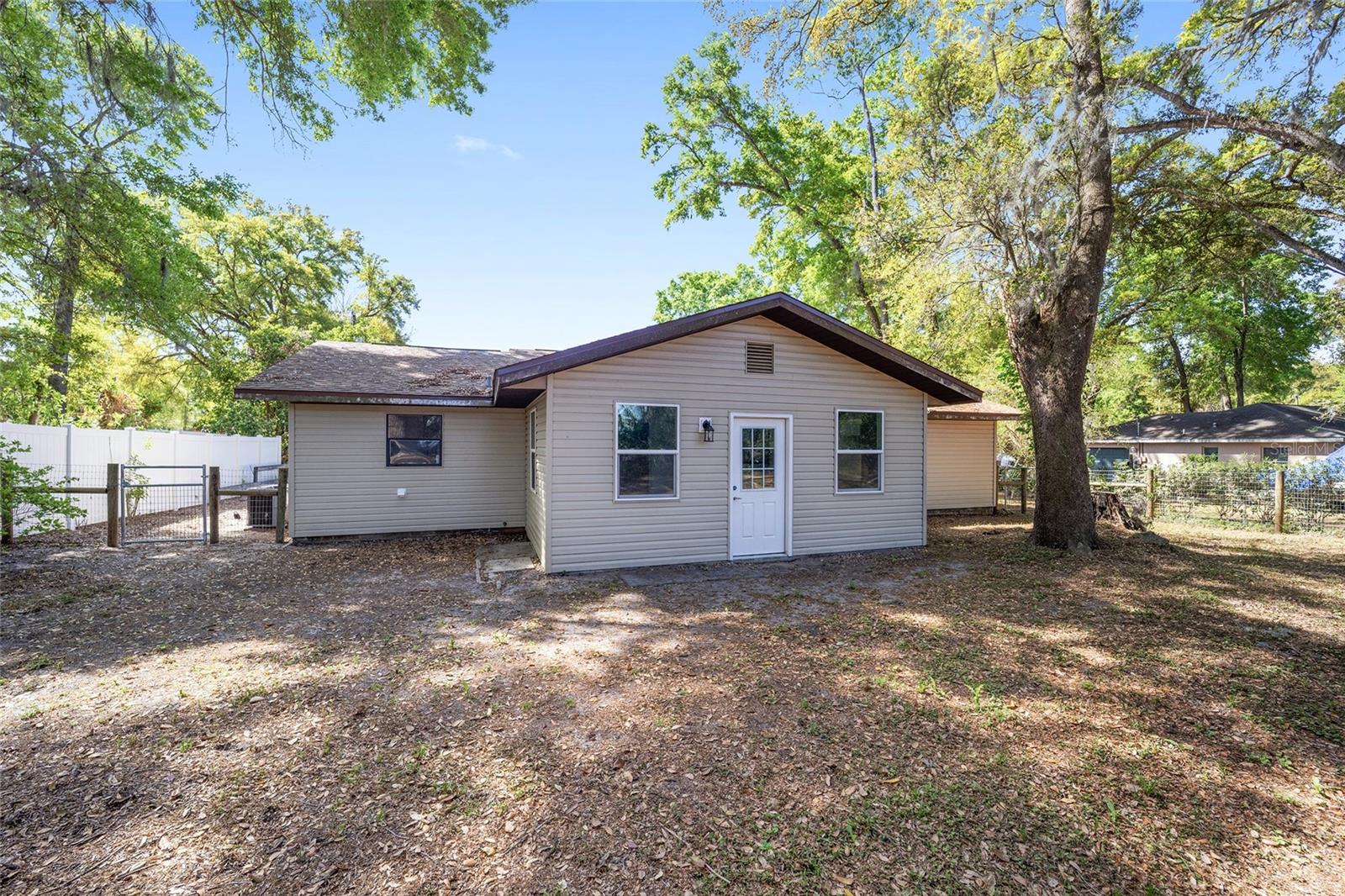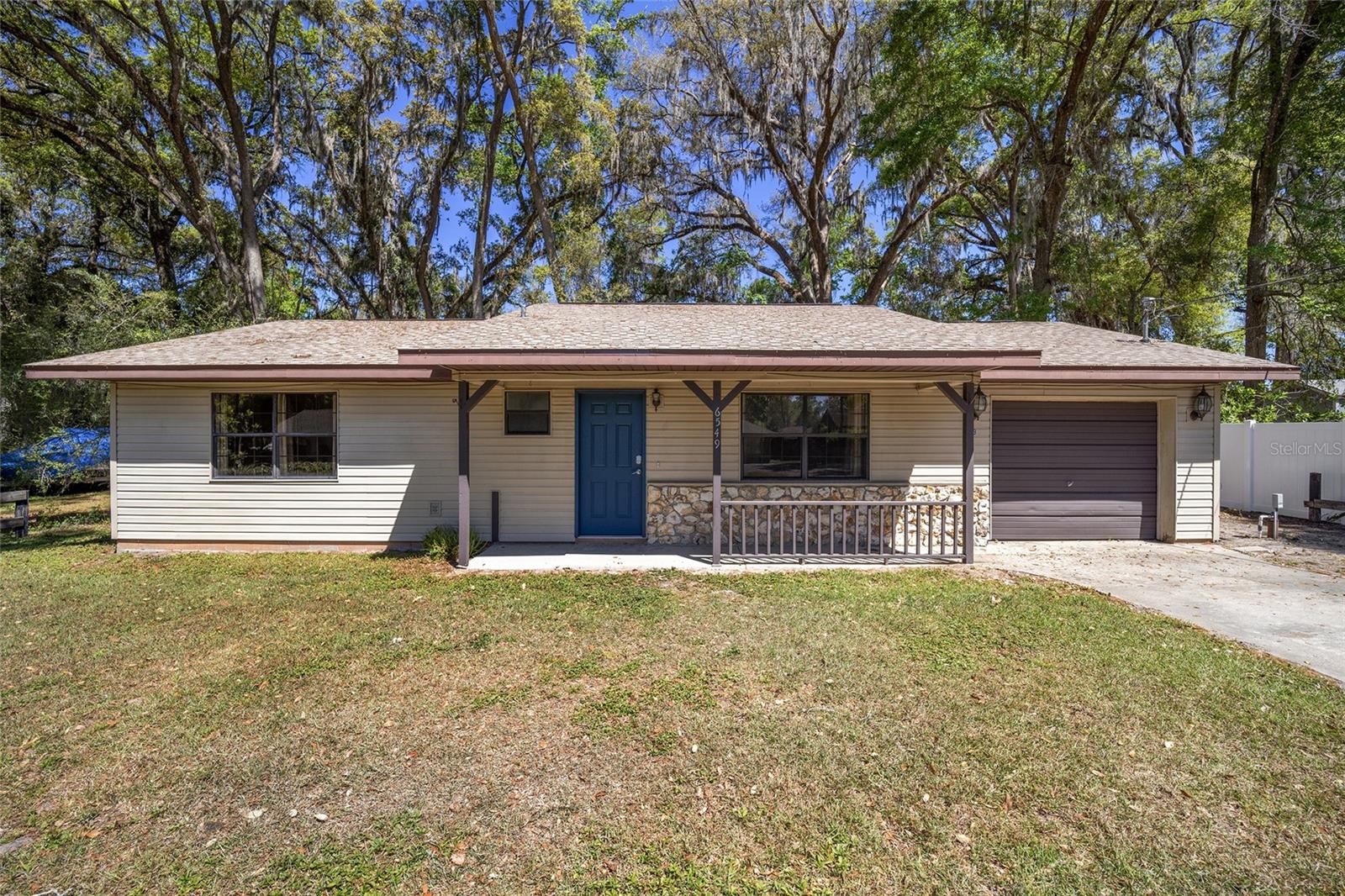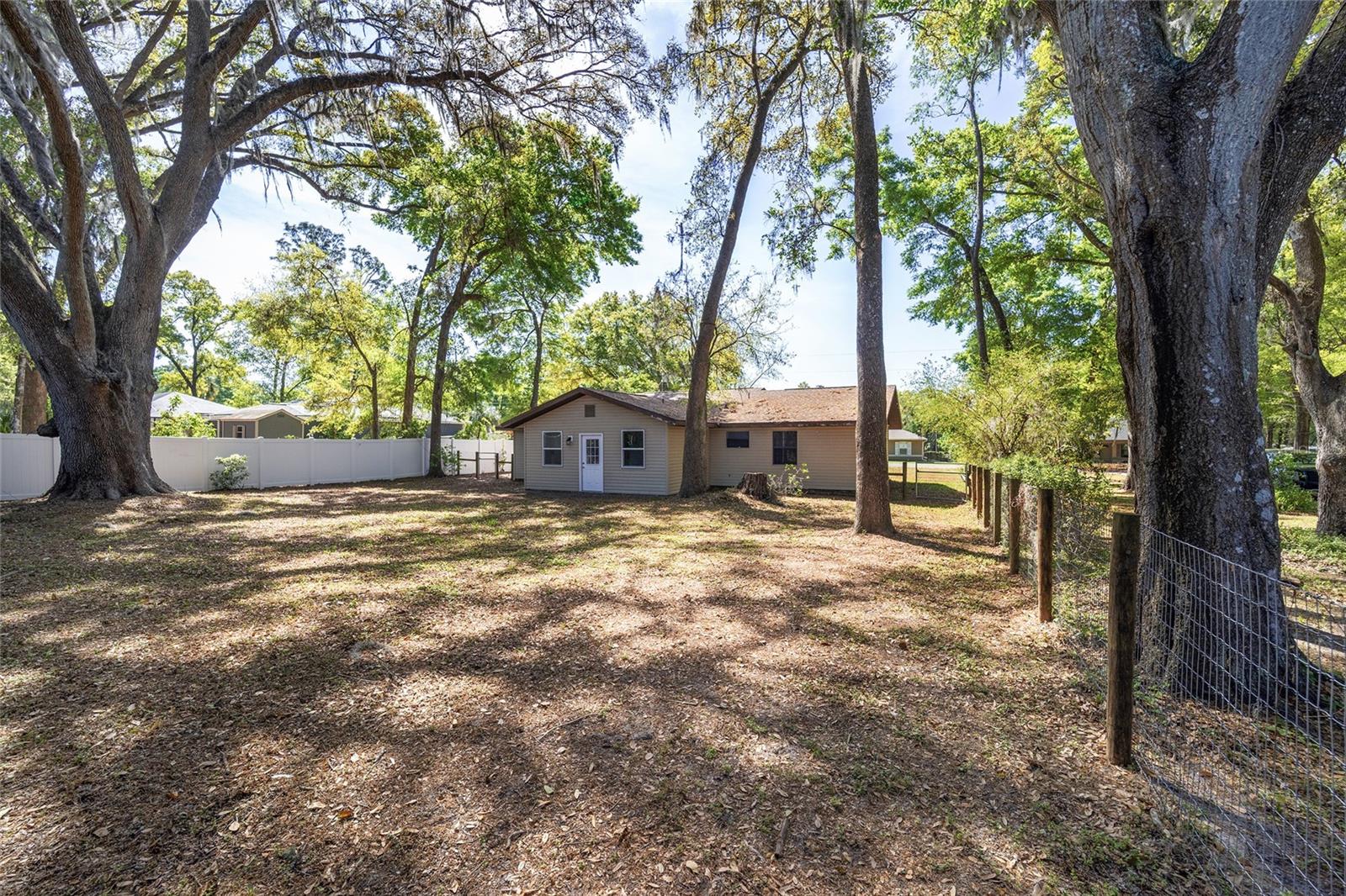 Situated in the buzzing Ocala NW horse country, just off 225a and only minutes to the renowned World Equestrian Center is this adorably renovated home in Ocala Park Estates. In 2021 there was all new paint (ceilings too, no more popcorn), fixtures, LVP flooring throughout, kitchen cabinets, island with seating, stainless steel appliances and granite countertops. As well as a new guest vanity and tiled shower, new primary vanity, water heater, enclosed lanai under air with new windows and fenced in backyard that backs up to a 60 acre farm. The roof was done with new architectural shingles in 2022 and water softener and a new electrical panel in 2023. This is the perfect spot for season, year round, rental investment or starter home! With an open floor plan, large inside laundry, extra enclosed florida room that could be turned into any type of flex room, 2 bedrooms and 2 bathrooms you are sure to be pleasantly satisfied with it's appeal! Welcome to the Horse Capital of The World!