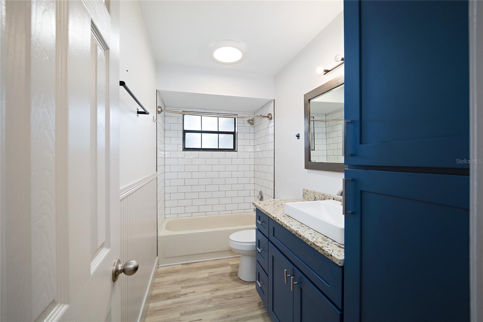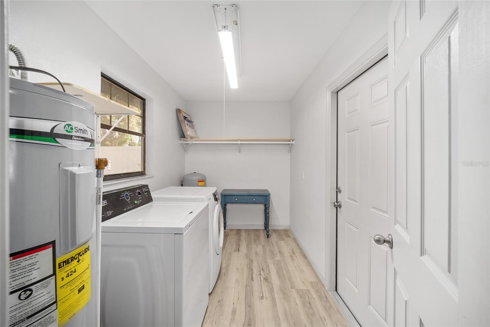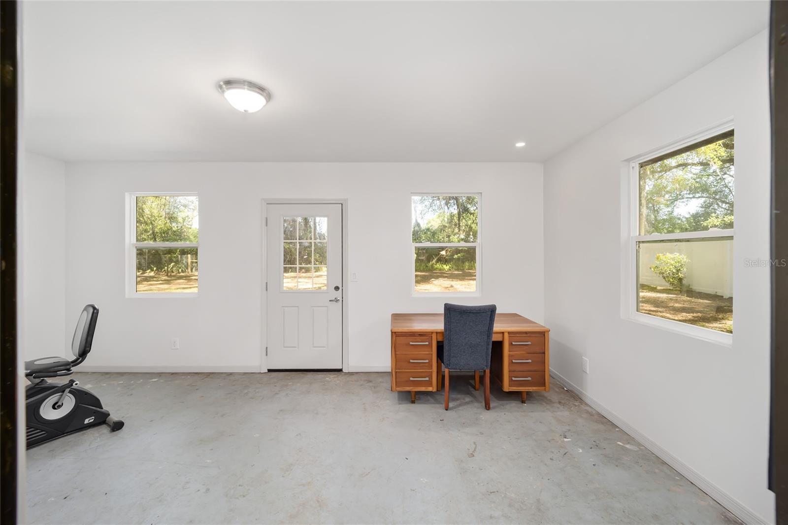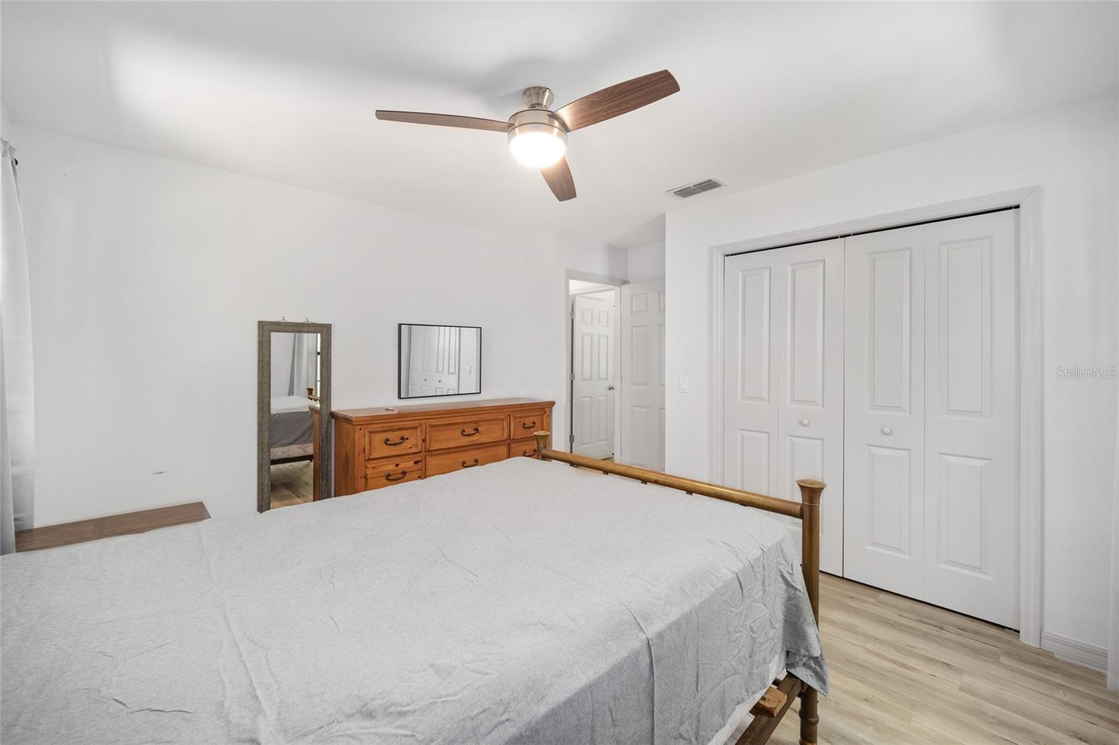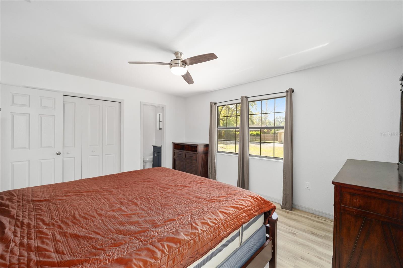 Situated in the buzzing Ocala NW horse country, just off 225a and only minutes to the renowned World Equestrian Center is this adorably renovated home in Ocala Park Estates. In 2021 there was all new paint (ceilings too, no more popcorn), fixtures, LVP flooring throughout, kitchen cabinets, island with seating, stainless steel appliances and granite countertops. As well as a new guest vanity and tiled shower, new primary vanity, water heater, enclosed lanai under air with new windows and fenced in backyard that backs up to a 60 acre farm. The roof was done with new architectural shingles in 2022 and water softener and a new electrical panel in 2023. This is the perfect spot for season, year round, rental investment or starter home! With an open floor plan, large inside laundry, extra enclosed florida room that could be turned into any type of flex room, 2 bedrooms and 2 bathrooms you are sure to be pleasantly satisfied with it's appeal! Welcome to the Horse Capital of The World!