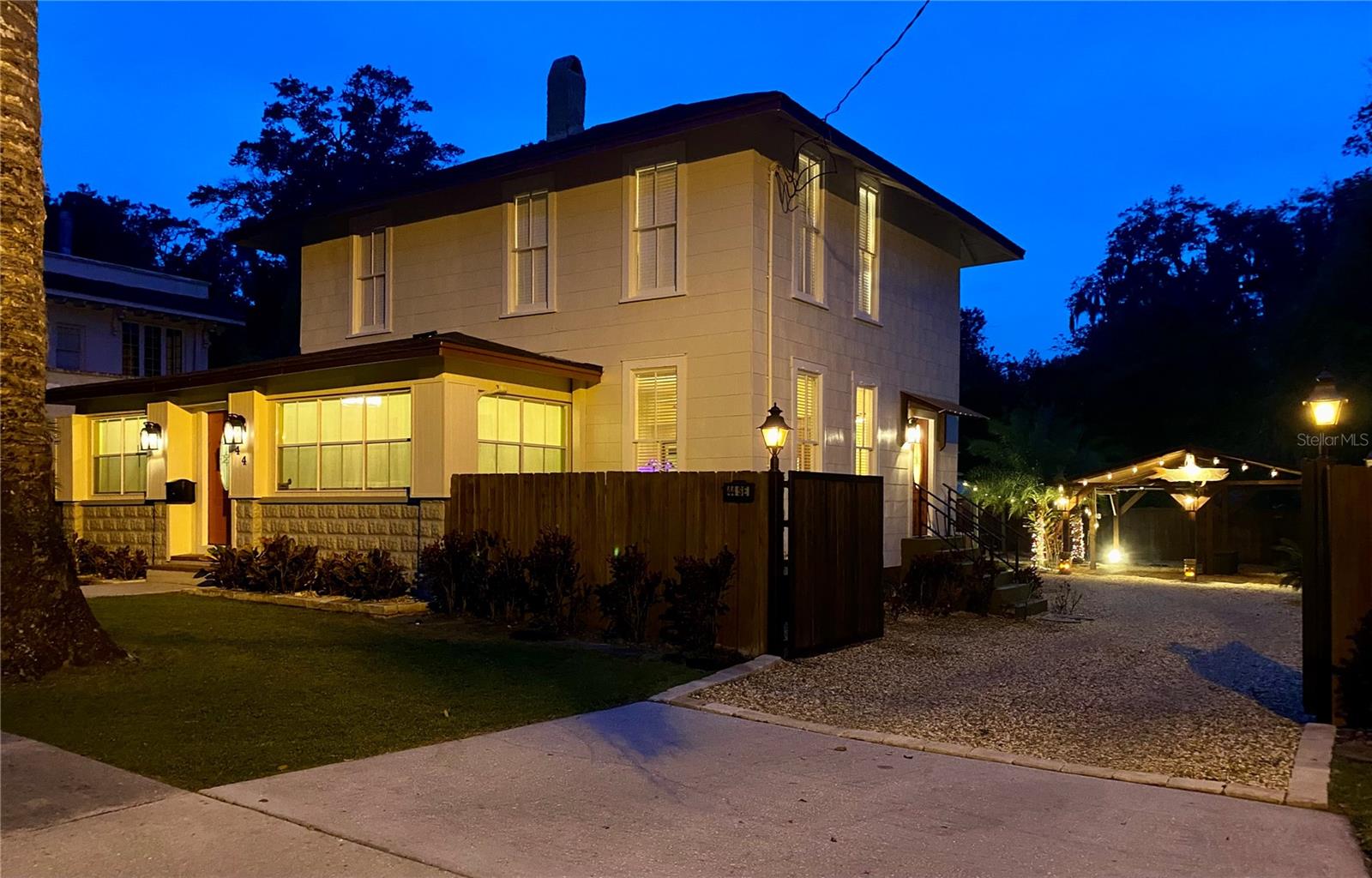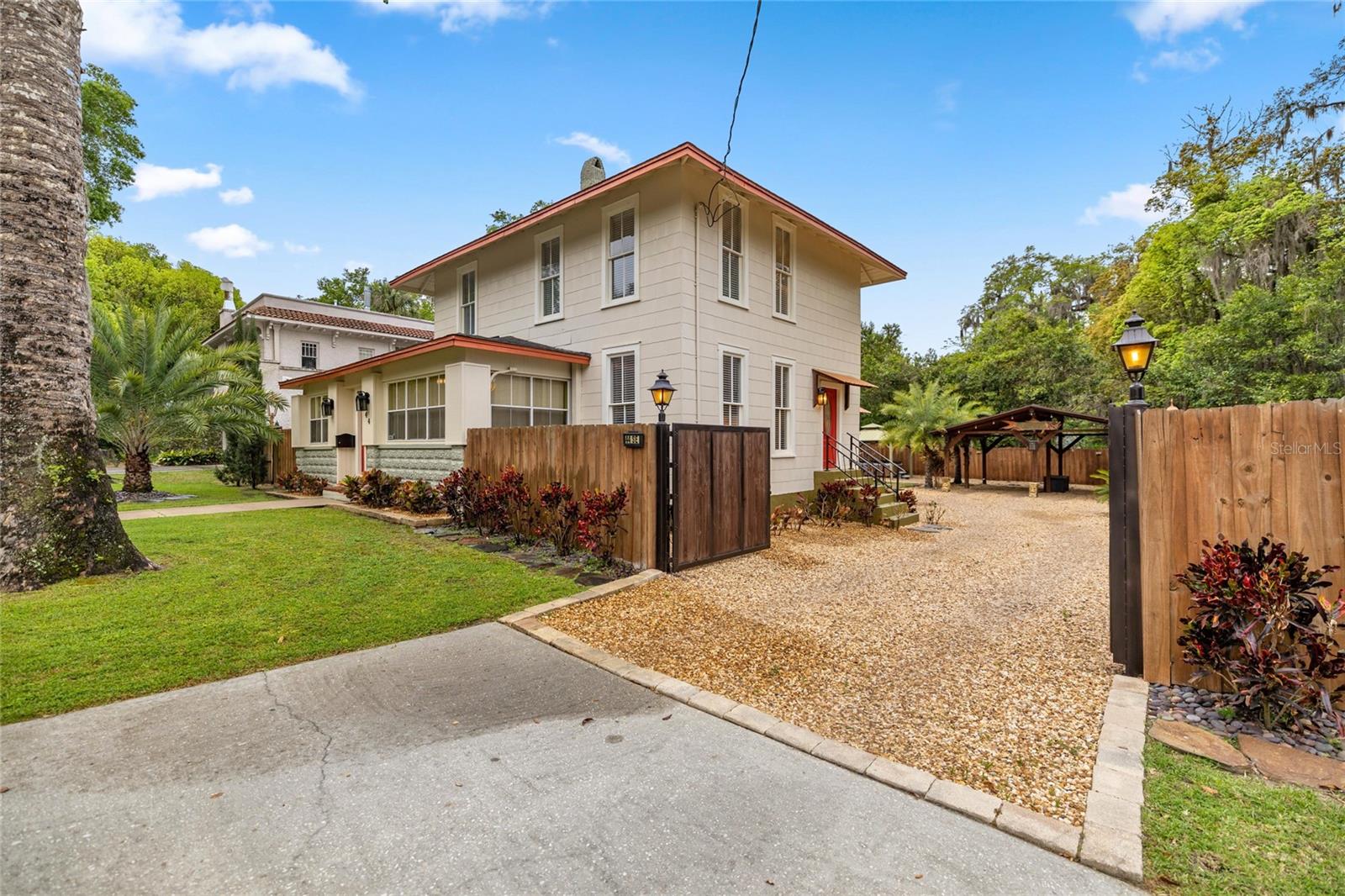 Move right into this fully upgraded home in the heart of downtown Ocala! Thoughtfully maintained and move-in ready, this home offers modern convenience while preserving its historic charm. Featuring new engineered hardwood and bamboo flooring, granite countertops, and a bar area with an additional fridge, the kitchen is fully equipped with new smart appliances, including a gas stove, refrigerator, dishwasher, and microwave. Mini split units provide zoned temperature control, while a historic 300-year-old Asian wooden door from the Seven Sisters Inn adds a unique touch. Recent upgrades include a new tankless water heater, a one-year-old cooling and heating system, and smart home integration for lighting, outlets, irrigation, and appliances. Enjoy the luxury of a smart toilet with a built-in bidet and the speed of fiber optic internet. The exterior is just as impressive, offering a fully fenced property with a security electric gate, a smart irrigation system for individual plants and grass, and two metal gazebos for grilling and spa relaxation. An outdoor shower with hot and cold water, a wood deck extension off the kitchen, and a secured garage with carport parking enhance the outdoor living experience. Motion-detection LED security lights and cameras provide peace of mind. A climate-controlled man cave with heating, AC, and a French door refrigerator adds even more versatility. Located in Ocala’s Historic District, this rare gem combines modern upgrades with classic charm. Schedule your private tour today!