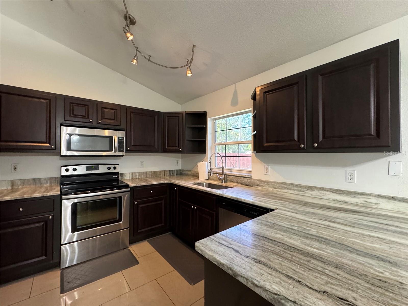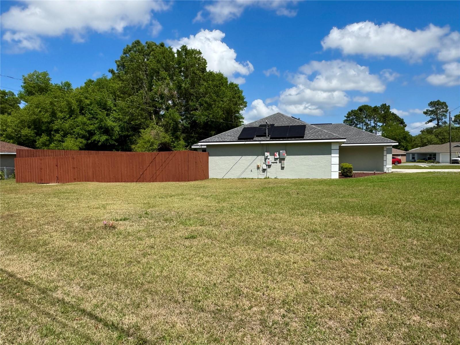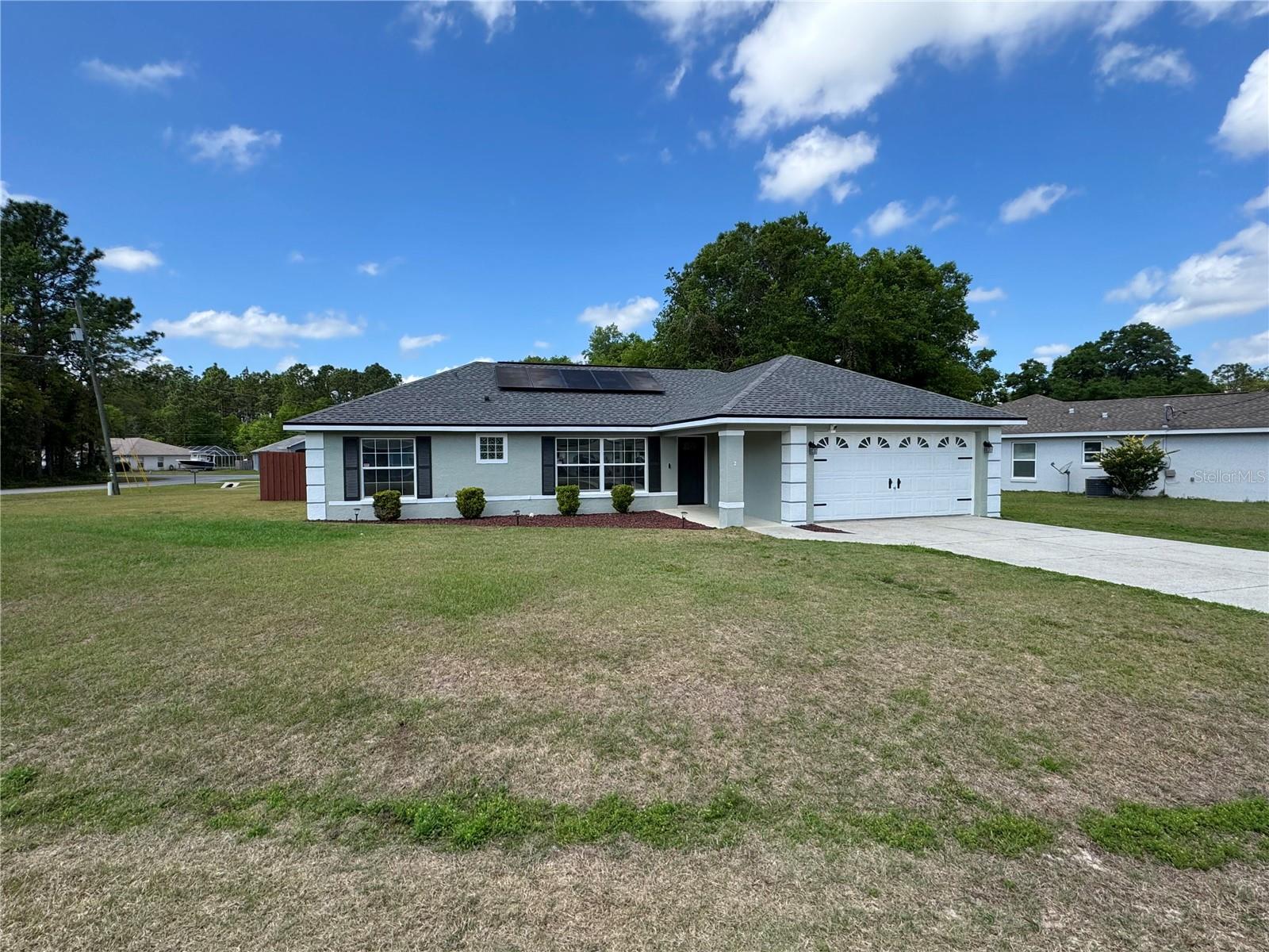 A beautiful wide open corner lot home located in a quiet neighborhood in Silver Spring Shores. If you are looking for space and room to move with a nicely fenced in backyard, this home checks all your boxes. Not only does this home have amazing curb appeal, but it also offers a large screened-in lanai in the spacious private back yard. Enjoy the fabulous Florida weather right from your very own cozy patio. The windows are oversized offering plenty of light with a slight tint to ward off the summer heat making this home extra efficient. The living room/dining room are open with a newly remodeled kitchen in 2017 including cherry cabinets, stainless steel appliances and granite countertops. Shiny ceramic tile floors give a clean, fresh appearance paired with vinyl plank & laminate flooring. The master bedroom offers a spacious walk-in closet and master bath with a tile shower and plenty of counter space. Both accessory bedrooms include walk-in closets giving this home a great deal of storage space. The private laundry room is conveniently located directly off the garage entrance. The roof is from 2021, with a new A/C in 2018, Solar Panels in 2022, and a new fence was built in 2021 and freshly stained in 2025. Exterior was recently repainted, along with the interior with most trim and doors refreshed. Close to Downtown Ocala with restaurants & shopping along with Silver Spring Shores Community Center where you can enjoy pools and fitness center. Enjoy Silver Springs State Park and many other local springs for swimming! Just over an hour to Orlando with all the glorious Disney Parks and Universal Studios. Just under 2 hours to Tampa, Clearwater, Daytona Beach and Jacksonville. Come enjoy all the perks of living in Central Florida with the Villages nearby and the World Equestrian Center. Marion County is known as the horse capital of the World, come make this home yours today!