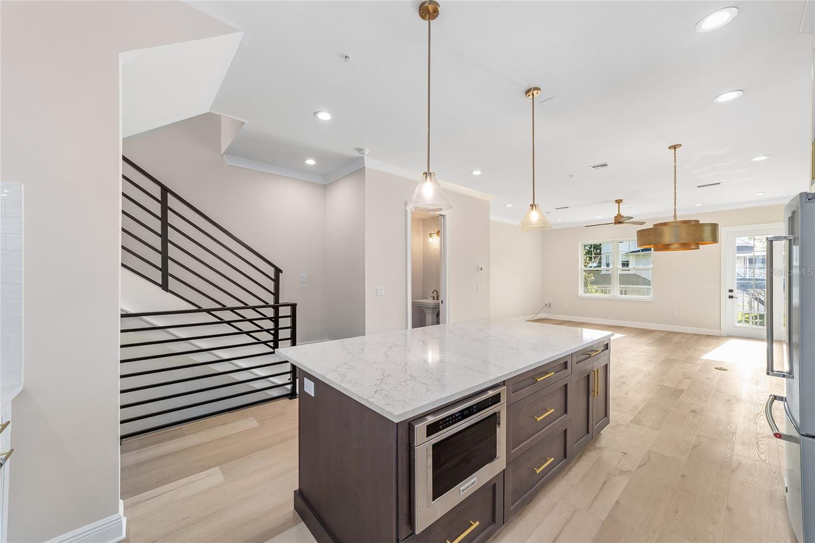 Experience vibrant downtown living in this brand-new, beautifully constructed townhome located just steps from Ocala's historic square, boutique shopping, and top-rated restaurants. This 3-bedroom, 3.5-bathroom residence offers the perfect blend of modern style, comfort, and convenience. Step inside to an open-concept living, dining, and kitchen space adorned with custom modern finishes, sleek cabinetry, and designer lighting. The gourmet kitchen is ideal for entertaining, flowing seamlessly into the spacious living area and out to a private balcony with stunning views of downtown. Each of the three levels has been thoughtfully designed, featuring a luxurious primary suite complete with a spa-inspired bathroom and an oversized walk-in closet. Two additional en-suite bedrooms provide comfort and privacy for guests or family members. Enjoy the convenience of a 2-car garage, low-maintenance living with HOA-managed landscaping, and the security of a gated community. Relax with neighbors at the community’s gas firepit or take a short stroll to downtown Ocala. This is the ideal home for those seeking upscale, walkable city living with the peace of mind that comes with new construction.