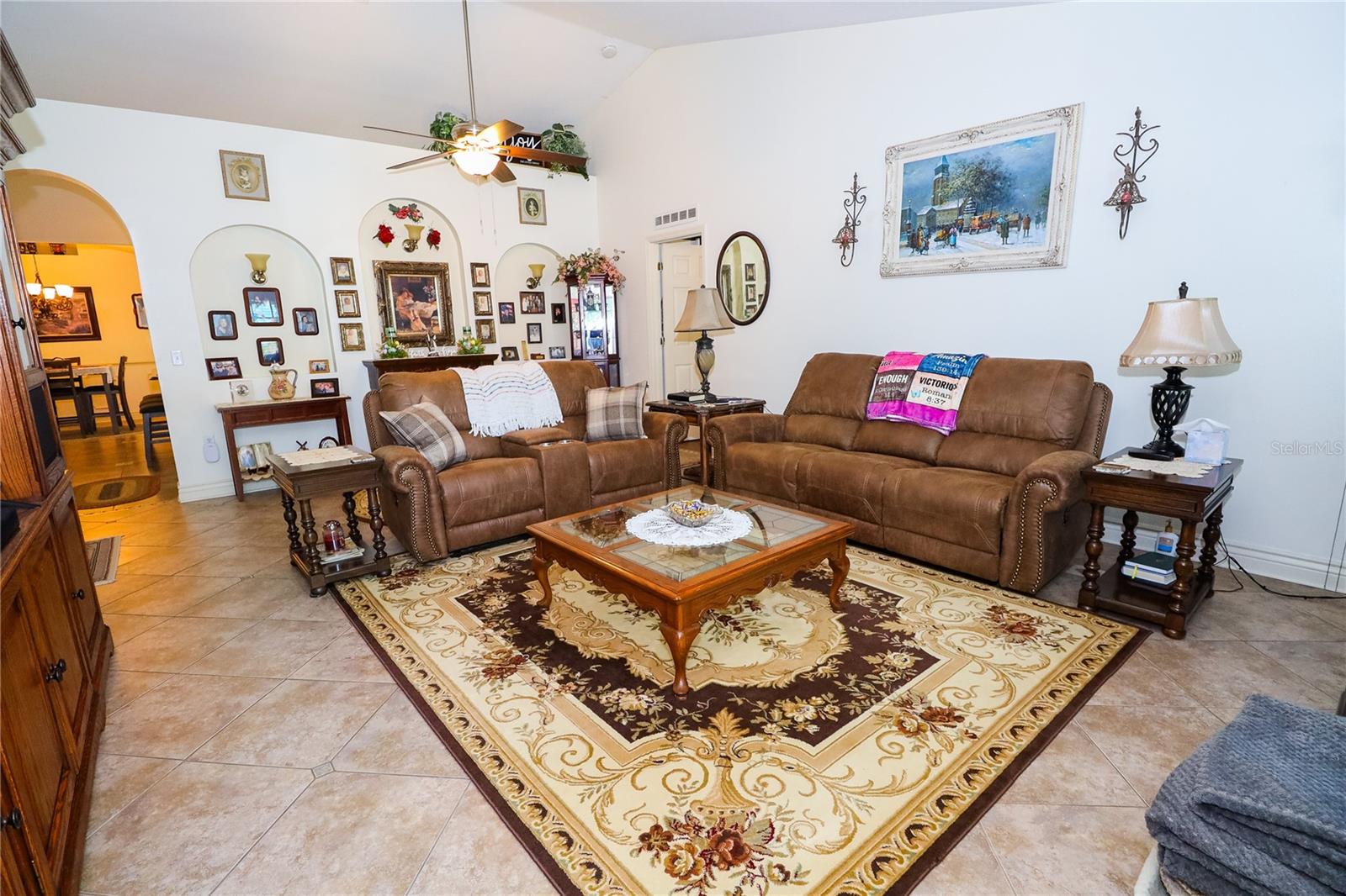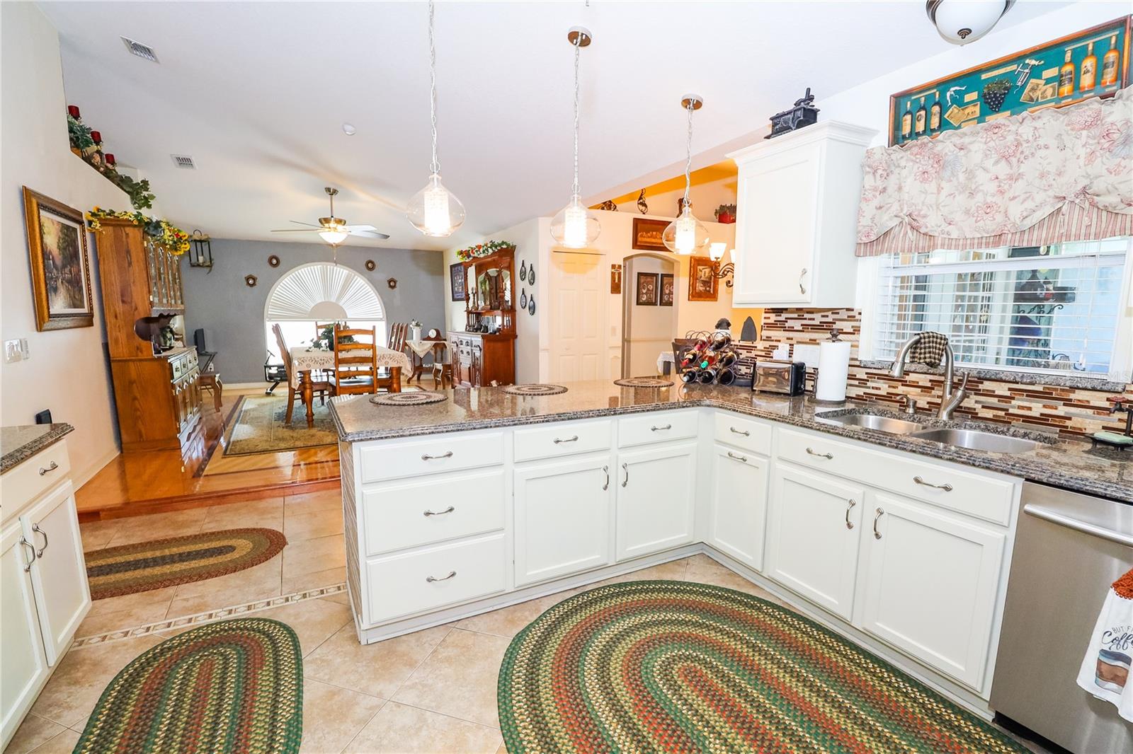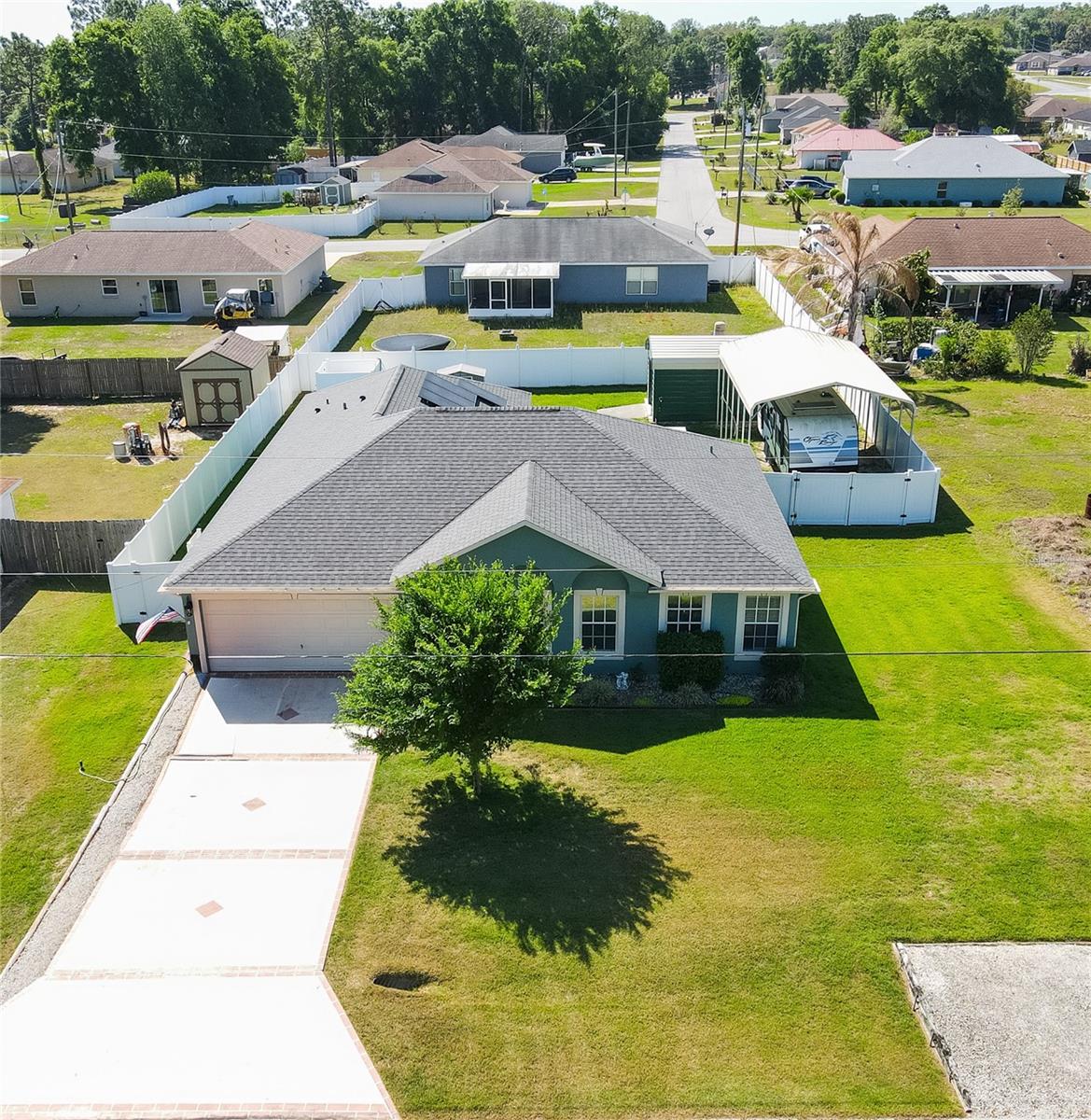 Incredible Opportunity! This beautifully renovated 3-bedroom, 2-bath concrete/block stucco home comes with an assumable VA loan at just 2.375 interest rate! Inside, enjoy classic finishes including diamond-shaped ceramic tile, arched doorways, cathedral ceilings, plant shelves, and tasteful accent walls. The split-bedroom layout offers privacy, with a spacious master suite featuring dual walk-in closets, en-suite bath with step-in shower, garden tub, and dual sinks. The modern kitchen boasts granite countertops, stainless steel appliances, sleek cabinetry, breakfast bar, and double pantry. Relax in the enclosed lanai overlooking a private, newly vinyl-fenced backyard with above-ground pool, workshop, and carport complete with 50-amp RV hook-up and 12’ dual swing gate. No HOA or deed restrictions! Major upgrades include 2024 HVAC, 2021 roof, 2020 water heater, and 2022 solar panels (average $35/month, lease $136/month transferable). This is Florida living at its finest—don’t miss it!