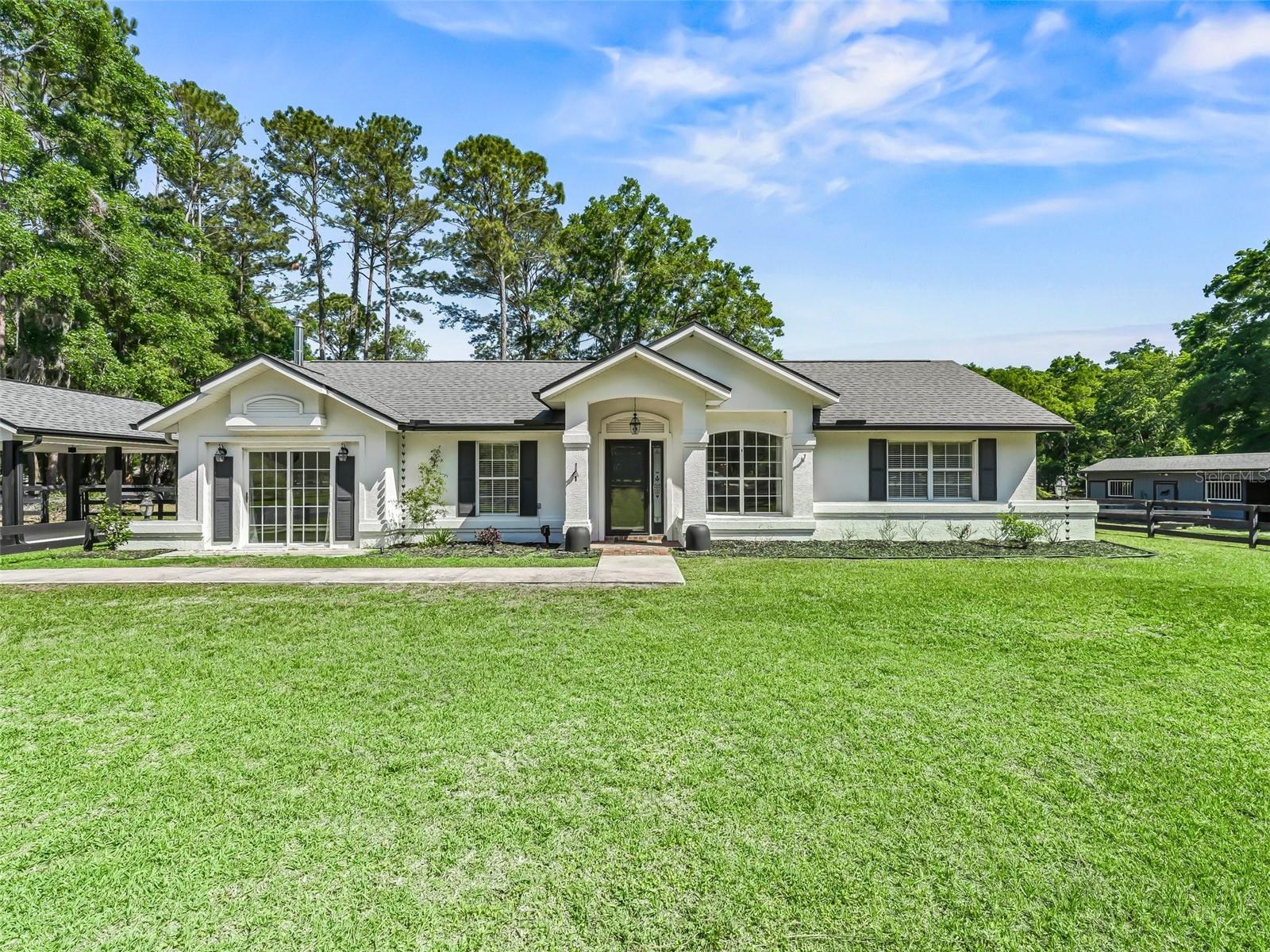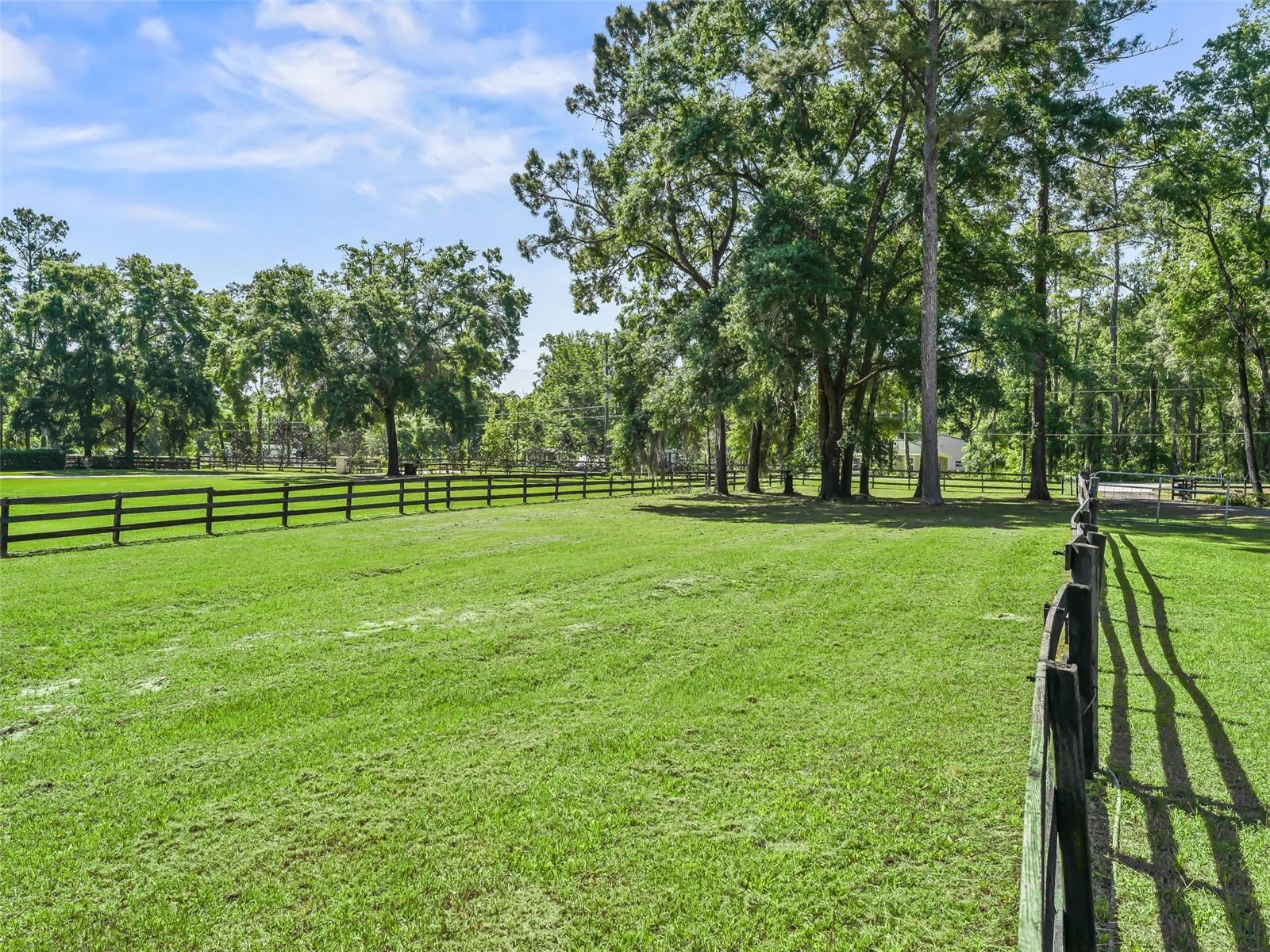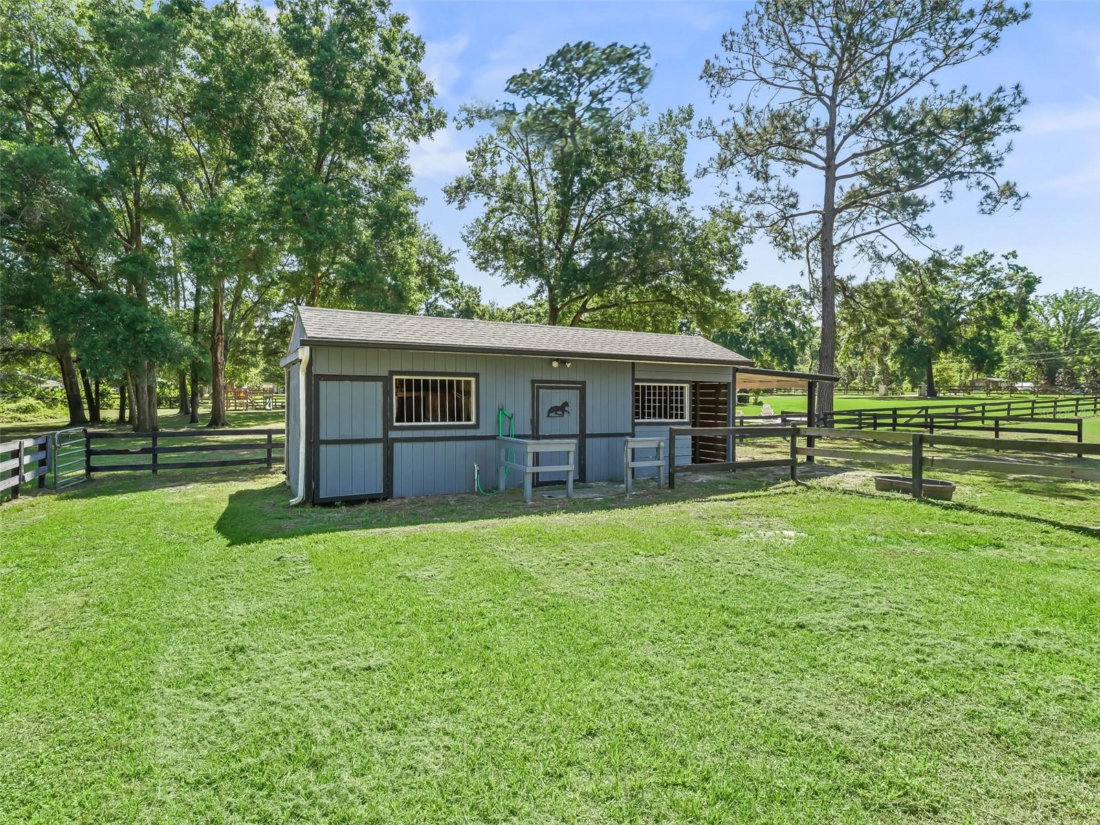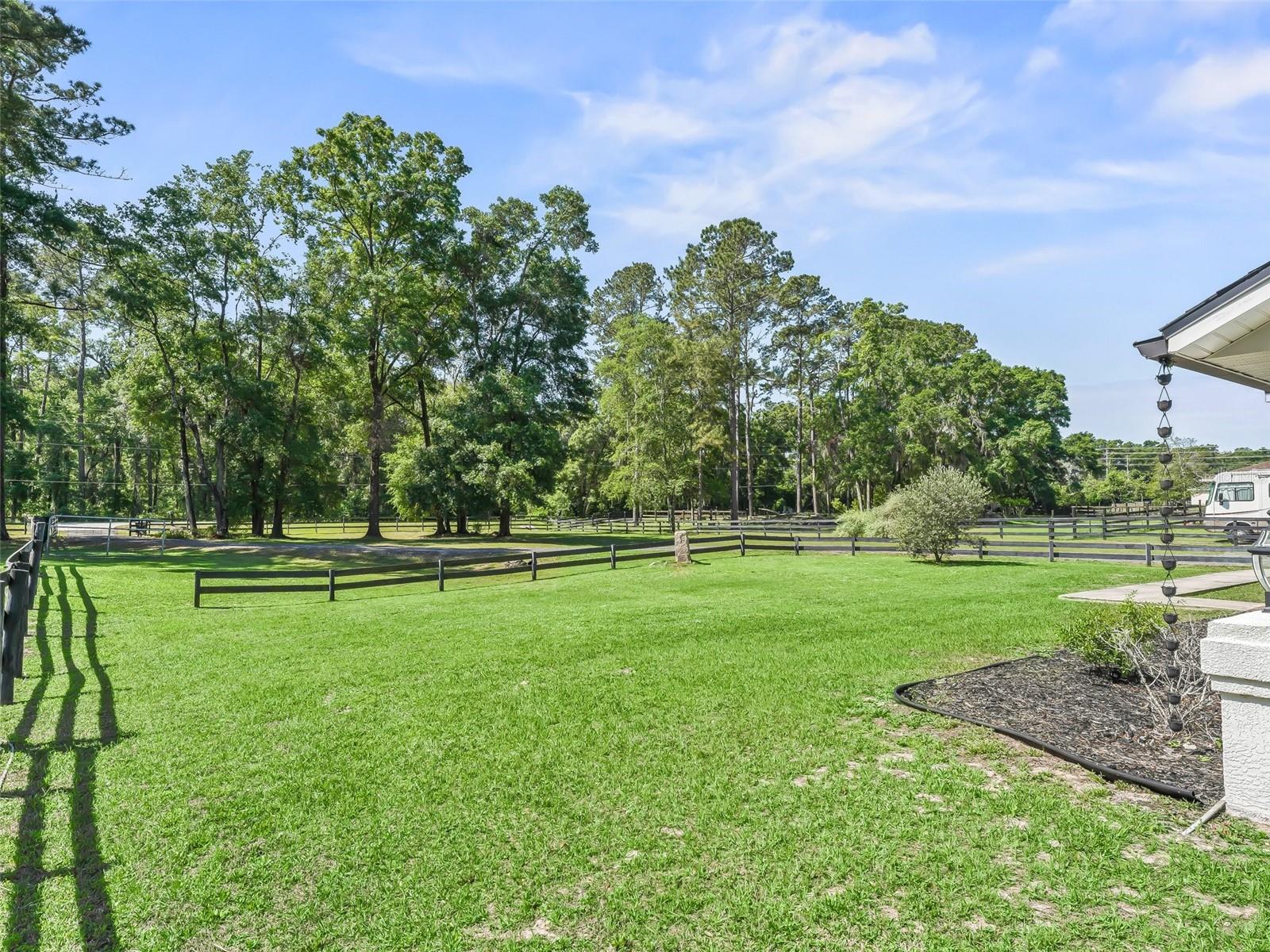 Don't let the size of this property fool you! Thoughtfully designed 1.4 acre lot in Meadow Wood Farms - just minutes from The WEC! The gated entryway leads to the fully fenced property with updated home and two-stall barn. Inside the home, the open, split bedroom floor plan features vaulted ceilings and wood laminate floors that carry throughout most of the home. The kitchen boasts newer cabinetry with soft-close drawers, roll outs, corian countertops, cast-iron porcelain sink, glass tile backsplash and stainless steel appliances including French door fridge. The primary suite offers dual-closets and an ensuite bathroom with dual sink vanity plus sit-down vanity, a walk-in shower with frameless glass door and linen closet. The opposite side of the home has two additional bedrooms and guest bathroom with access from the living space or 2nd bedroom. The guest bathroom features a shower/tub combo with glass door and newer vanity. The 3rd bedroom offers a sliding glass door to the yard and wood burning stove. There is also a spacious interior laundry room and covered breezeway leading to the carport. The back of the home offers a covered and screened porch and open patio leading to the backyard which is fully fenced with 3 board plus no-climb wire and includes a storage shed with electric and adjacent chicken coop. On the opposite side of the backyard is the two-stall barn complete with tack room and a fenced pasture along the east side of the property. A rear gate leads you into the neighborhood with miles of quiet, paved, tree lined streets. Updates include: new roof with skylights 2017, HVAC 2019, and well upgrade in 2024. This home could also be sold fully furnished! Please enjoy the attached video & 3D tours.