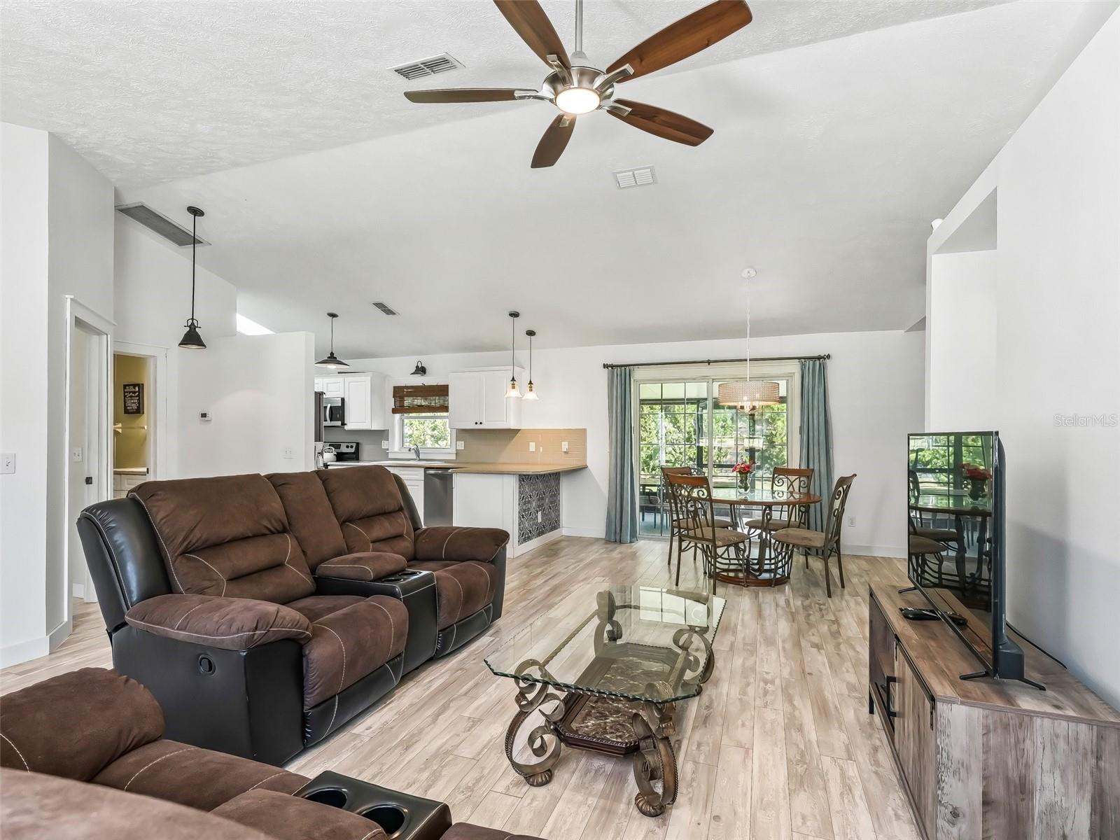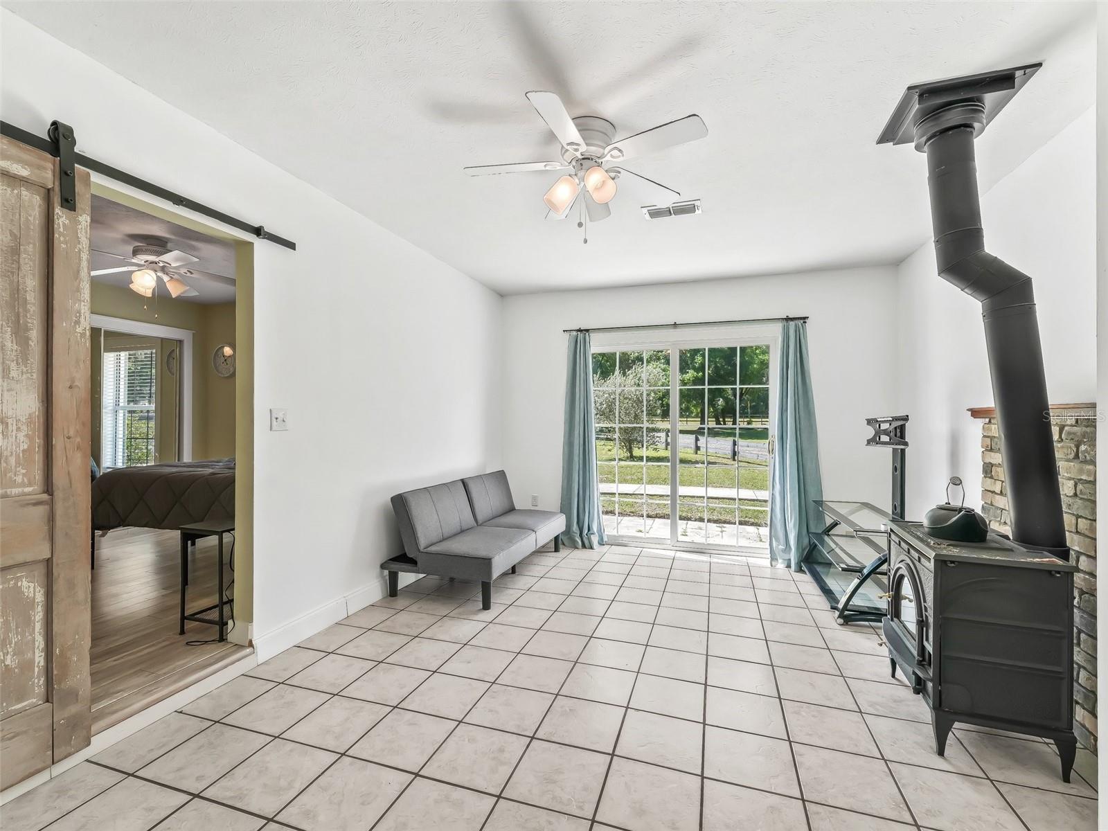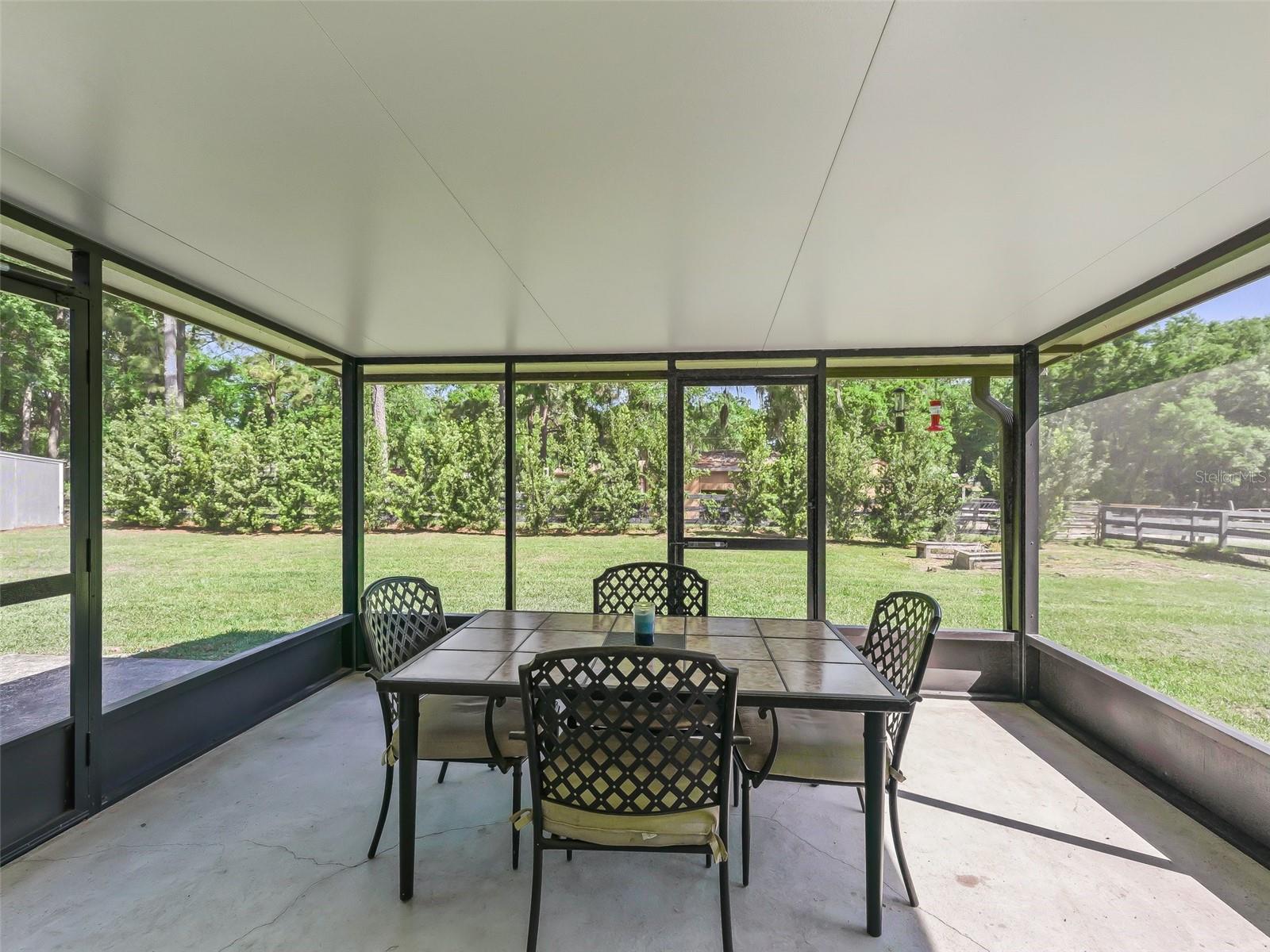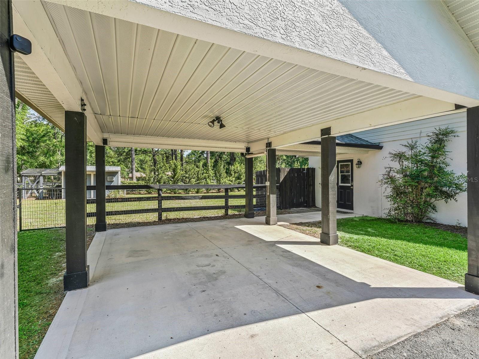 Don't let the size of this property fool you! Thoughtfully designed 1.4 acre lot in Meadow Wood Farms - just minutes from The WEC! The gated entryway leads to the fully fenced property with updated home and two-stall barn. Inside the home, the open, split bedroom floor plan features vaulted ceilings and wood laminate floors that carry throughout most of the home. The kitchen boasts newer cabinetry with soft-close drawers, roll outs, corian countertops, cast-iron porcelain sink, glass tile backsplash and stainless steel appliances including French door fridge. The primary suite offers dual-closets and an ensuite bathroom with dual sink vanity plus sit-down vanity, a walk-in shower with frameless glass door and linen closet. The opposite side of the home has two additional bedrooms and guest bathroom with access from the living space or 2nd bedroom. The guest bathroom features a shower/tub combo with glass door and newer vanity. The 3rd bedroom offers a sliding glass door to the yard and wood burning stove. There is also a spacious interior laundry room and covered breezeway leading to the carport. The back of the home offers a covered and screened porch and open patio leading to the backyard which is fully fenced with 3 board plus no-climb wire and includes a storage shed with electric and adjacent chicken coop. On the opposite side of the backyard is the two-stall barn complete with tack room and a fenced pasture along the east side of the property. A rear gate leads you into the neighborhood with miles of quiet, paved, tree lined streets. Updates include: new roof with skylights 2017, HVAC 2019, and well upgrade in 2024. This home could also be sold fully furnished! Please enjoy the attached video & 3D tours.