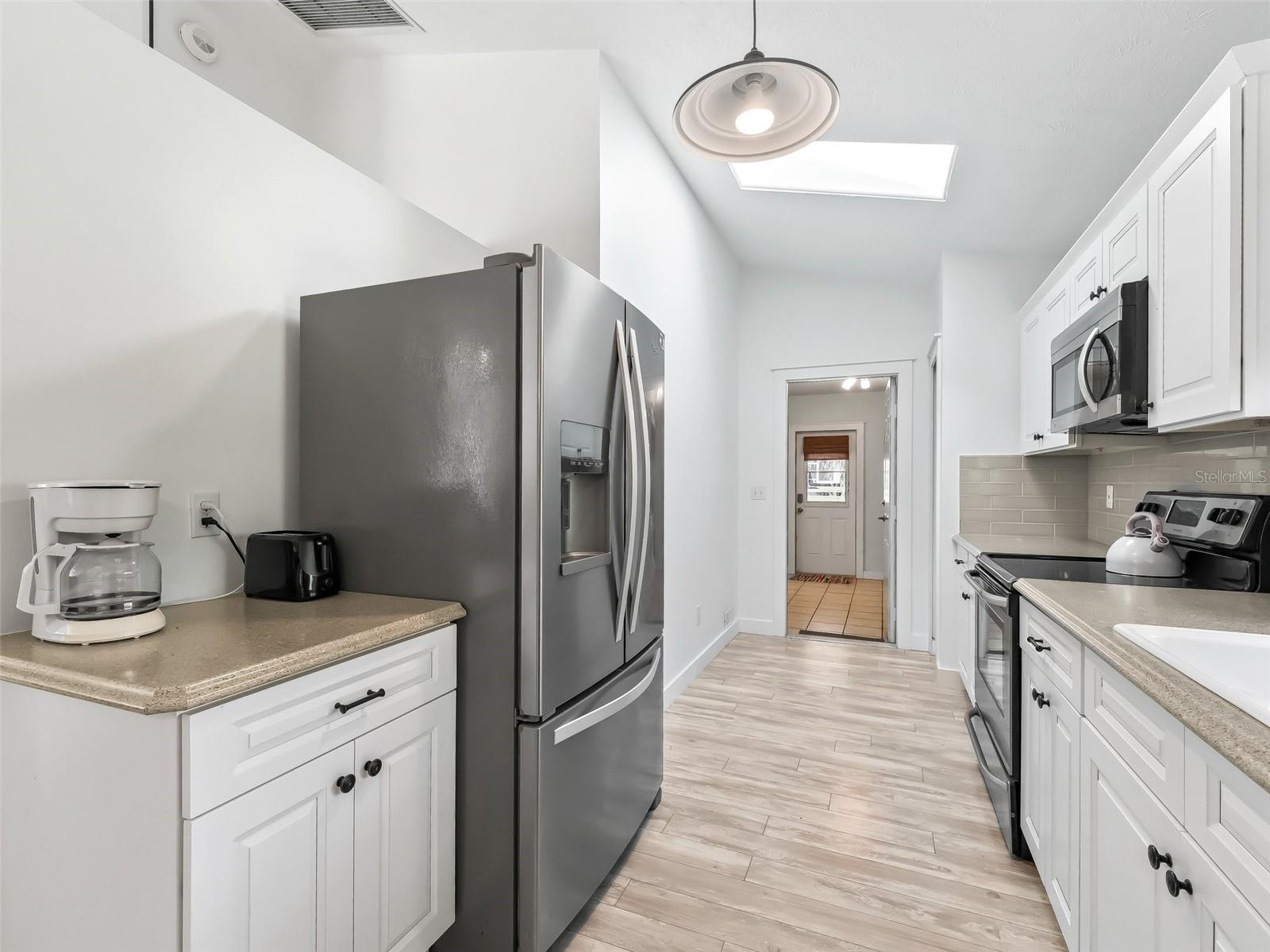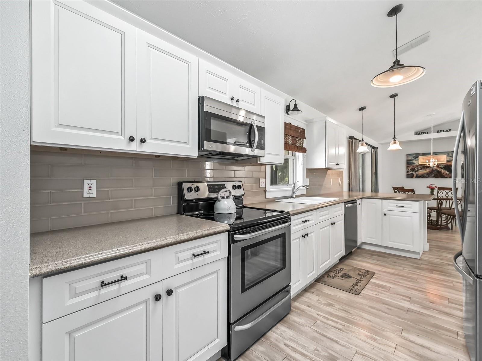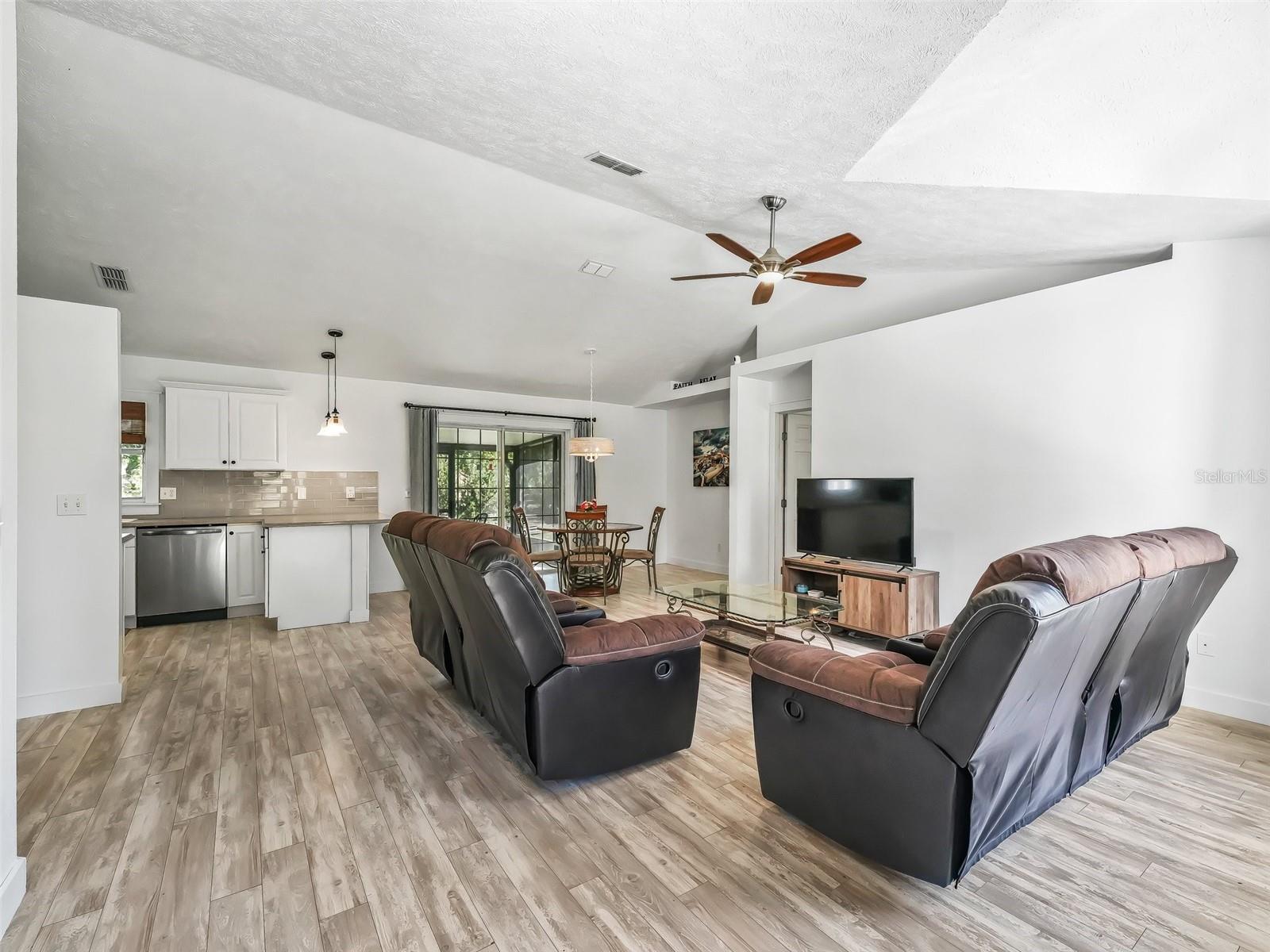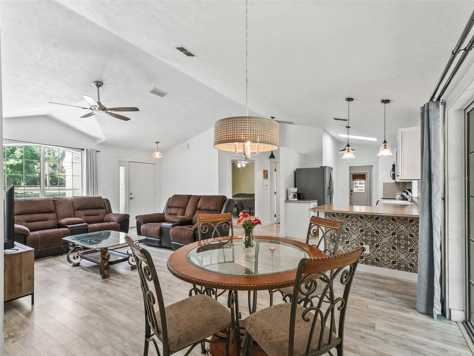 Don't let the size of this property fool you! Thoughtfully designed 1.4 acre lot in Meadow Wood Farms - just minutes from The WEC! The gated entryway leads to the fully fenced property with updated home and two-stall barn. Inside the home, the open, split bedroom floor plan features vaulted ceilings and wood laminate floors that carry throughout most of the home. The kitchen boasts newer cabinetry with soft-close drawers, roll outs, corian countertops, cast-iron porcelain sink, glass tile backsplash and stainless steel appliances including French door fridge. The primary suite offers dual-closets and an ensuite bathroom with dual sink vanity plus sit-down vanity, a walk-in shower with frameless glass door and linen closet. The opposite side of the home has two additional bedrooms and guest bathroom with access from the living space or 2nd bedroom. The guest bathroom features a shower/tub combo with glass door and newer vanity. The 3rd bedroom offers a sliding glass door to the yard and wood burning stove. There is also a spacious interior laundry room and covered breezeway leading to the carport. The back of the home offers a covered and screened porch and open patio leading to the backyard which is fully fenced with 3 board plus no-climb wire and includes a storage shed with electric and adjacent chicken coop. On the opposite side of the backyard is the two-stall barn complete with tack room and a fenced pasture along the east side of the property. A rear gate leads you into the neighborhood with miles of quiet, paved, tree lined streets. Updates include: new roof with skylights 2017, HVAC 2019, and well upgrade in 2024. This home could also be sold fully furnished! Please enjoy the attached video & 3D tours.