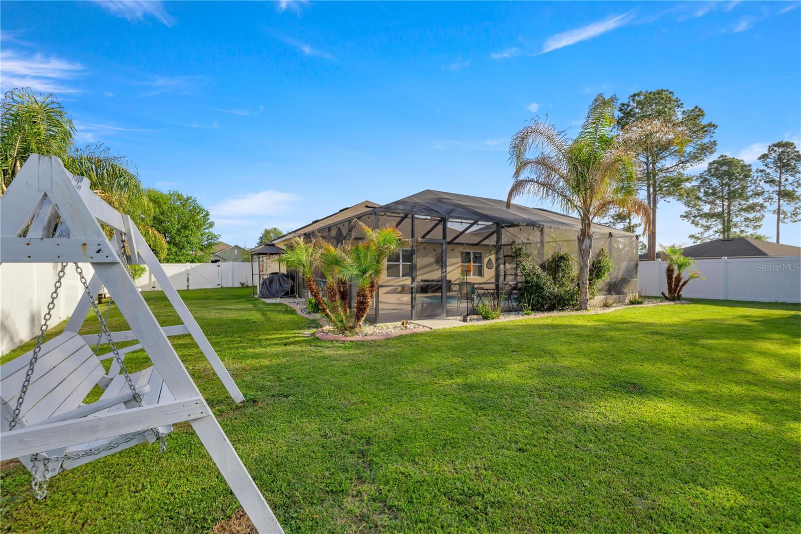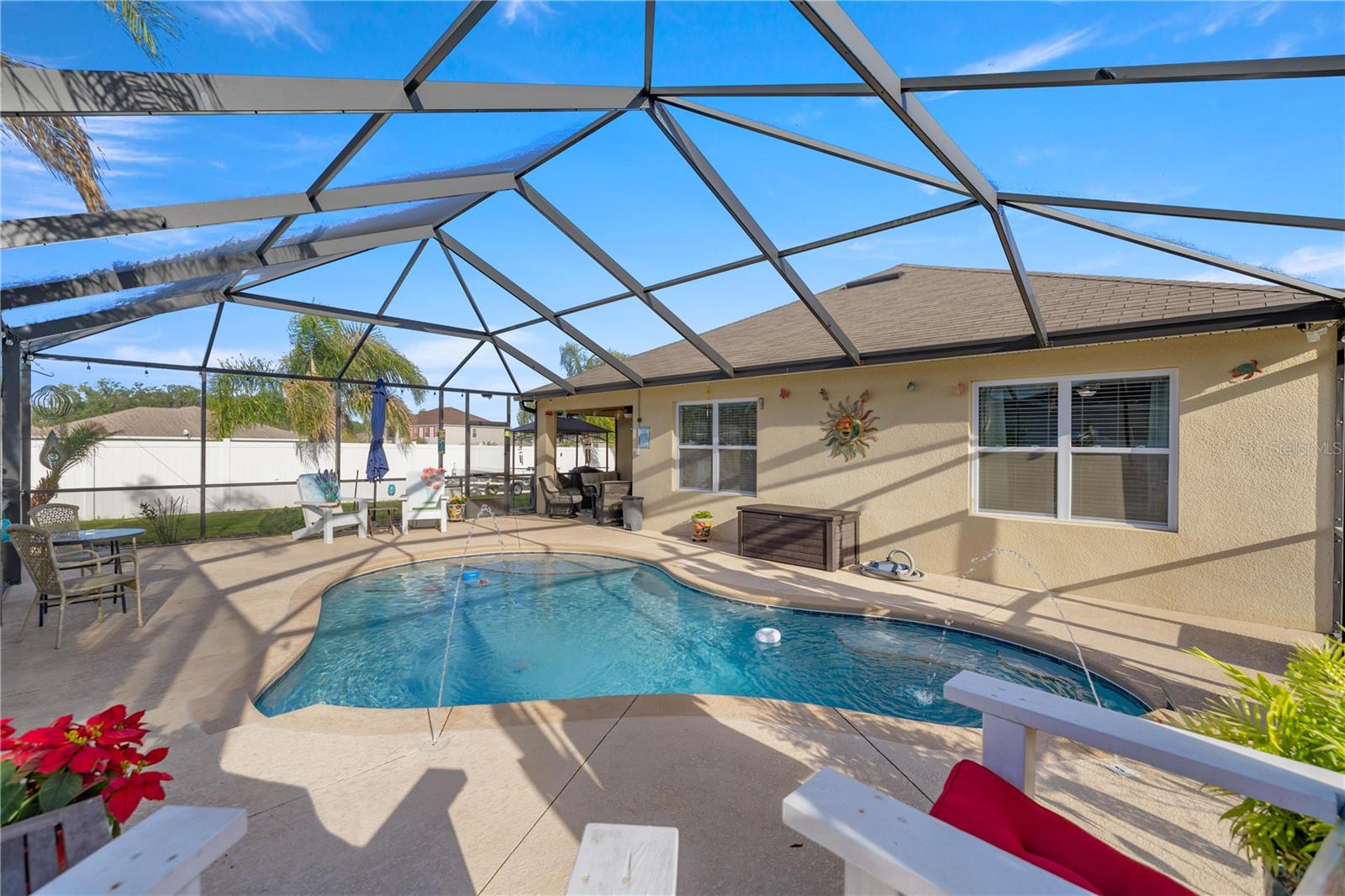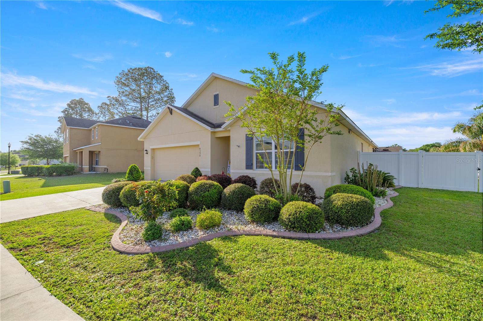 Under contract-accepting backup offers. $ NO AGE RESTRICTIONS $ Welcome to this beautifully maintained 4-bedroom, 2-bath home, situated on a large quarter-acre corner lot, perfect for family living and outdoor enjoyment. Built in 2016 by D.R. Horton, this Cali model boasts 1,817 sq. ft. of comfortable, move-in-ready space, featuring high ceilings and tile flooring throughout. The heart of this home is the spacious, open-concept kitchen with extra cabinetry, a walk-in pantry, and plenty of counter space—ideal for preparing meals or entertaining. The master suite offers a luxurious retreat, complete with his and her sinks and walk-in closets, ensuring ample storage and convenience. Step outside to your very own private oasis: a stunning 6-foot saltwater heated pool, fully enclosed with a high, screened-in birdcage that provides the perfect space for relaxing, grilling, and enjoying Florida’s sunshine. The yard is fully fenced with durable vinyl fencing, making it a safe haven for pets, and there's an 8x10 outdoor shed for extra storage needs. This home also includes a 7-zone sprinkler system for easy lawn maintenance, plus proximity to Silver Springs Boulevard, Silver Springs State Park, local shopping, dining, doctors, and schools. Daytona Beach is just an hour away for those weekend getaways. Don’t miss the chance to own this move-in-ready gem—schedule your showing today!